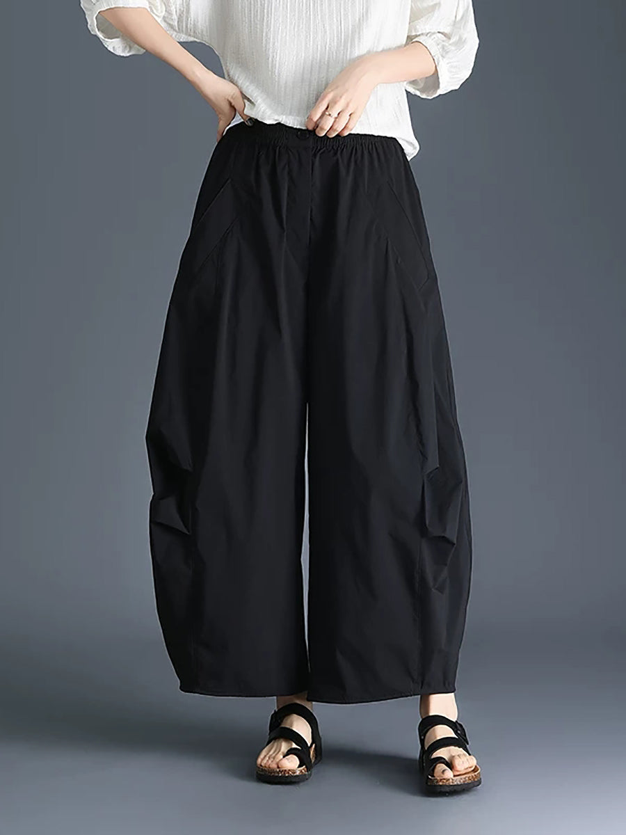 بنطلون نسائي ربيعي واسع الساقين من القطن بلون موحد