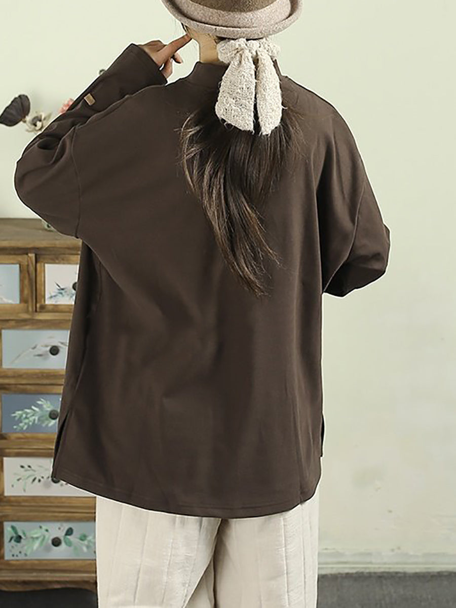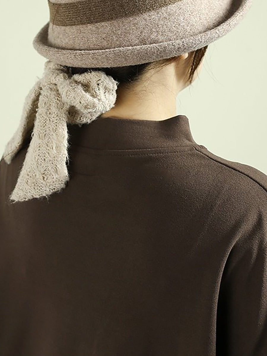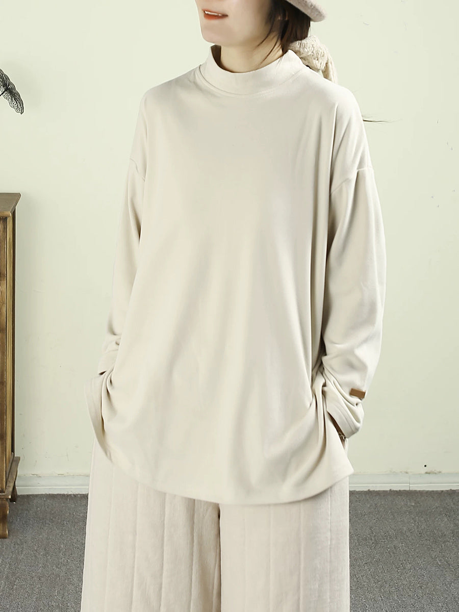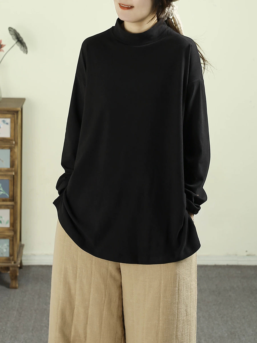 قميص نسائي ربيعي بلون موحد بياقة نصف دائرية