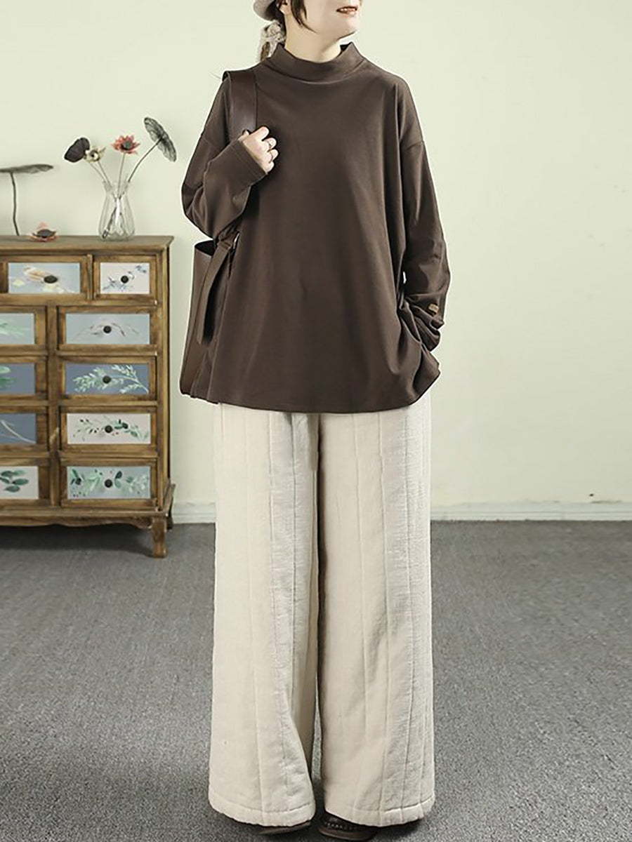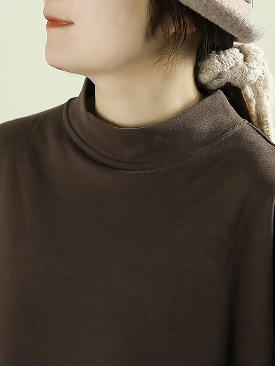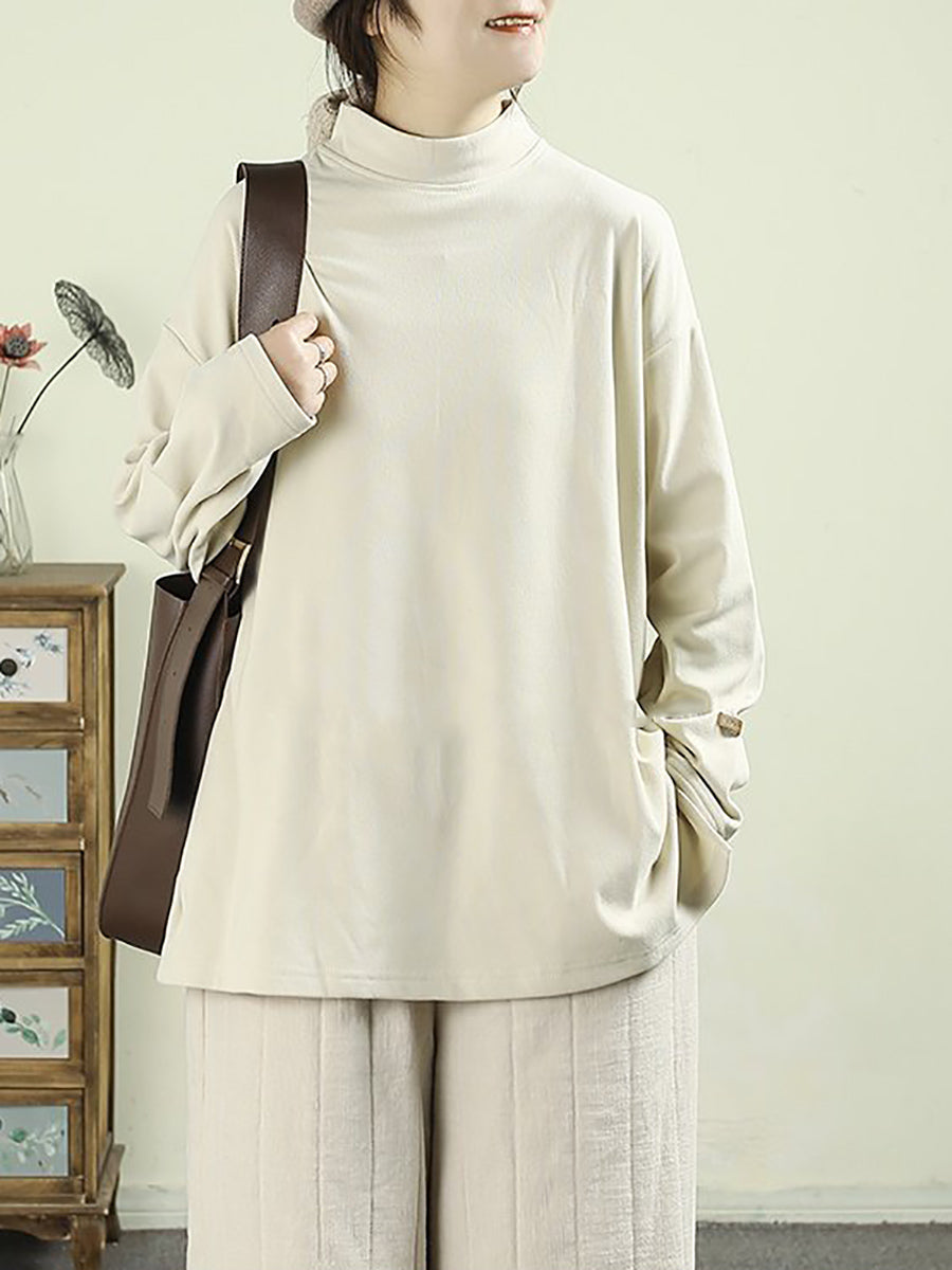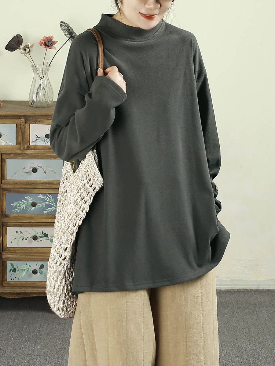 قميص نسائي ربيعي بلون موحد بياقة نصف دائرية