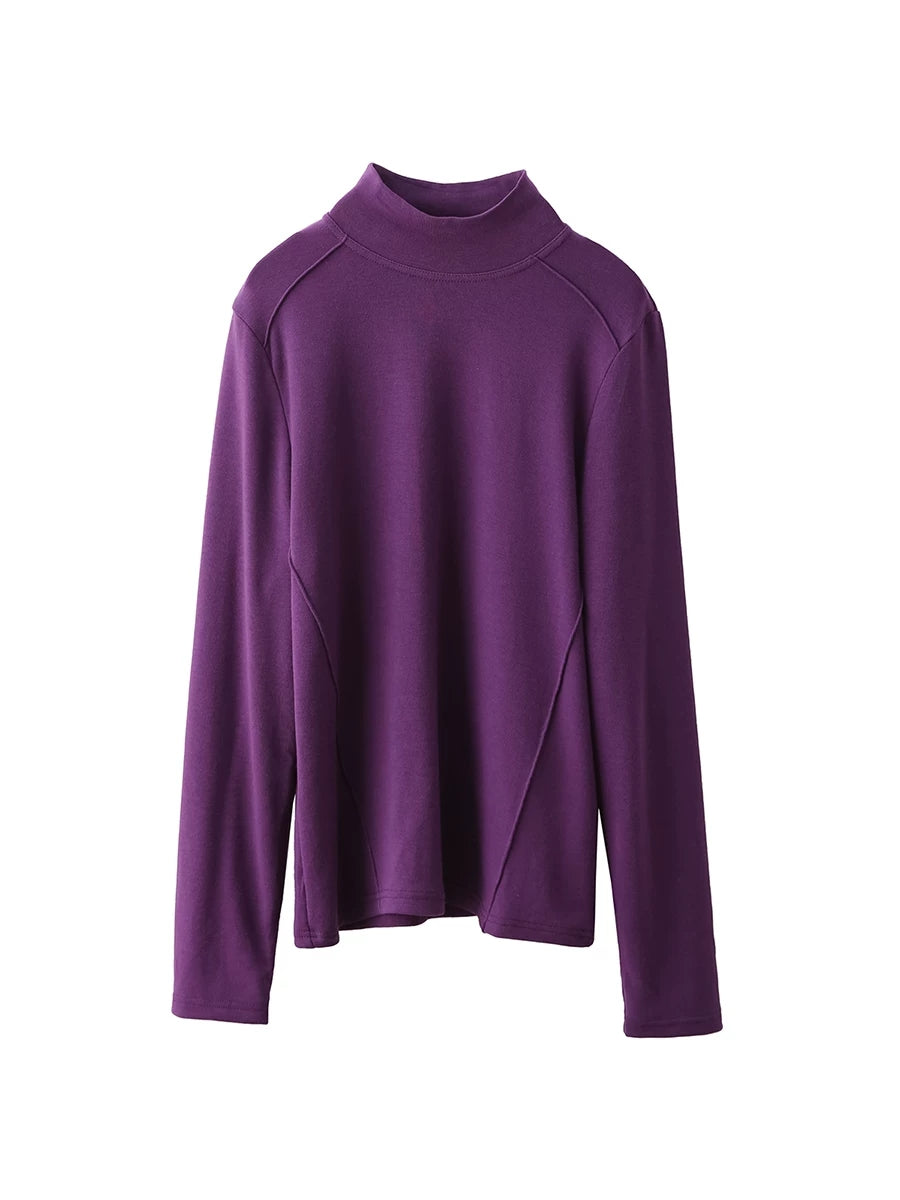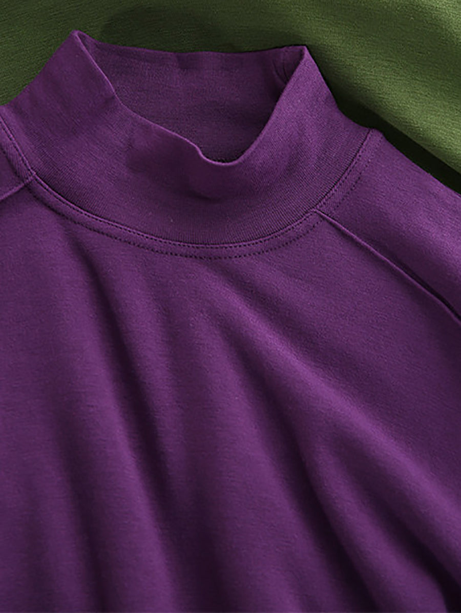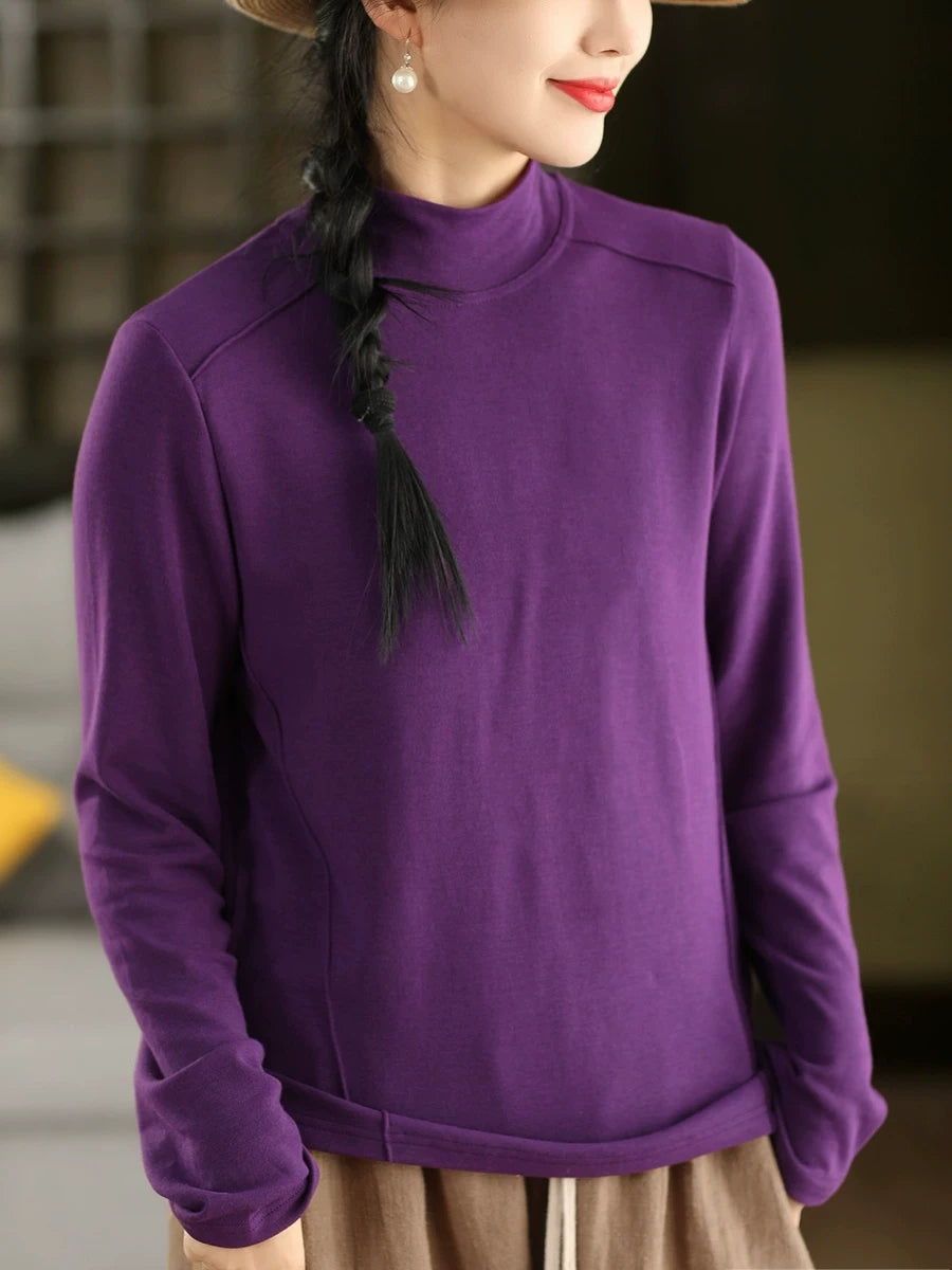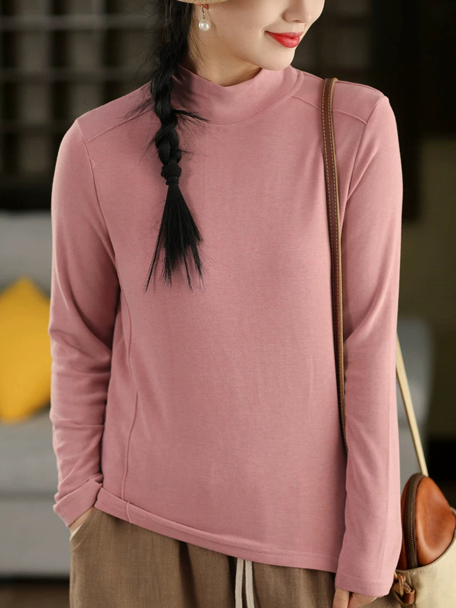 بلوزة نسائية ربيعية بلون موحد بياقة نصف مدورة