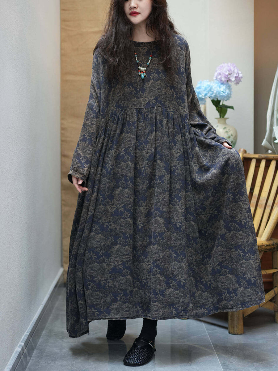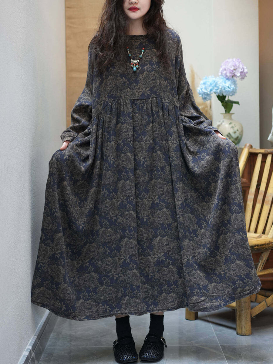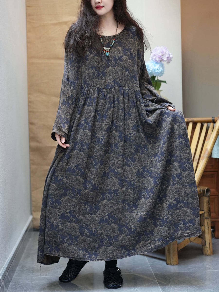 فستان ماكسي ربيعي نسائي بتصميم كلاسيكي مزين بالزهور