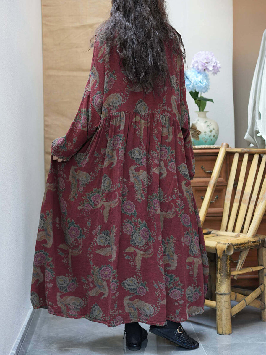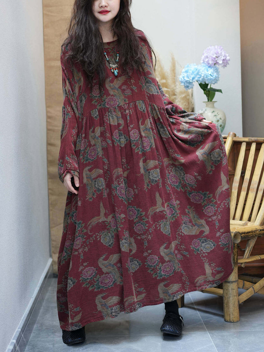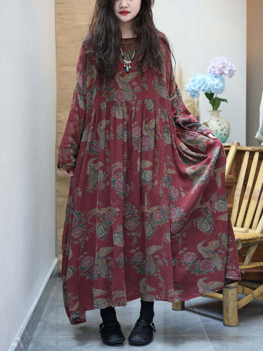 فستان ماكسي ربيعي نسائي بتصميم كلاسيكي مزين بالزهور