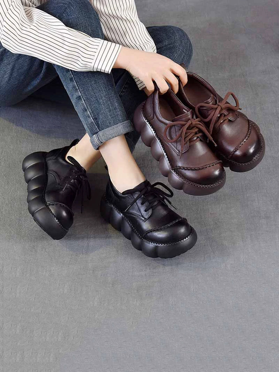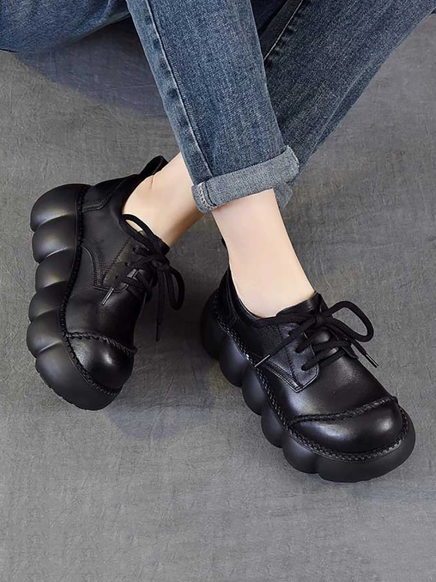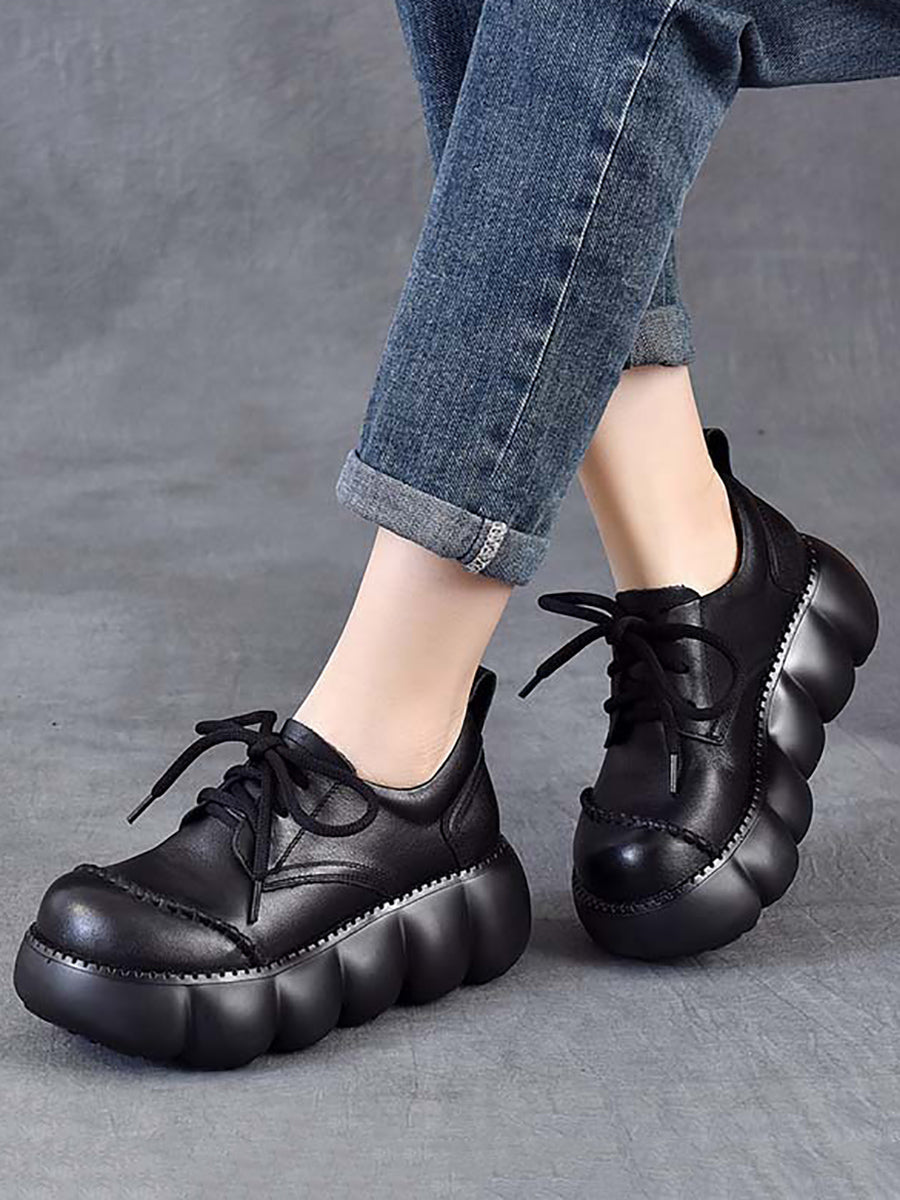 أحذية نسائية ربيعية كلاسيكية من الجلد الطبيعي ذو نعل سميك