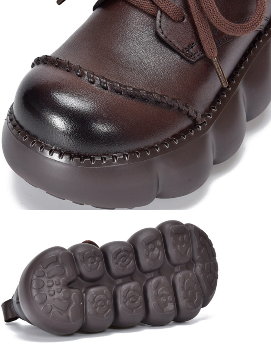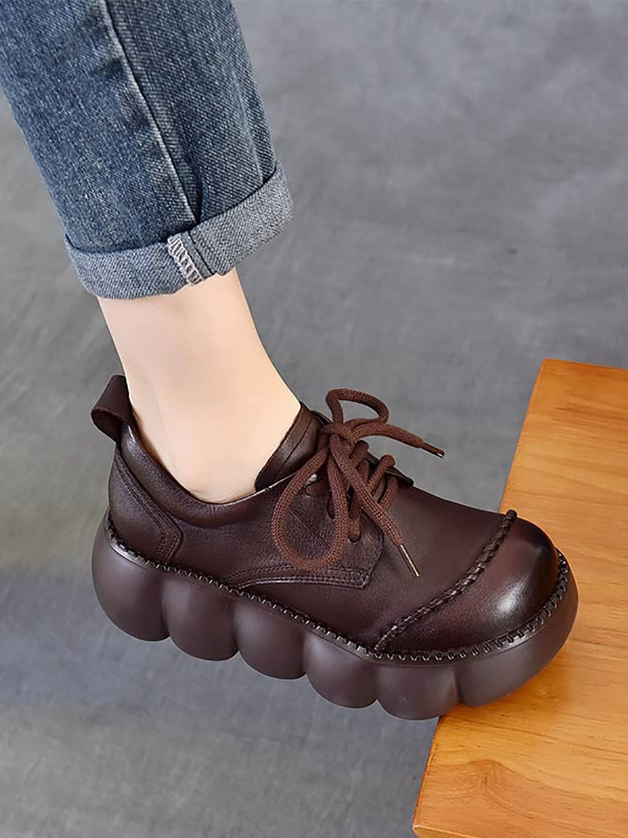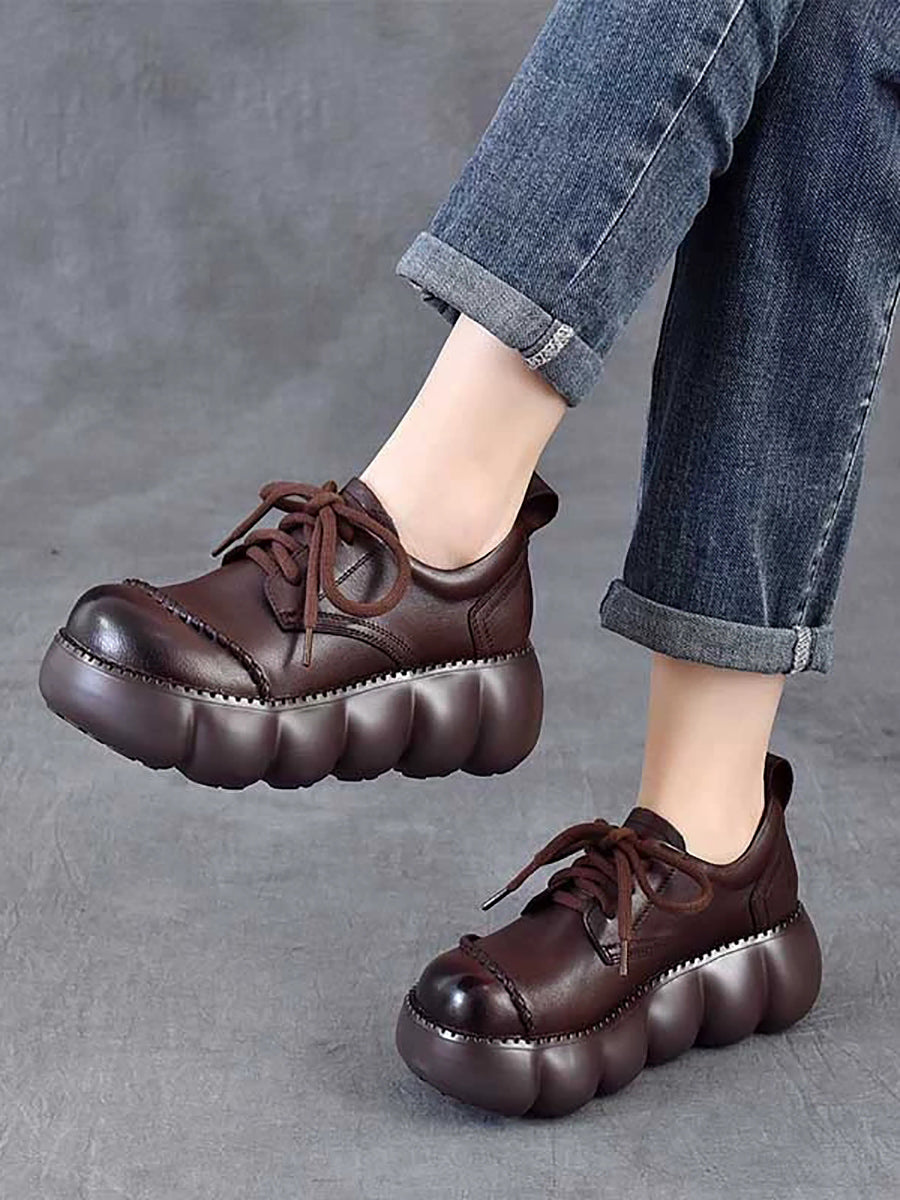 أحذية نسائية ربيعية كلاسيكية من الجلد الطبيعي ذو نعل سميك