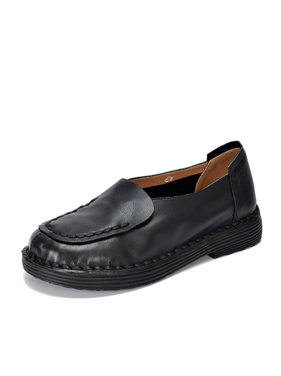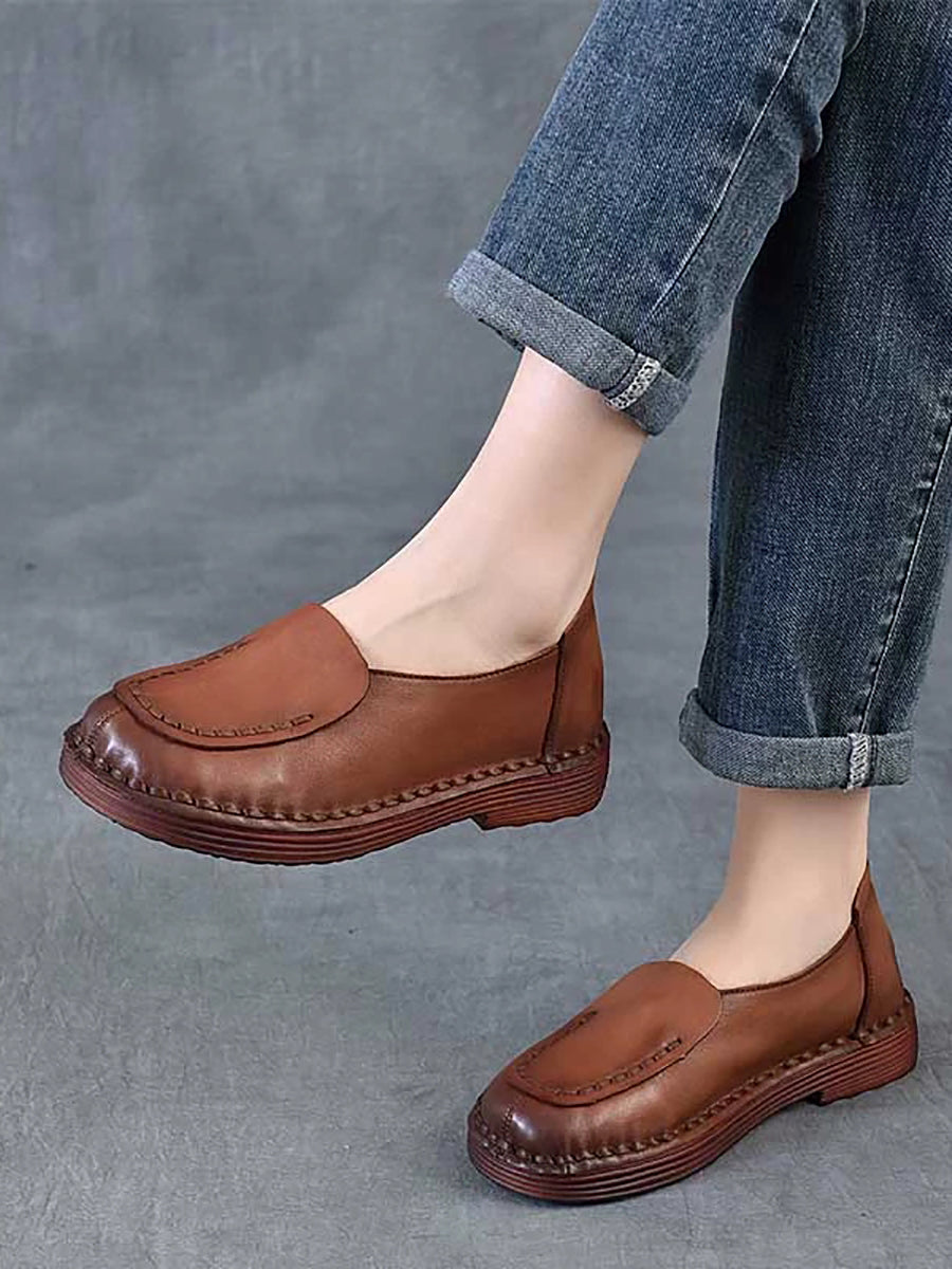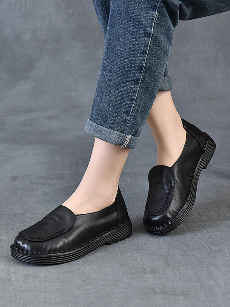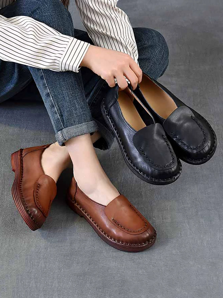 أحذية نسائية ربيعية كلاسيكية من الجلد الطبيعي بتصميم مقسم وكعب منخفض