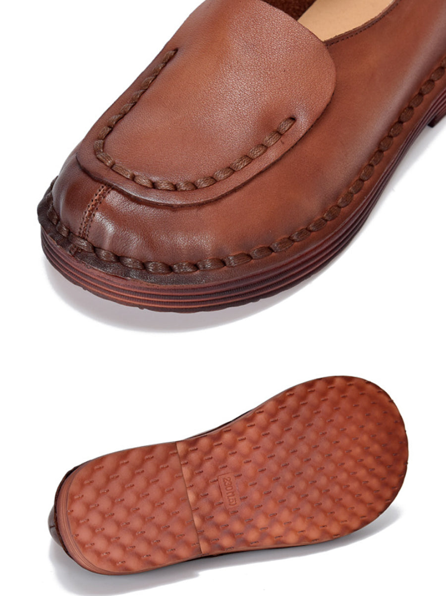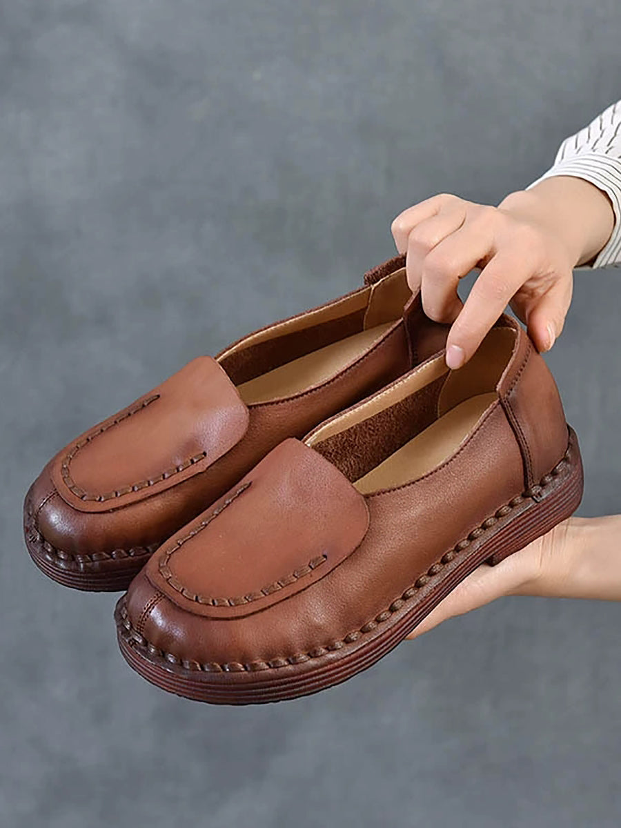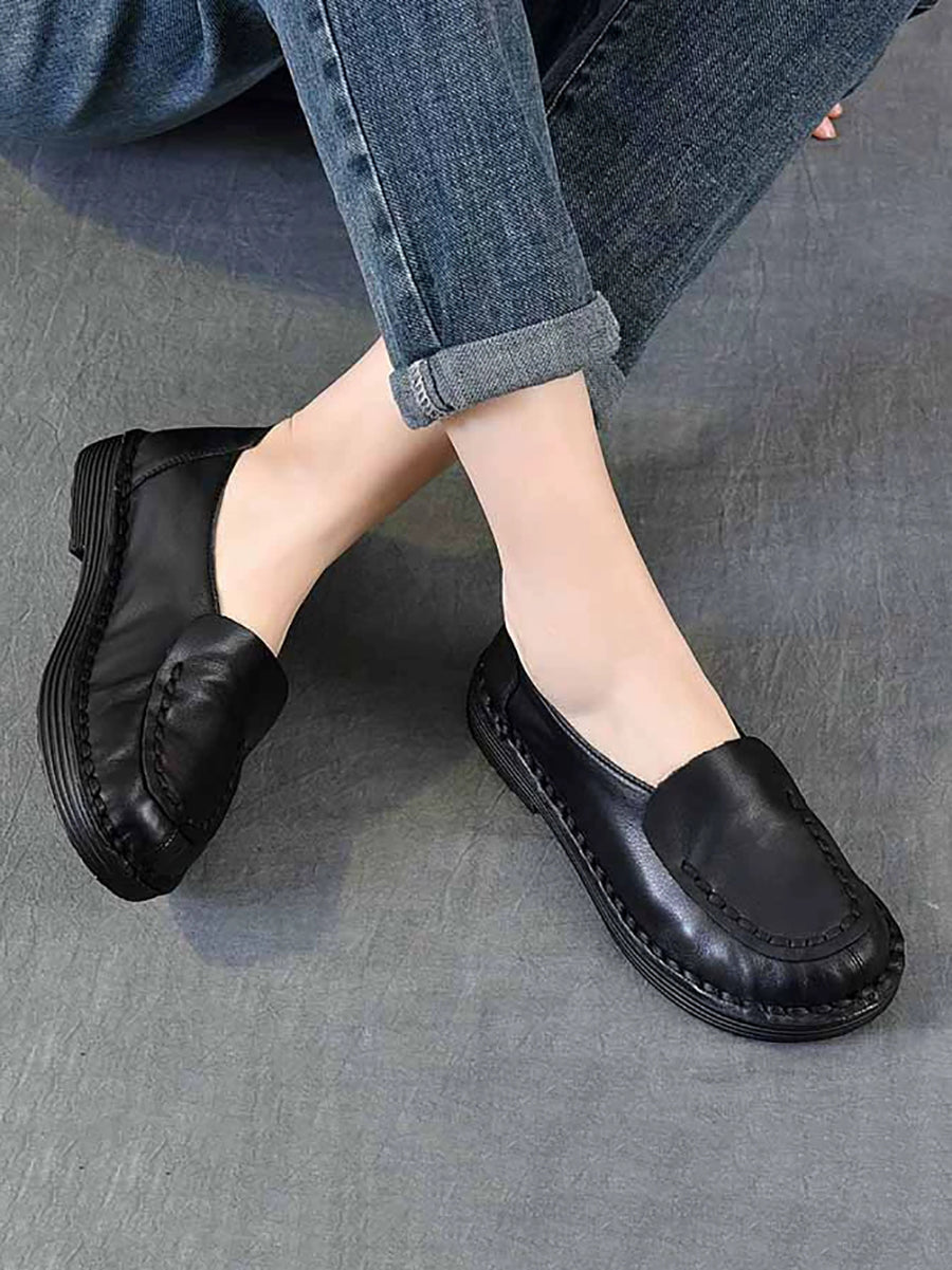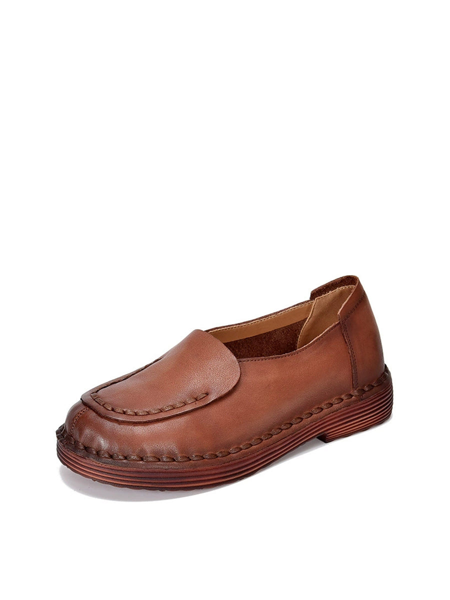 أحذية نسائية ربيعية كلاسيكية من الجلد الطبيعي بتصميم مقسم وكعب منخفض