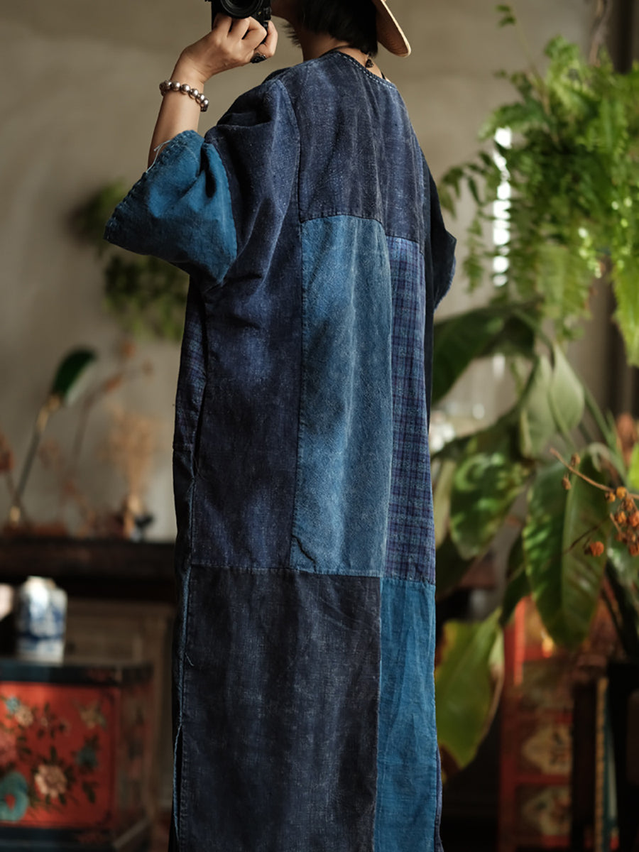 فستان قطني نسائي ربيعي بتصميم ريترو مرقع بياقة على شكل حرف V