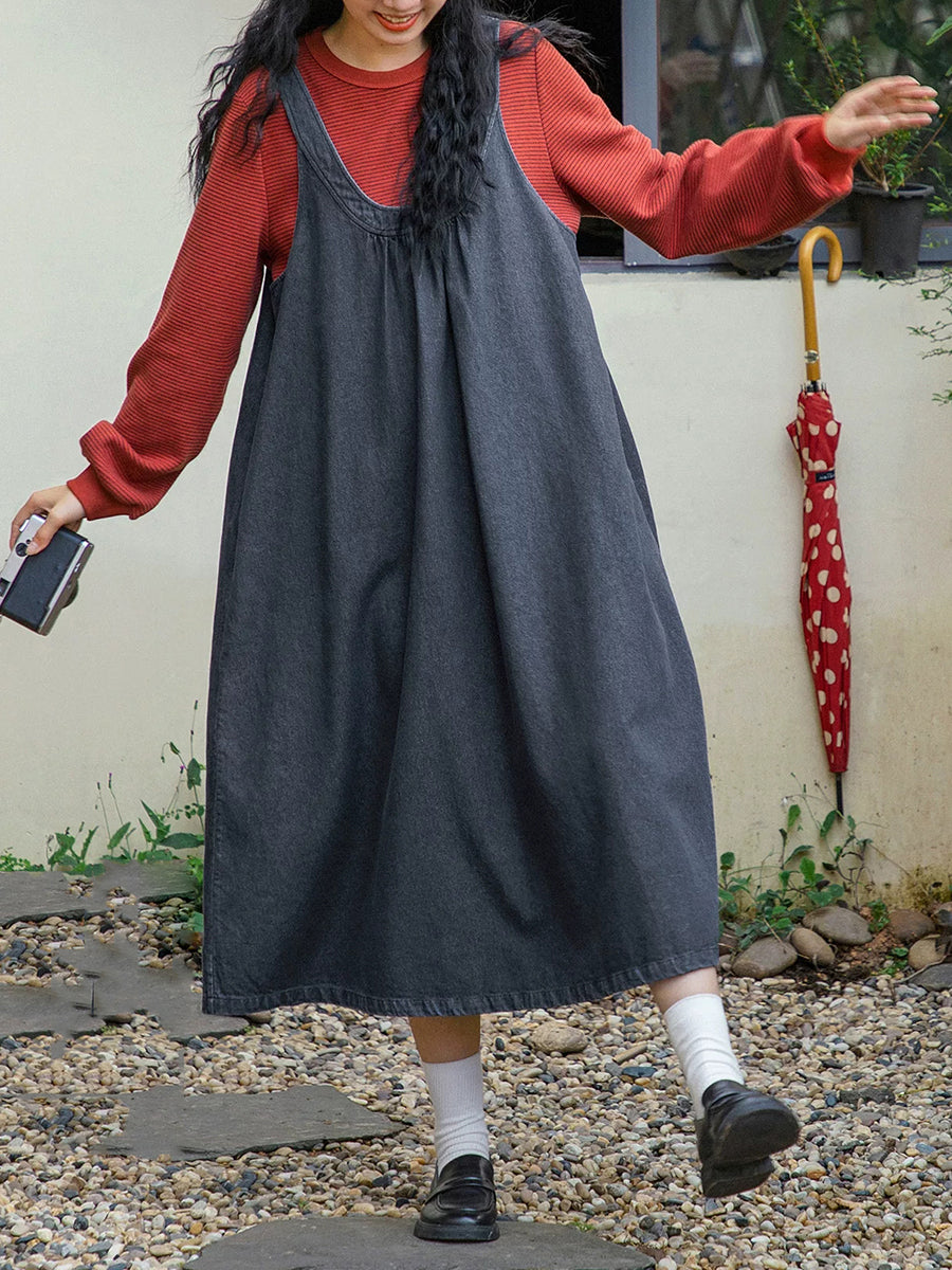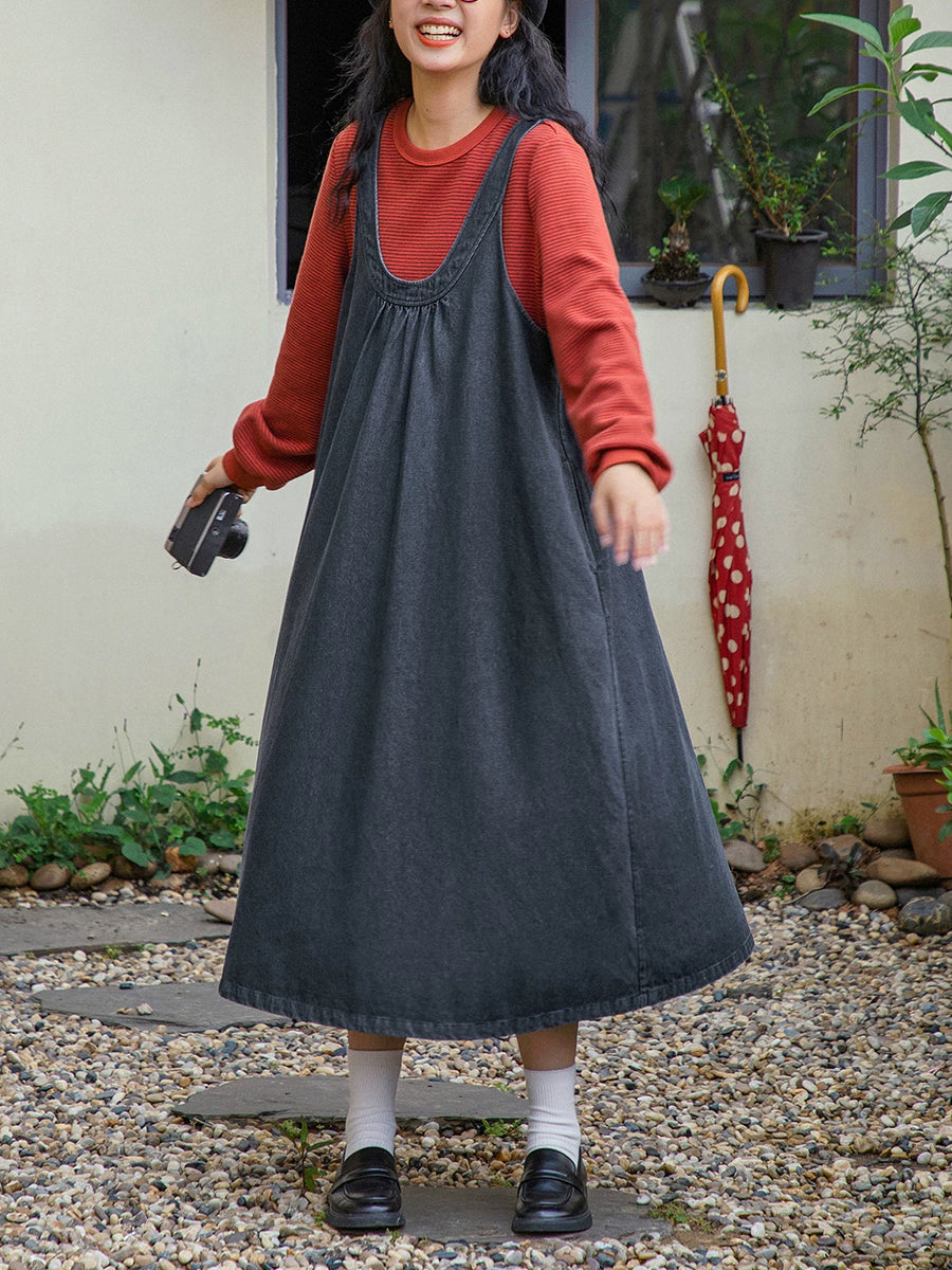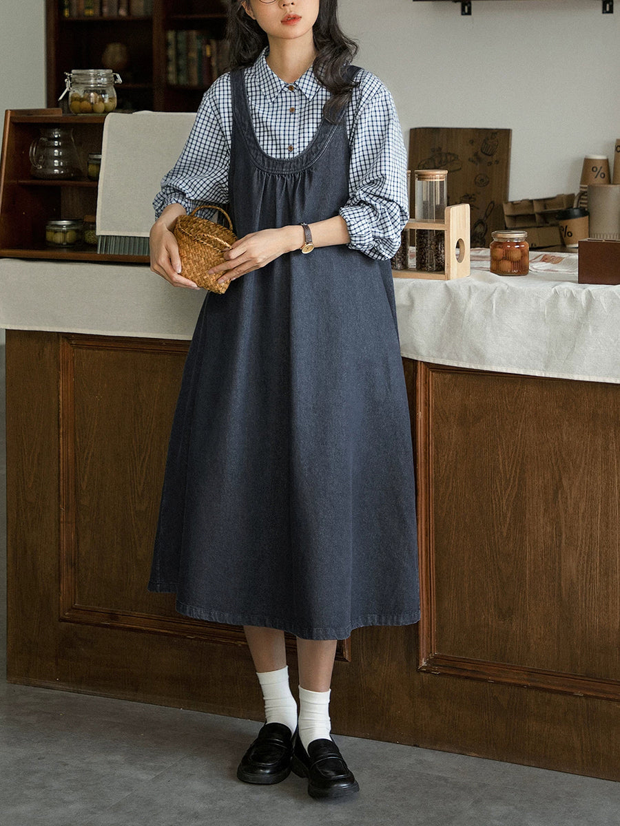 فستان جينز نسائي ربيعي كلاسيكي بلون نقي