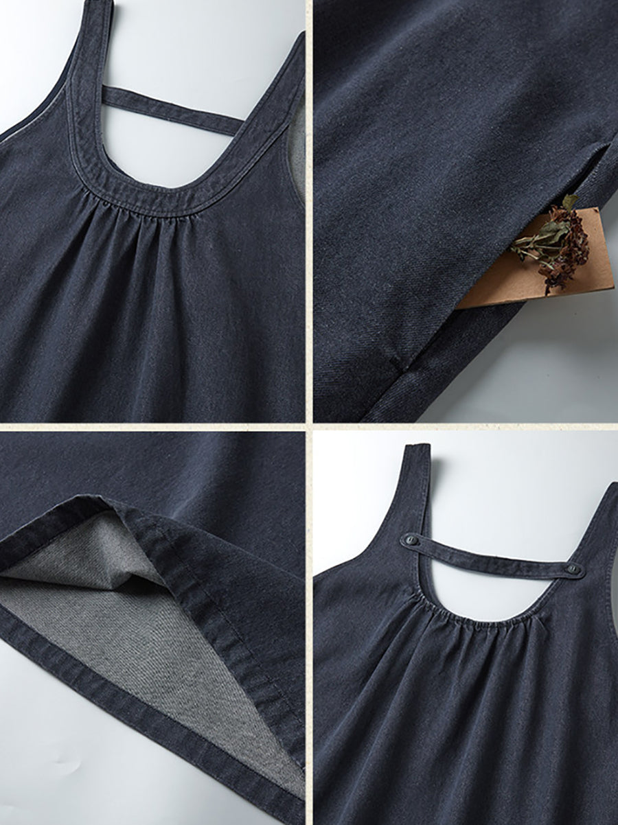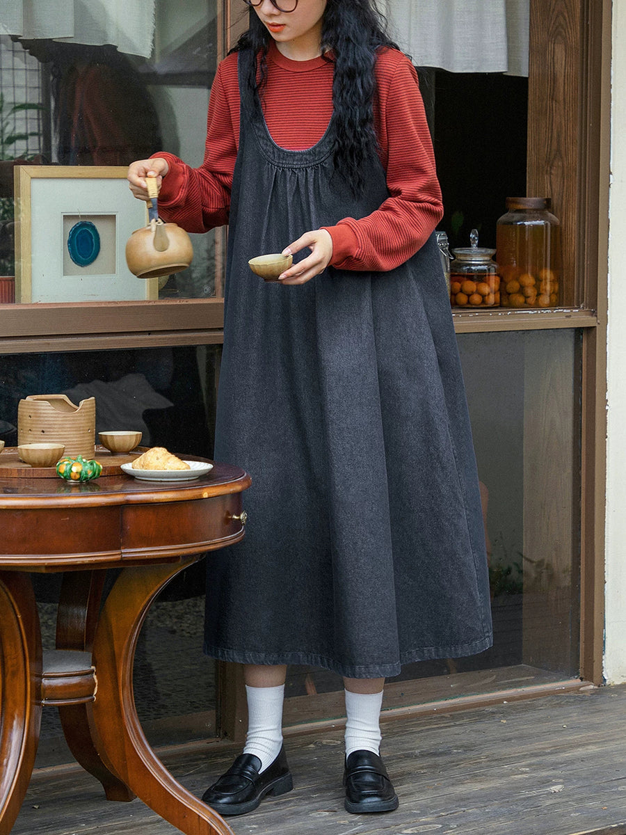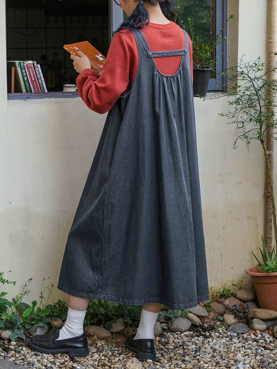فستان جينز نسائي ربيعي كلاسيكي بلون نقي