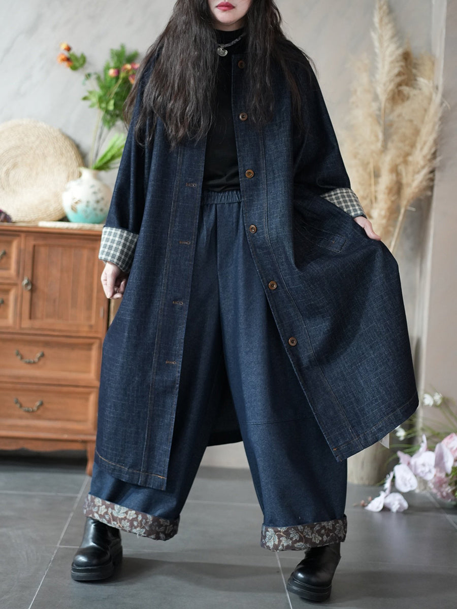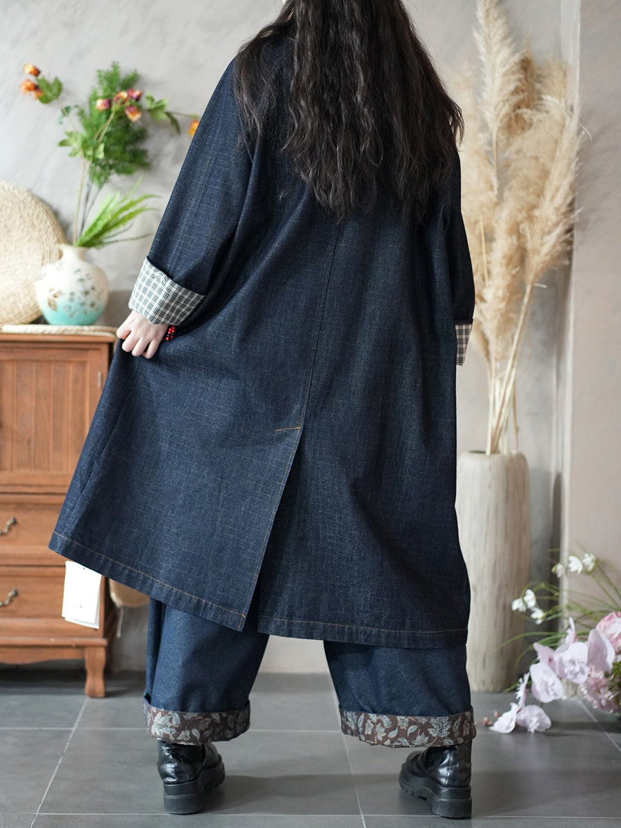 معطف ترنش نسائي ربيعي كلاسيكي بلون نقي من الدنيم
