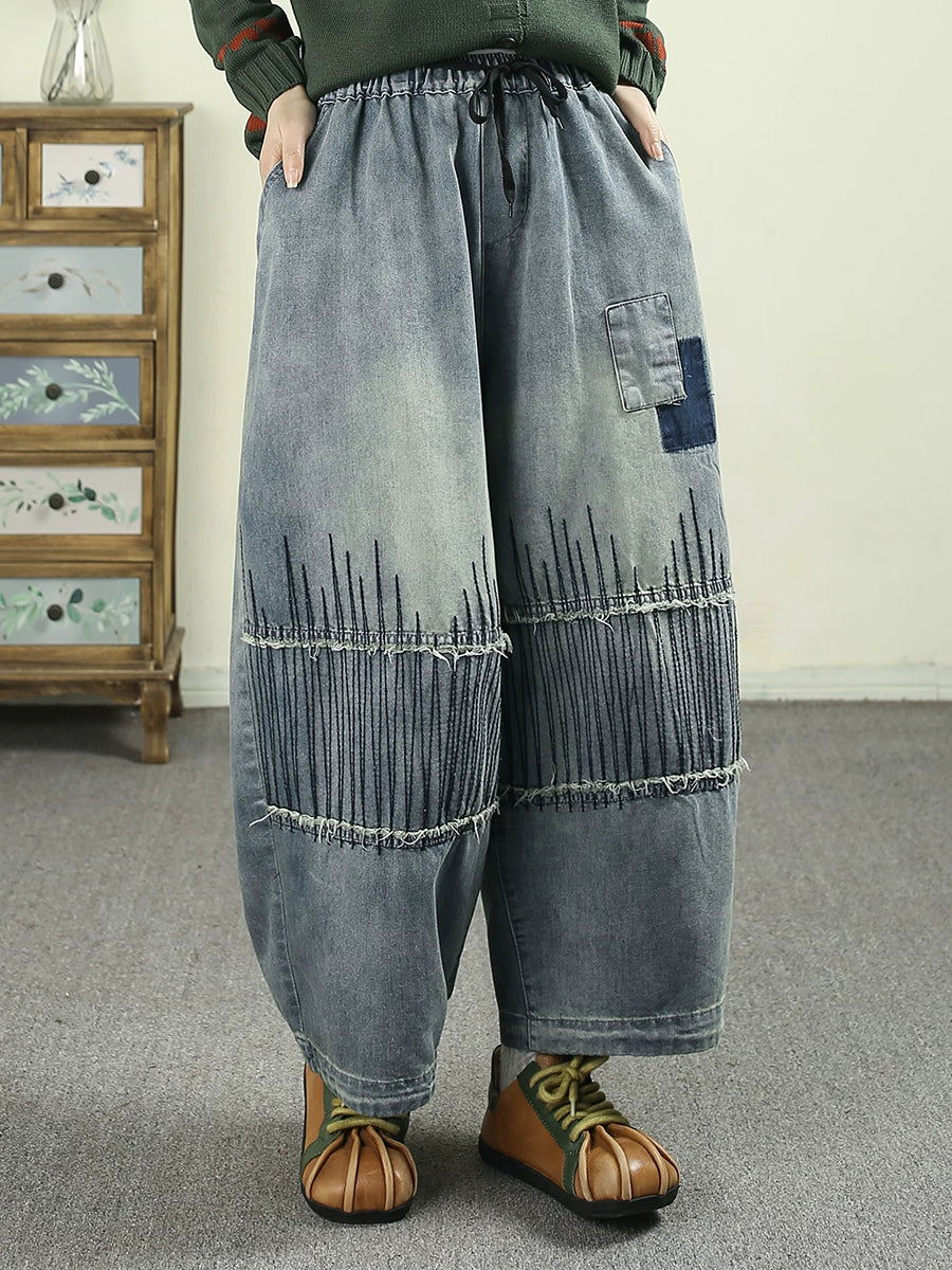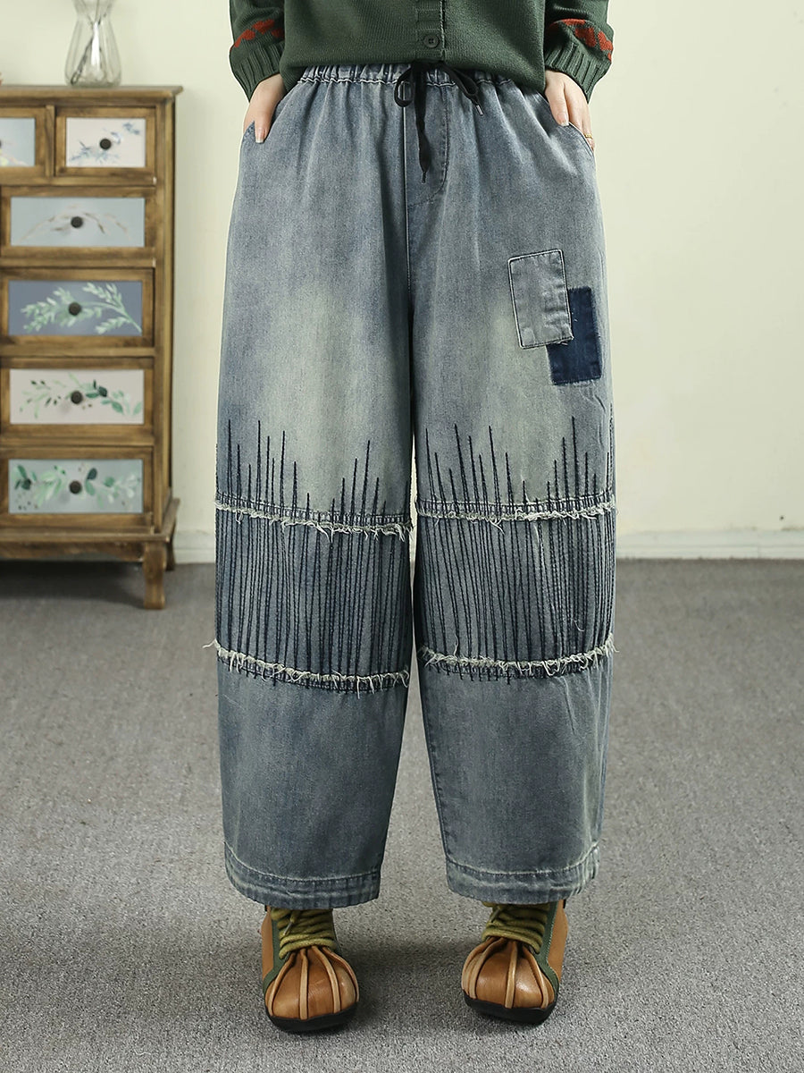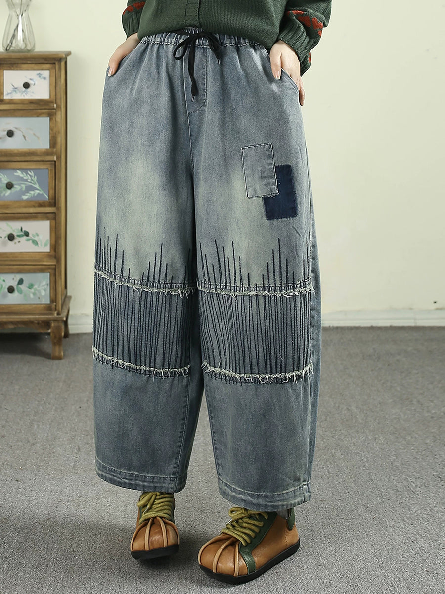 بنطلون نسائي ربيعي عتيق من الدنيم المرقع بتصميم حريمي