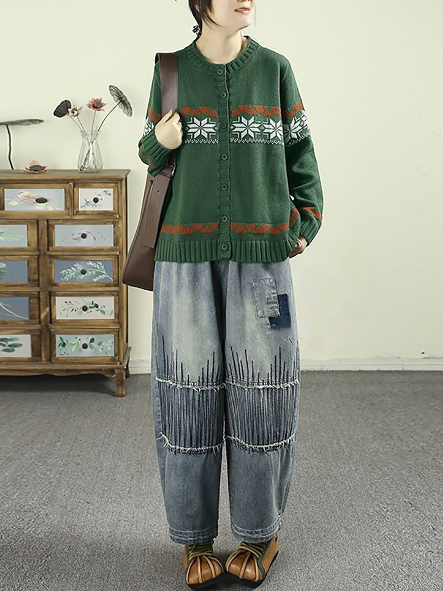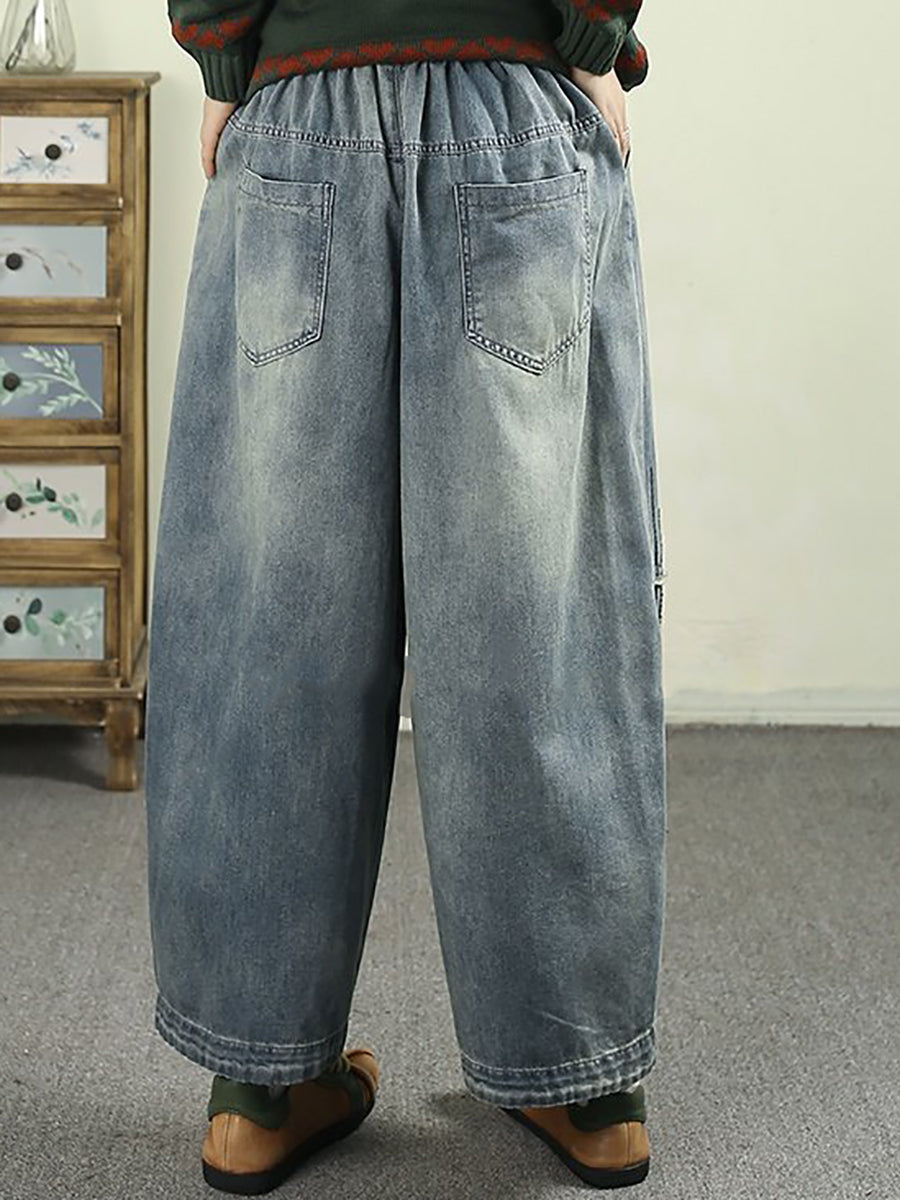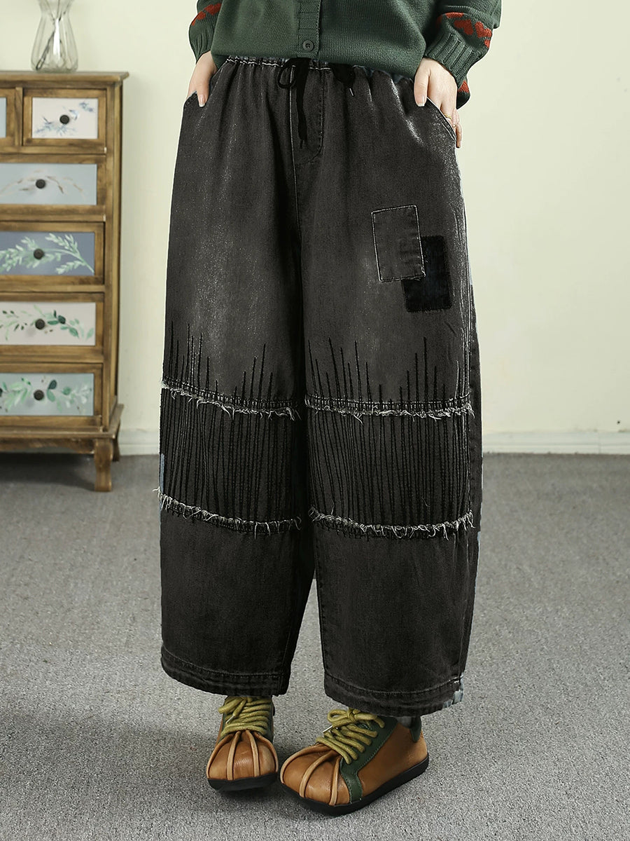 بنطلون نسائي ربيعي عتيق من الدنيم المرقع بتصميم حريمي
