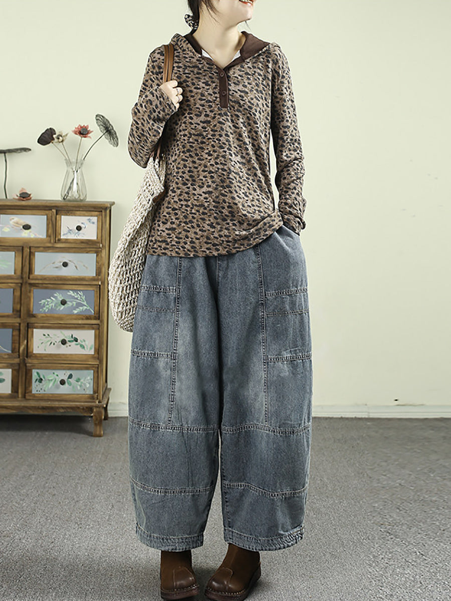 بنطلون جينز نسائي ربيعي بتصميم كلاسيكي واسع الساقين