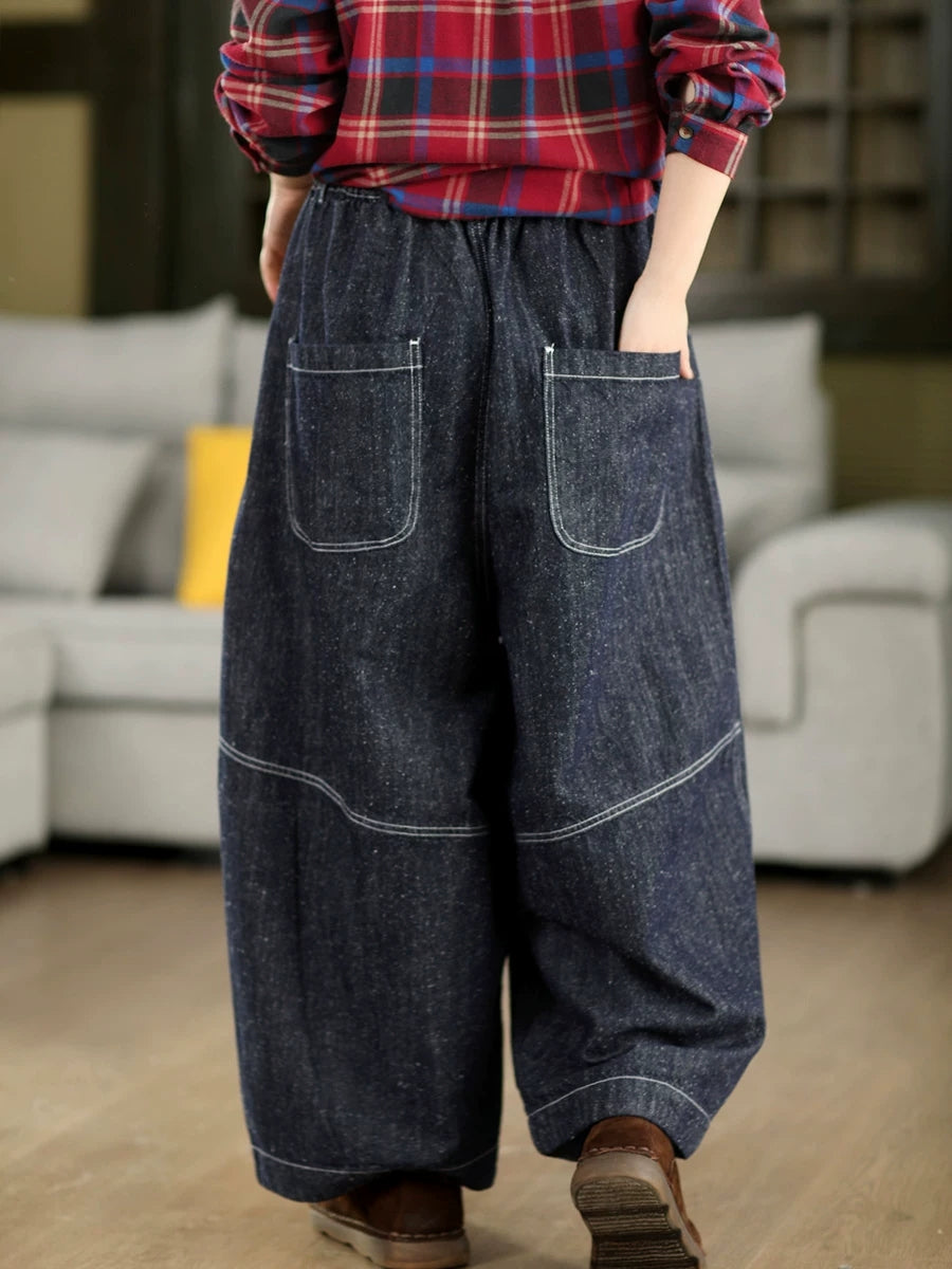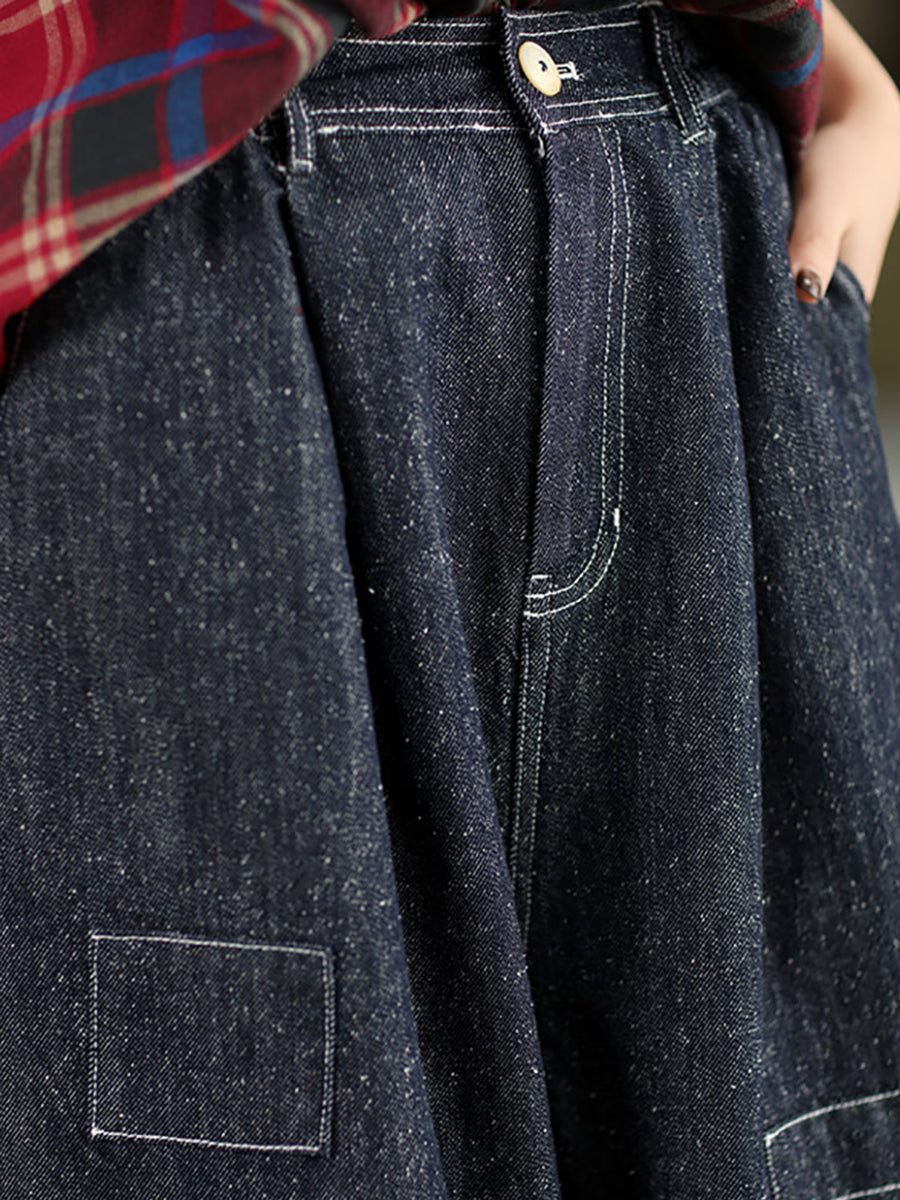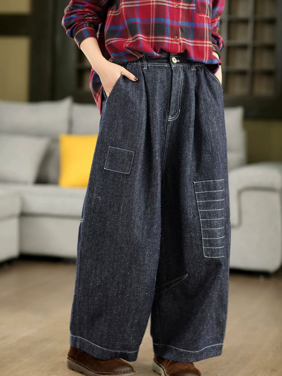 بنطلون جينز واسع الساقين بتصميم ربيعي كلاسيكي للنساء