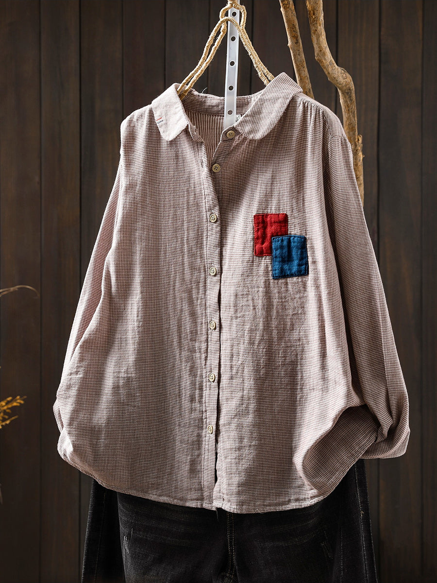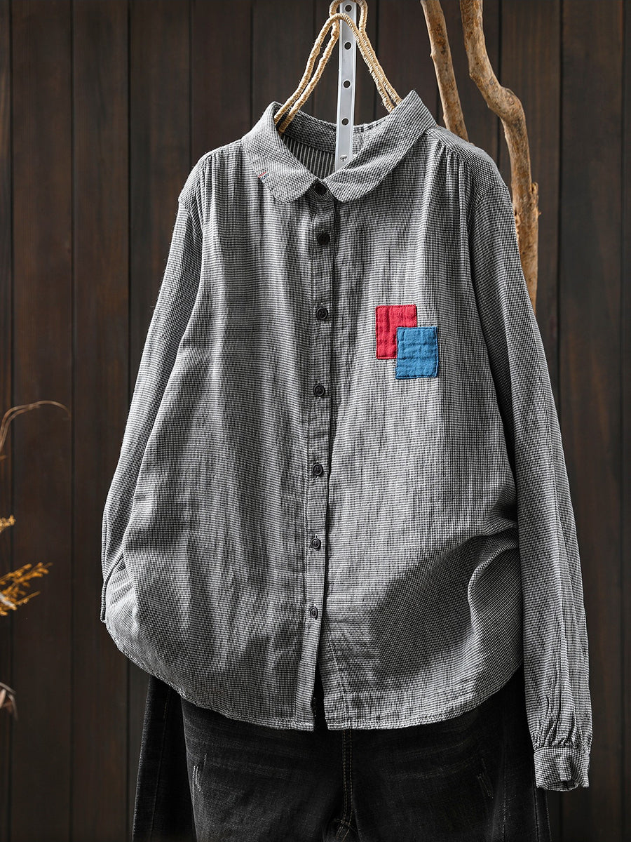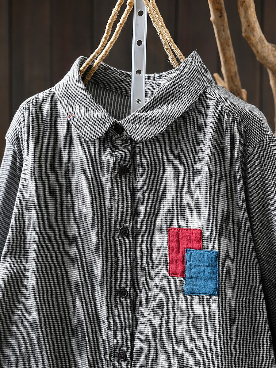 قميص نسائي ربيعي بتصميم شبكي مرقع عتيق مصنوع من القطن بنسبة 100%