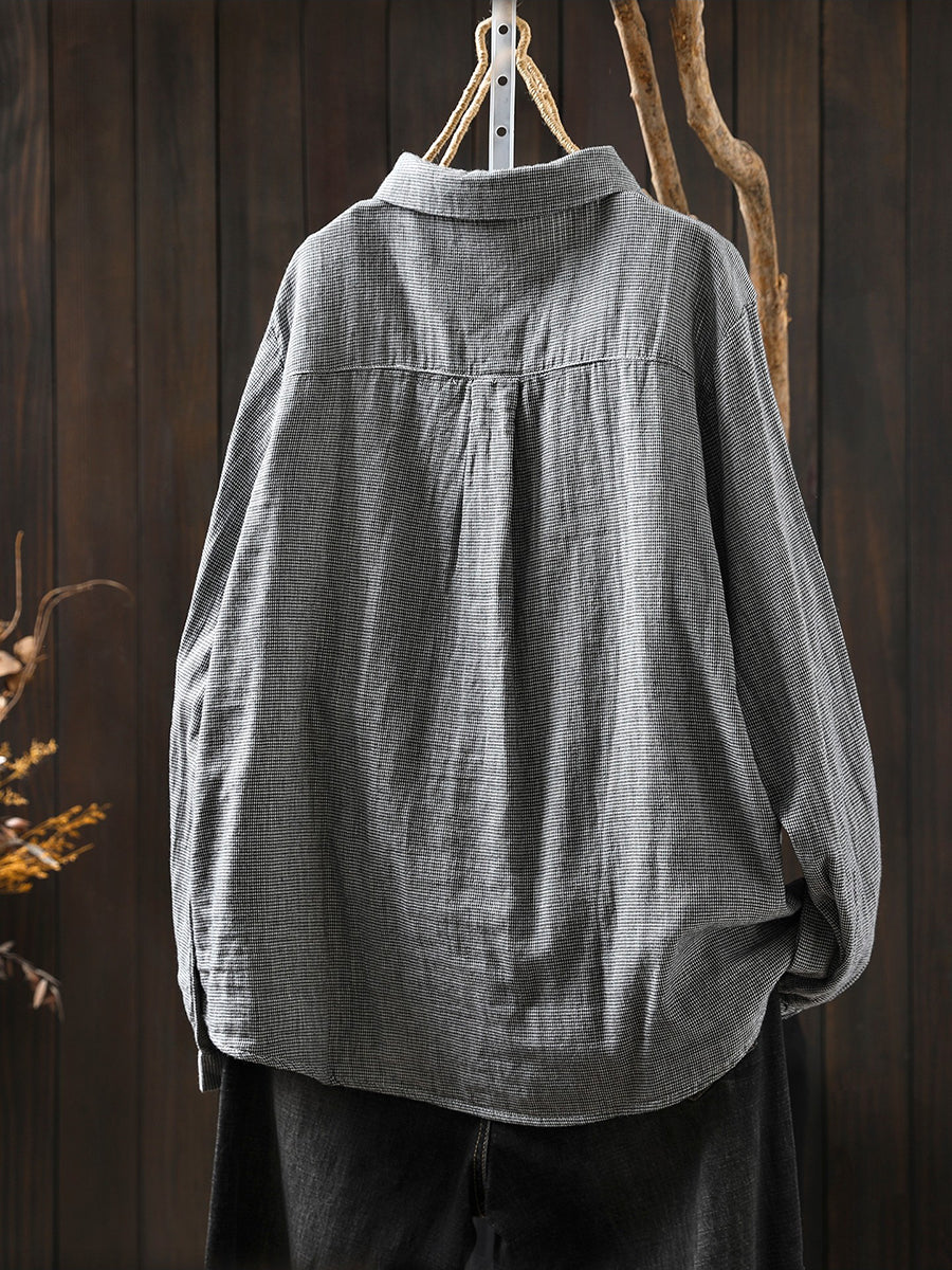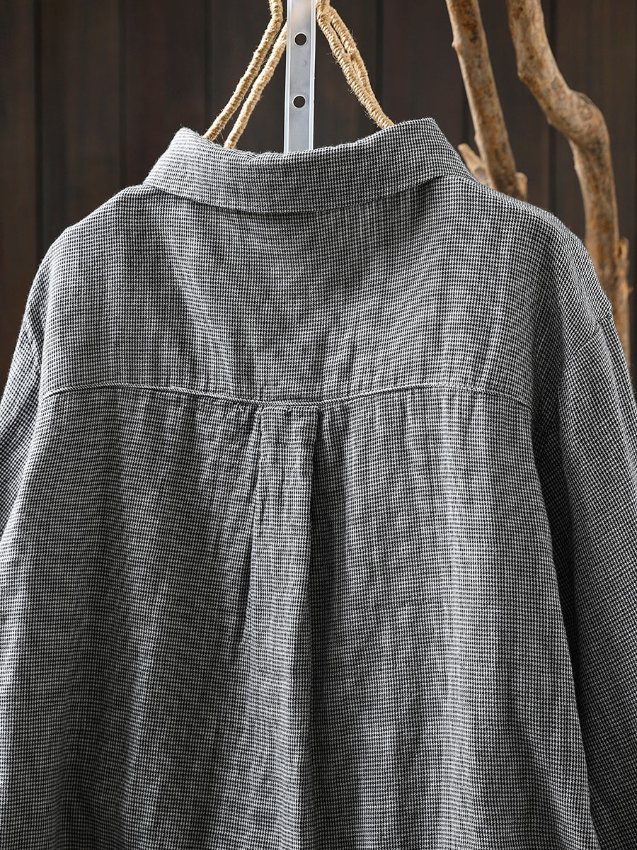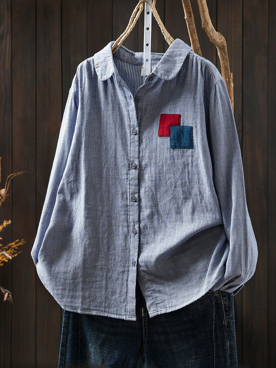 قميص نسائي ربيعي بتصميم شبكي مرقع عتيق مصنوع من القطن بنسبة 100%