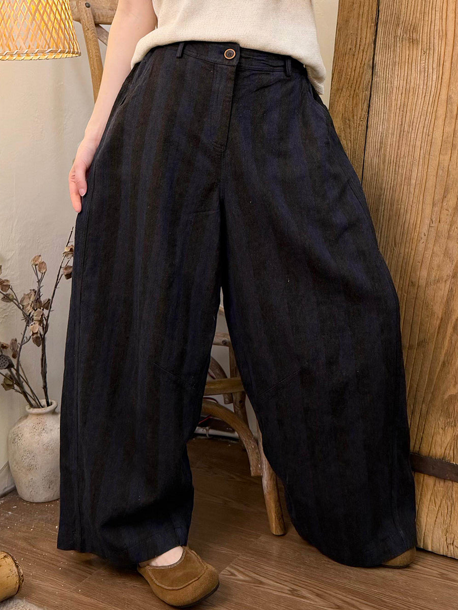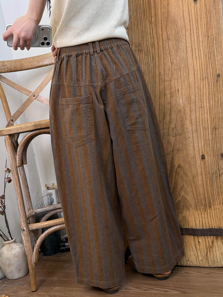 بنطلون نسائي ربيعي مخطط واسع الساقين