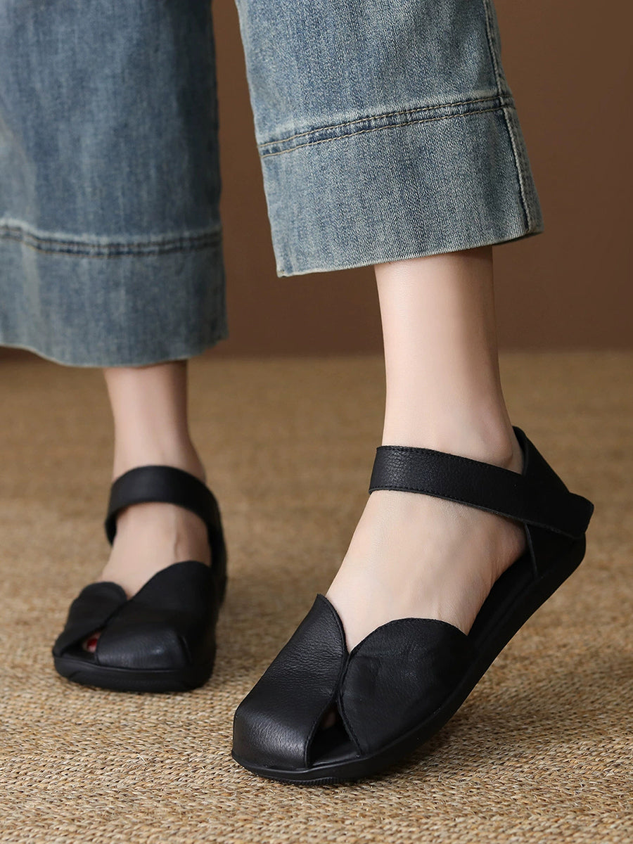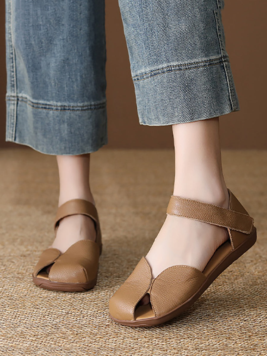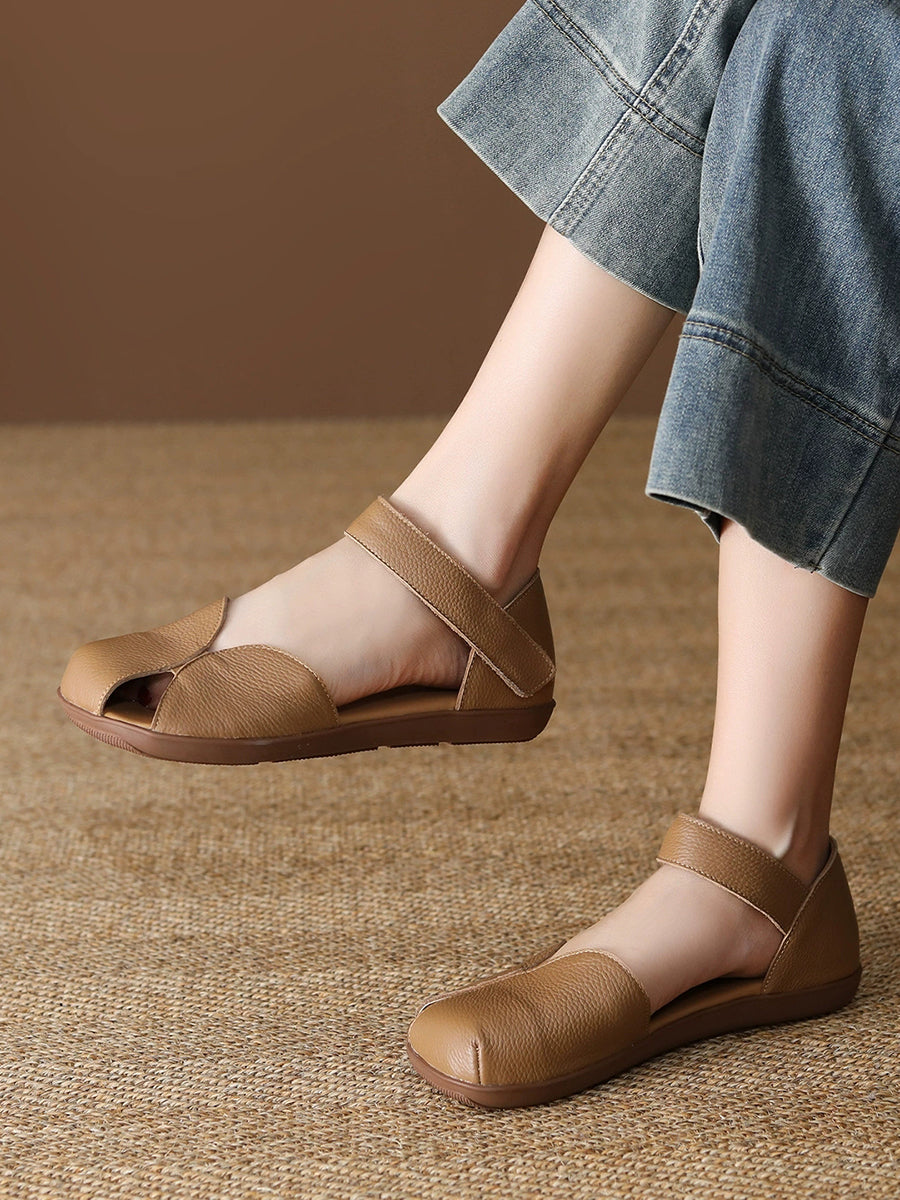 صنادل نسائية صيفية كاجوال من الجلد الطبيعي بتصميم متداخل