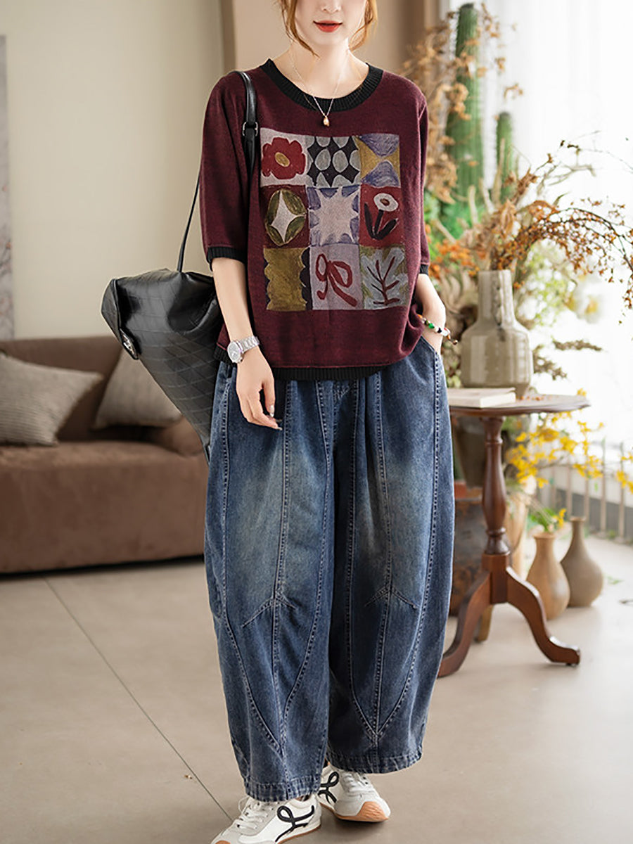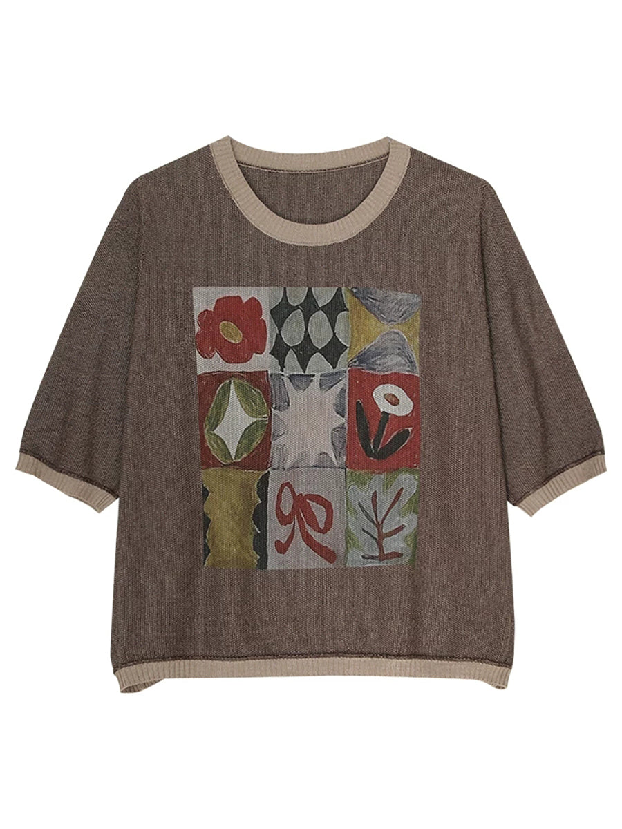 بلوزة نسائية صيفية فنية من القطن بياقة دائرية