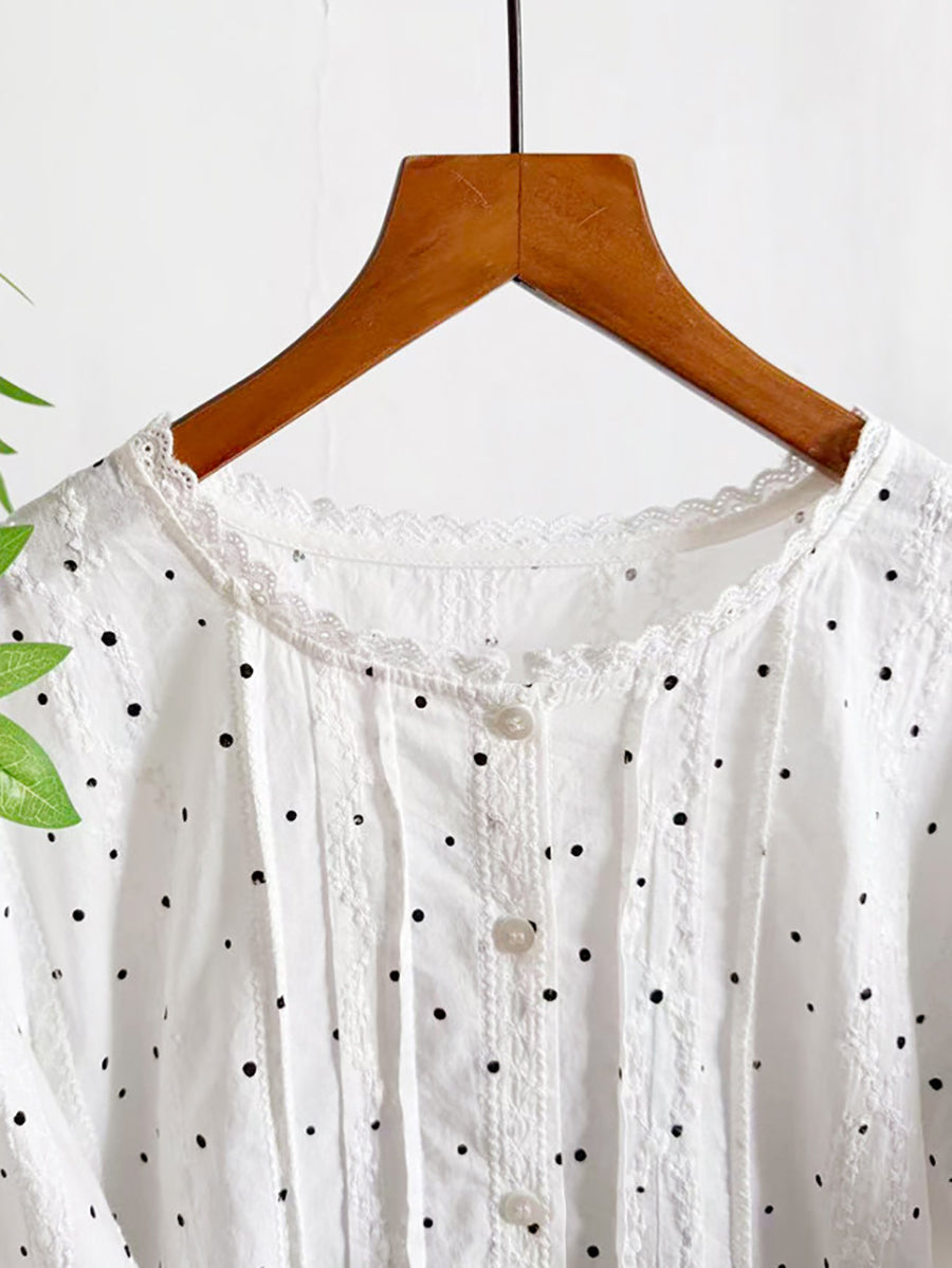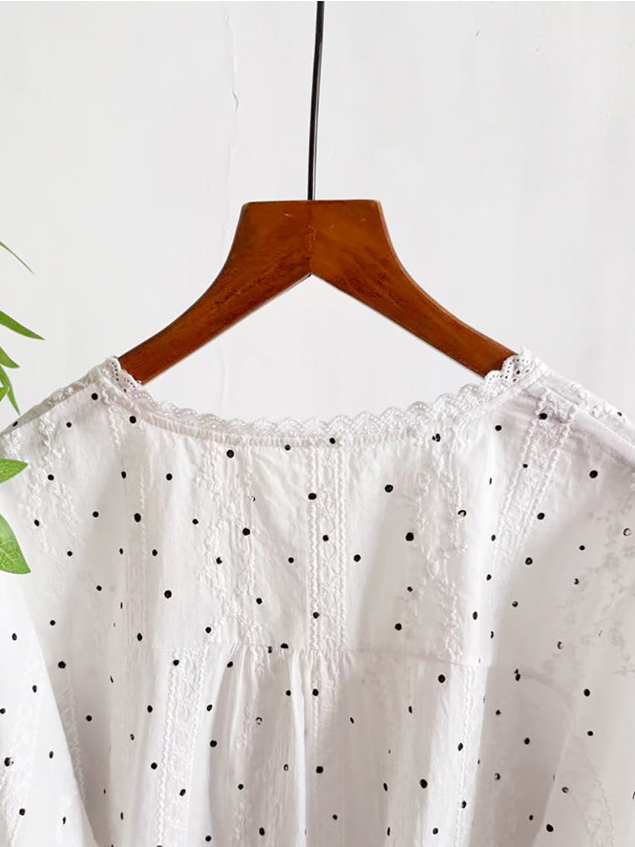بلوزة نسائية صيفية مطرزة بنقاط فنية مصنوعة من القطن بنسبة 100%