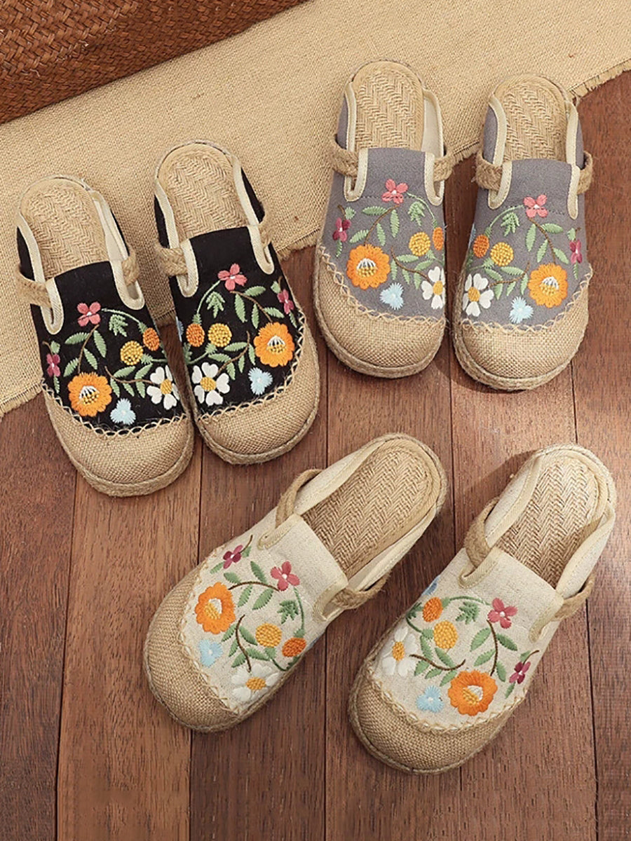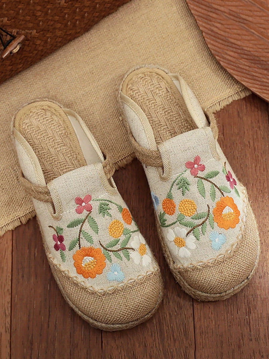 شباشب نسائية صيفية من الكتان مزينة بالزهور