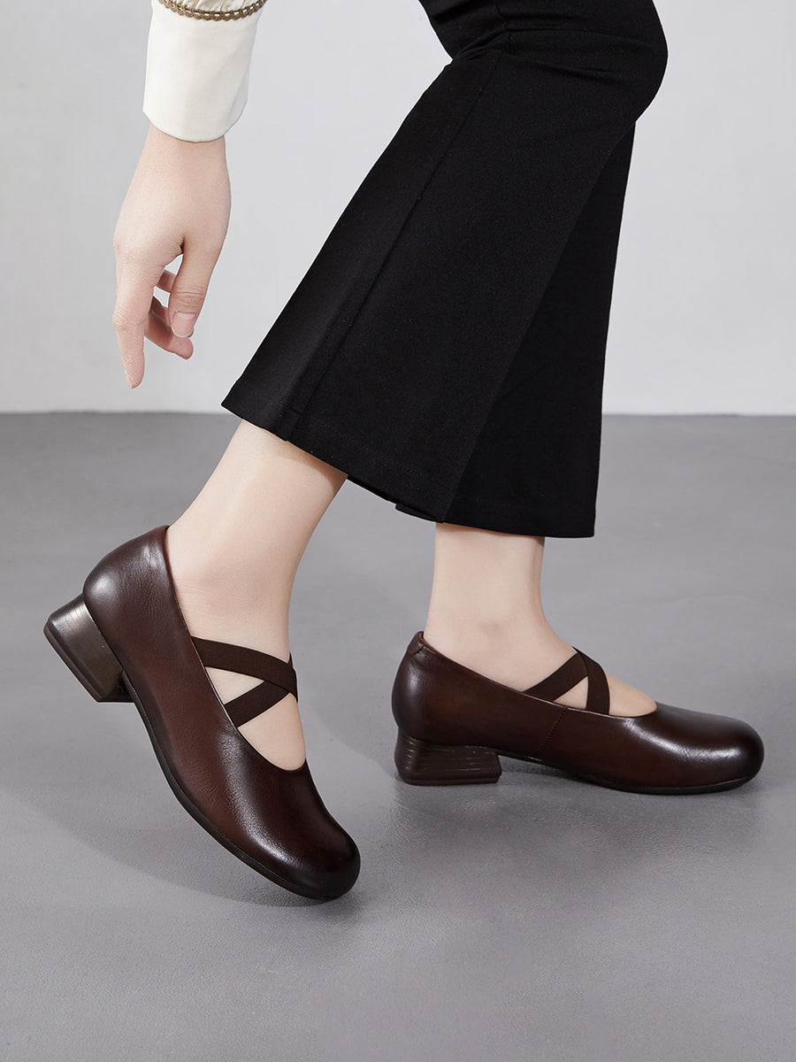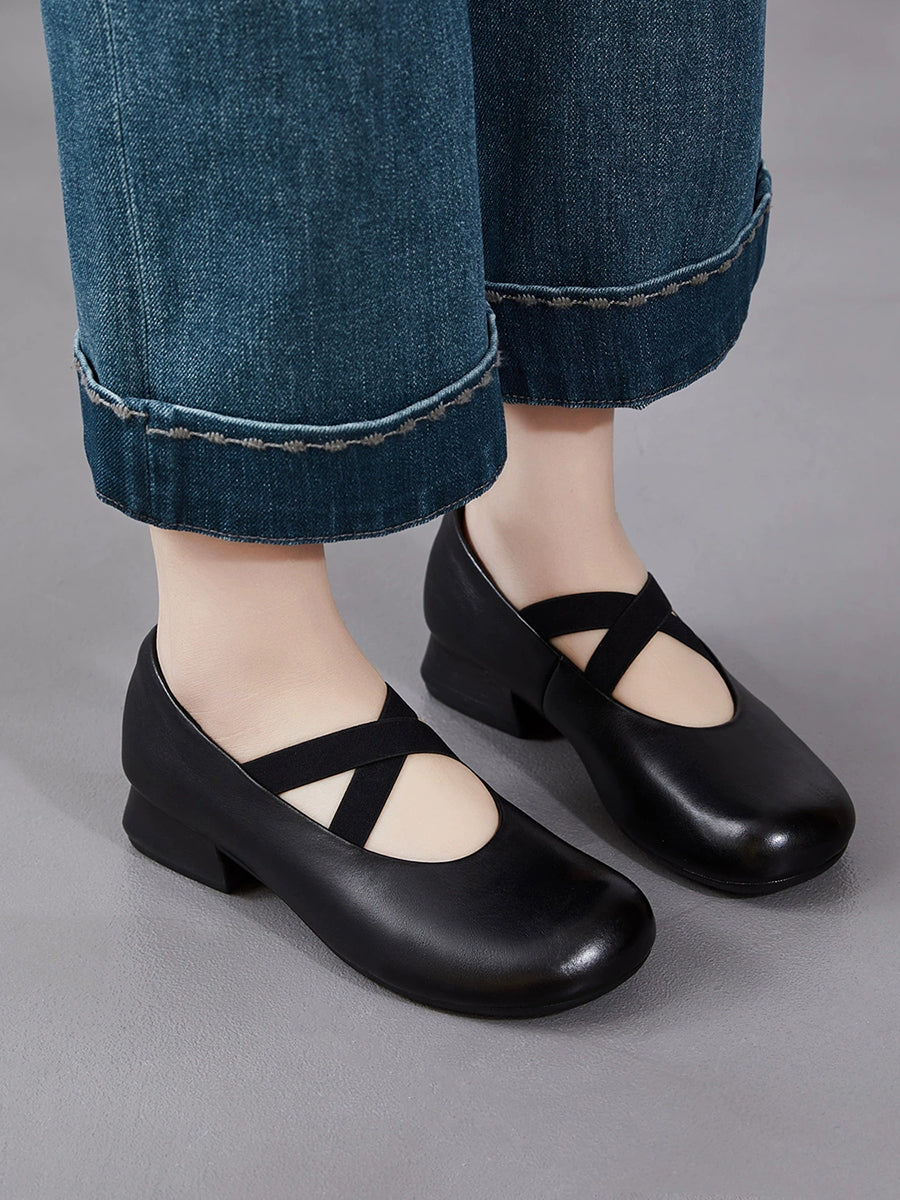 أحذية نسائية صيفية أنيقة من الجلد الطبيعي بكعب منخفض