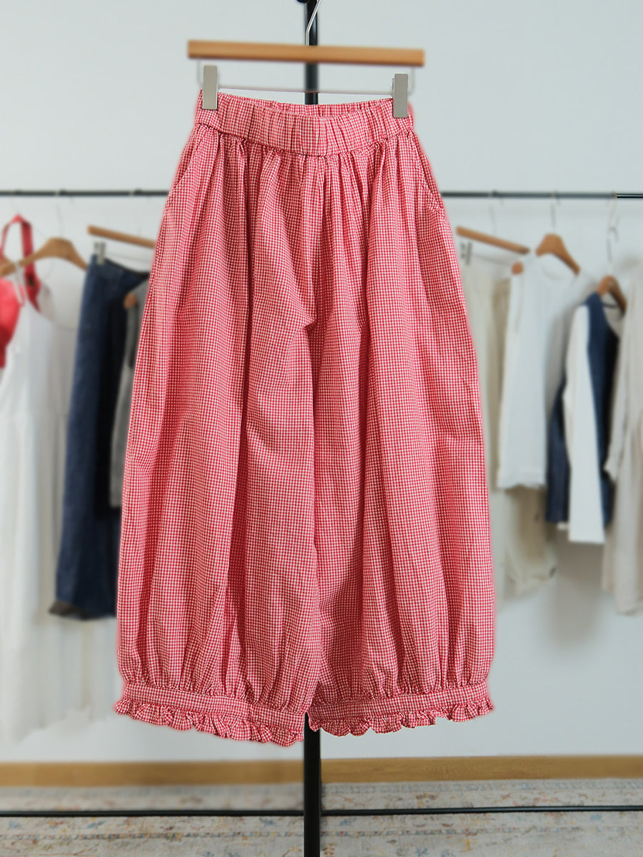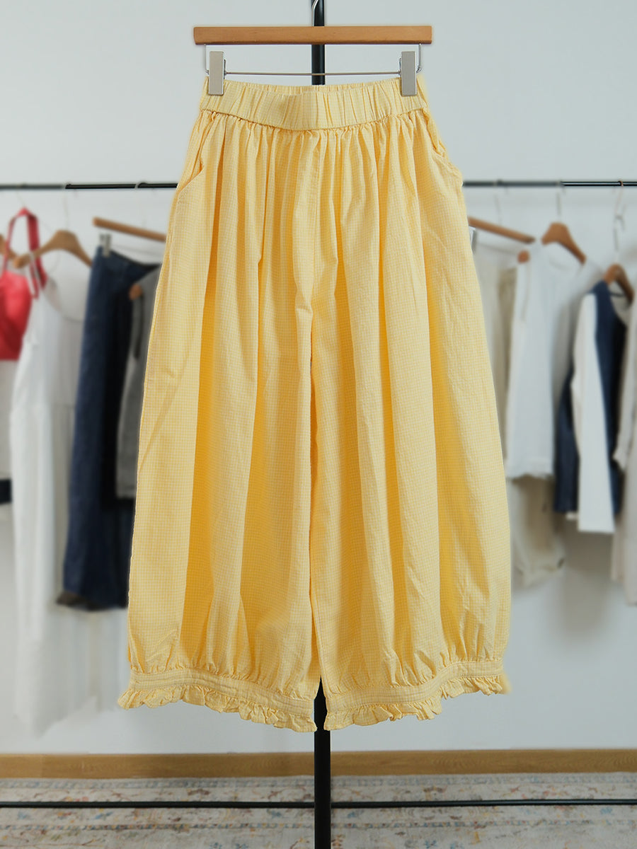 بنطلون نسائي صيفي واسع الساقين بنمط شبكي فني