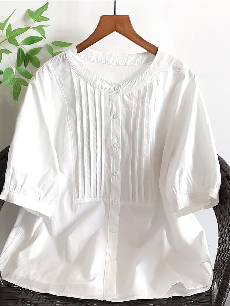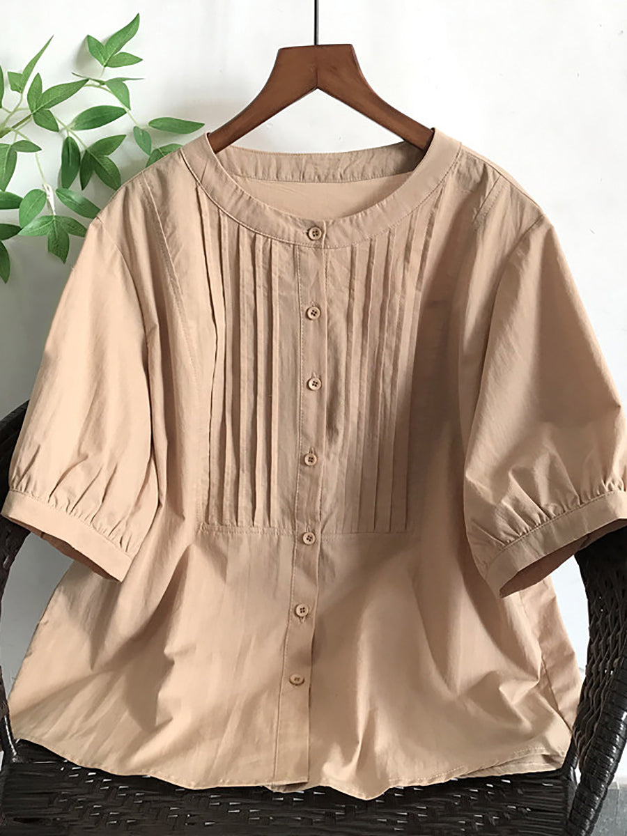 بلوزة نسائية صيفية أنيقة مكشكشة مصنوعة من القطن بنسبة 100%