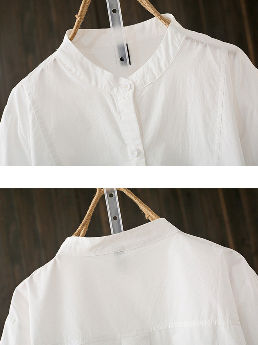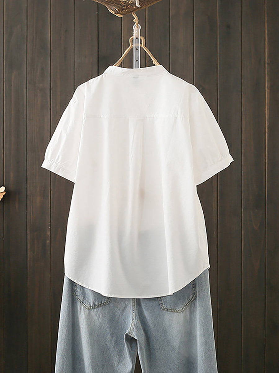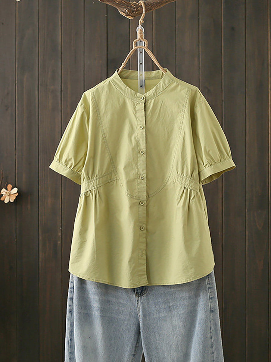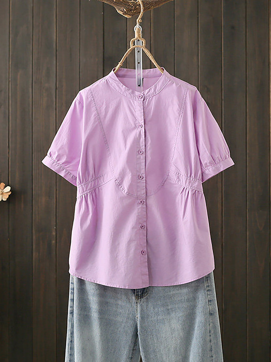 بلوزة نسائية صيفية أنيقة بياقة عالية من القطن