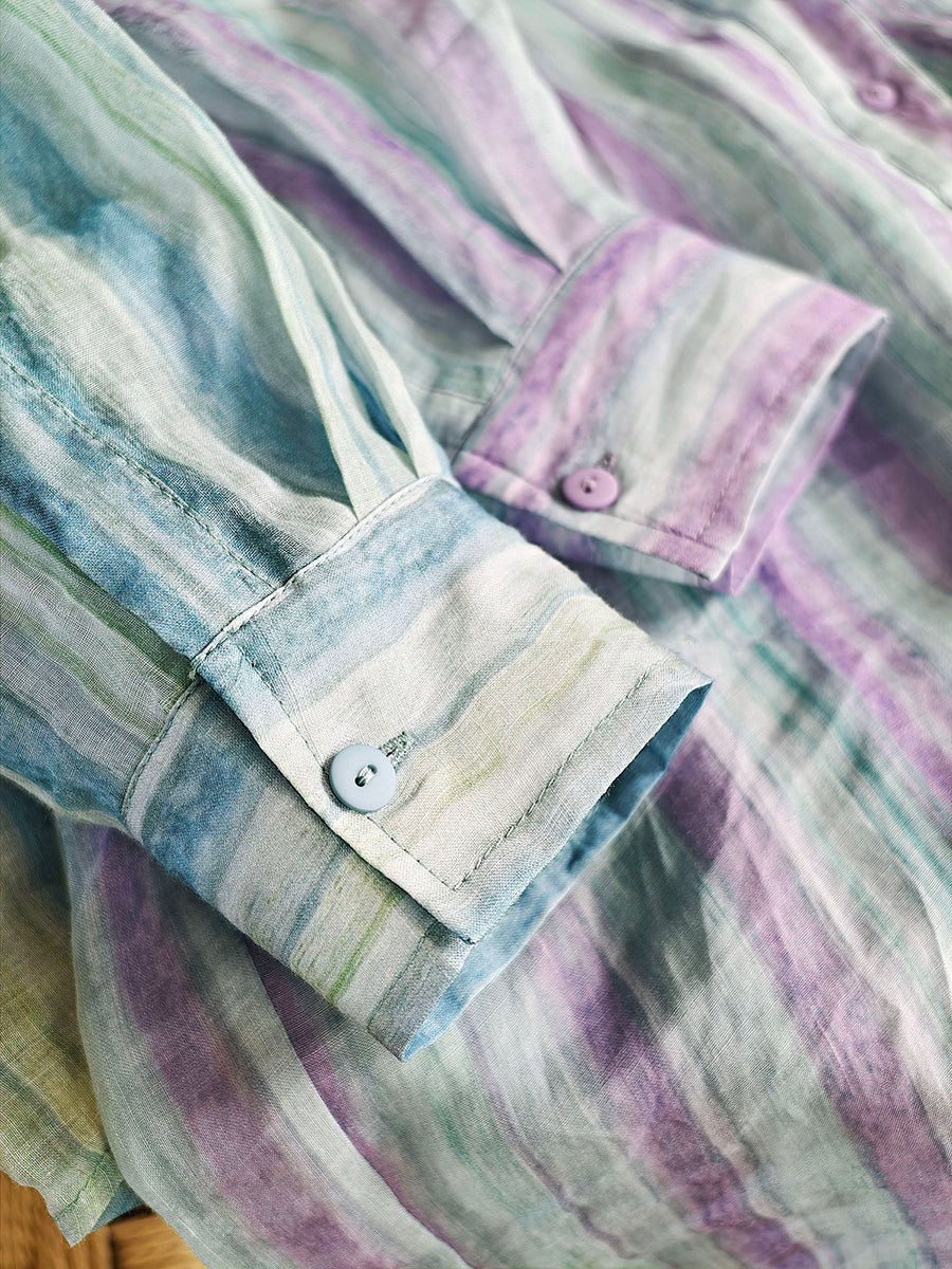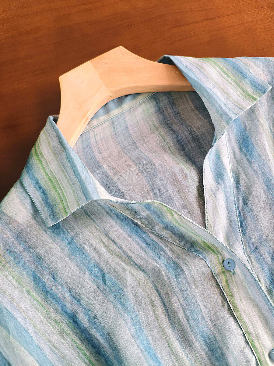 بلوزة صيفية نسائية مخططة فنية مصنوعة من قماش الرامي بنسبة 100%
