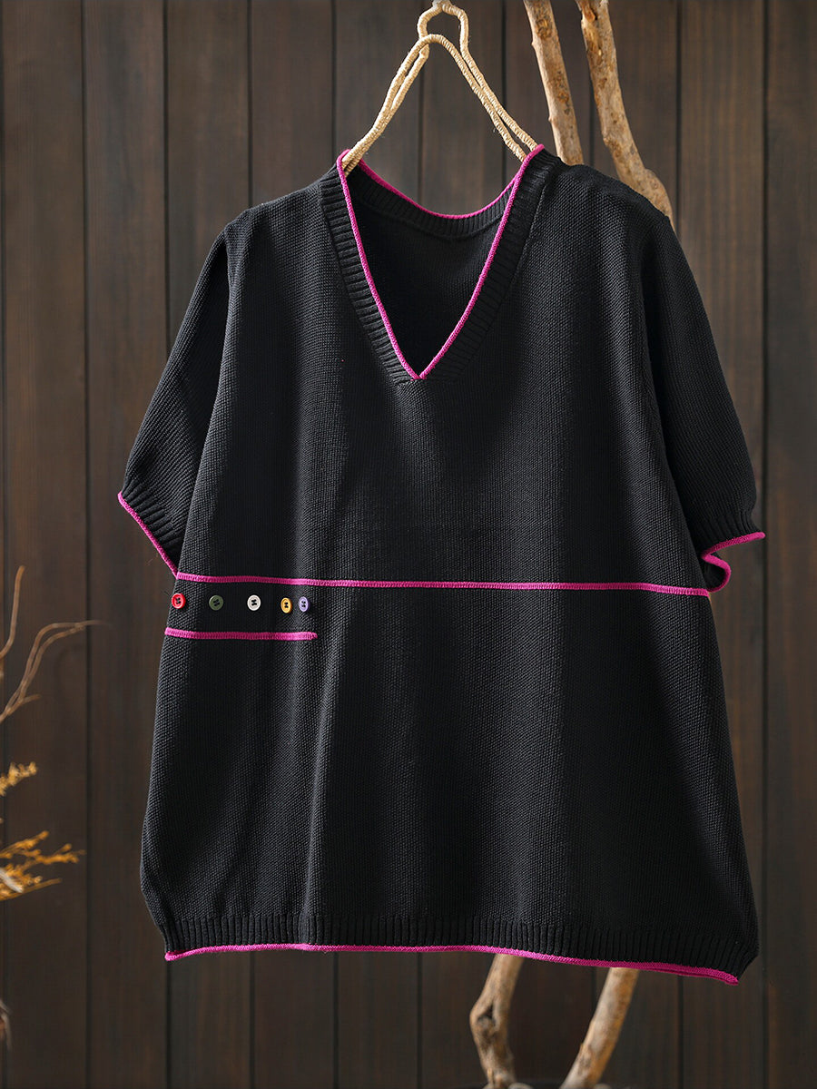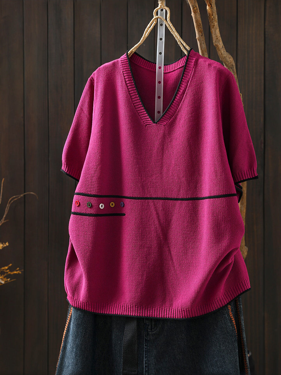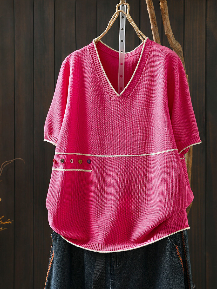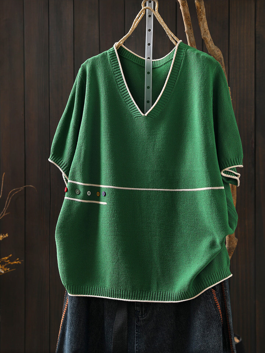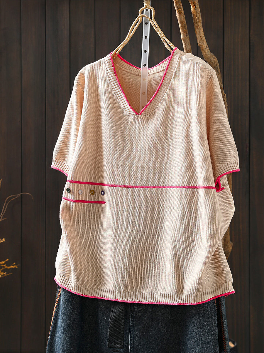بلوزة نسائية صيفية فنية محبوكة بياقة على شكل حرف V
