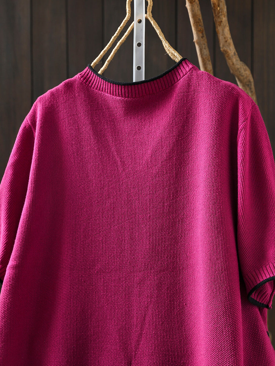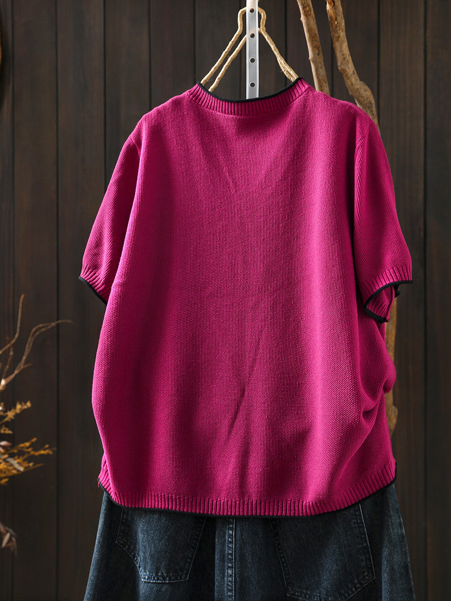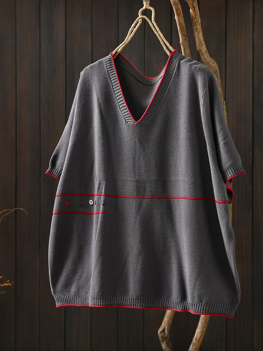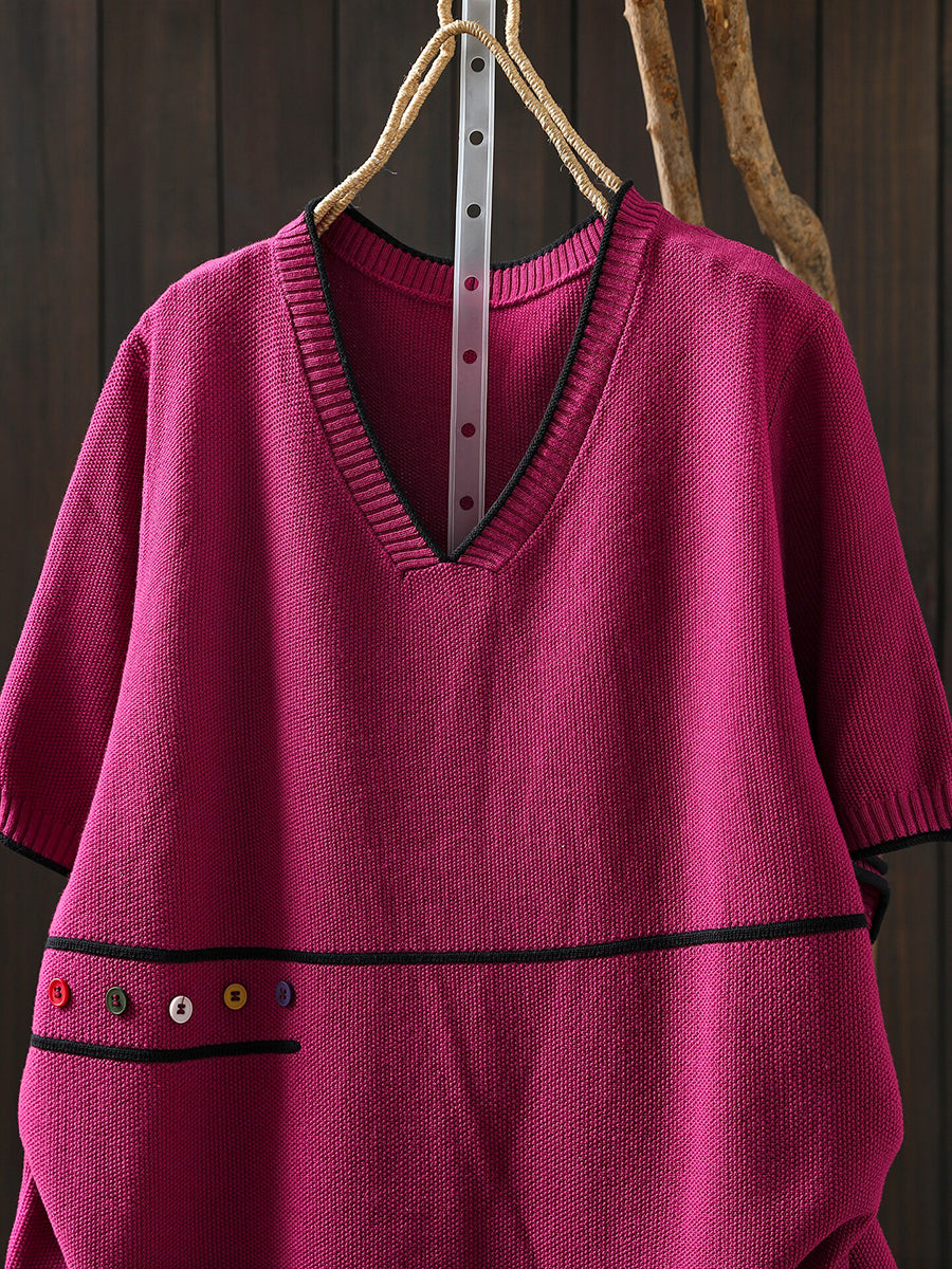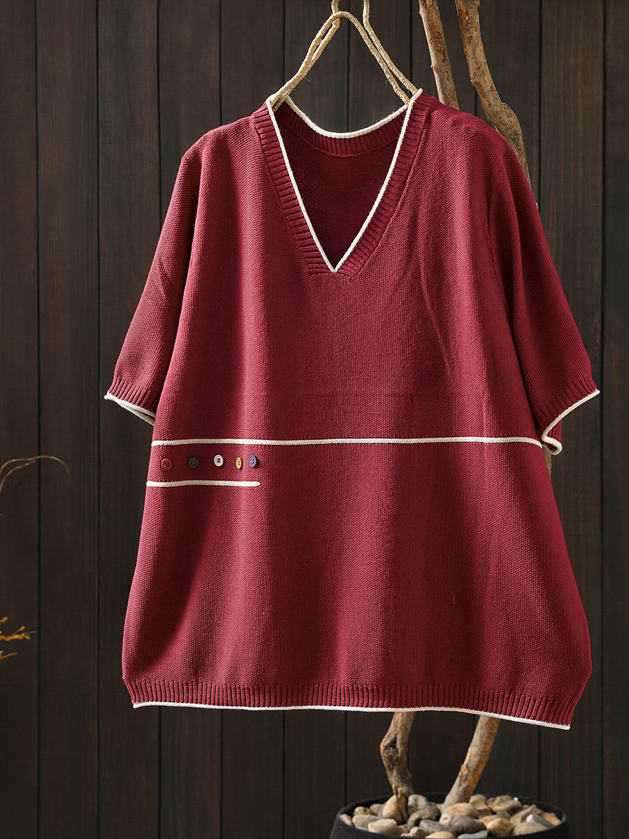بلوزة نسائية صيفية فنية محبوكة بياقة على شكل حرف V