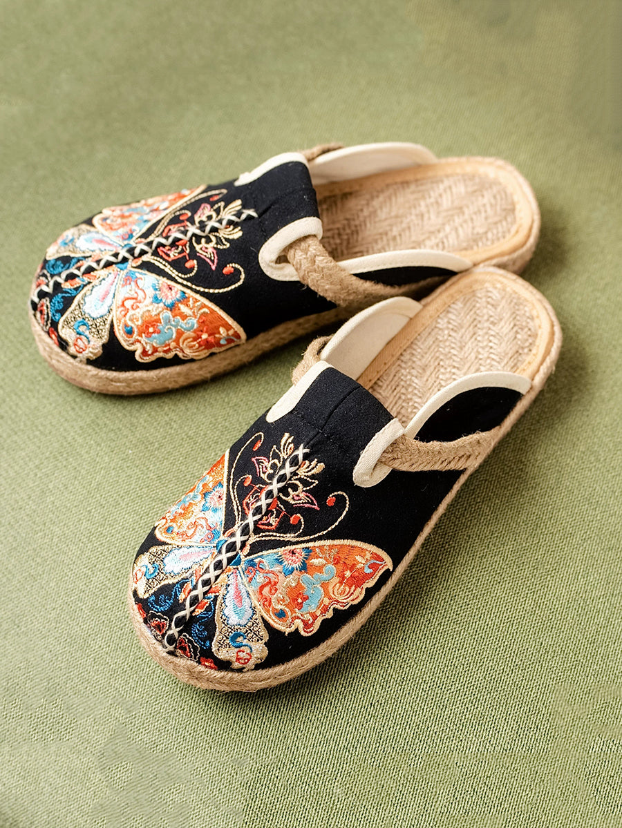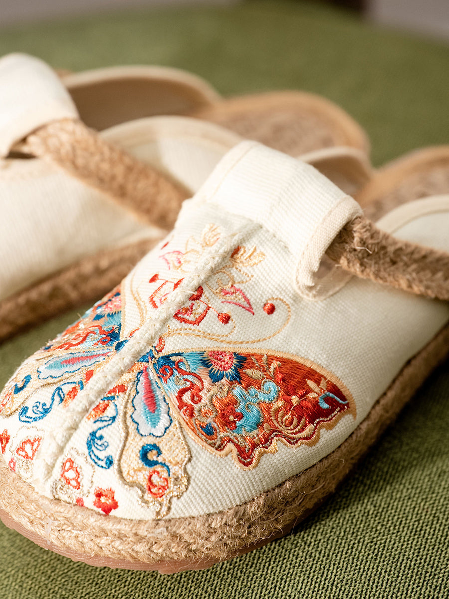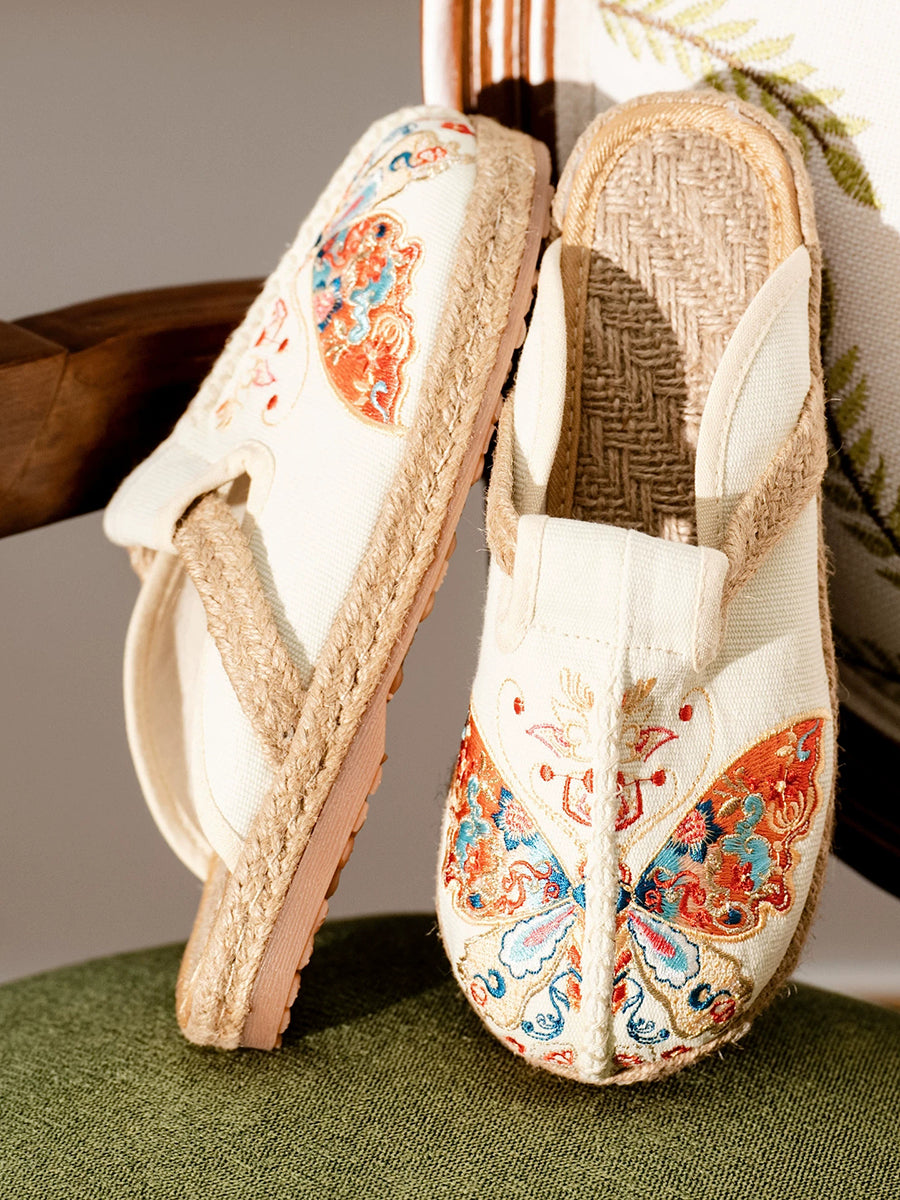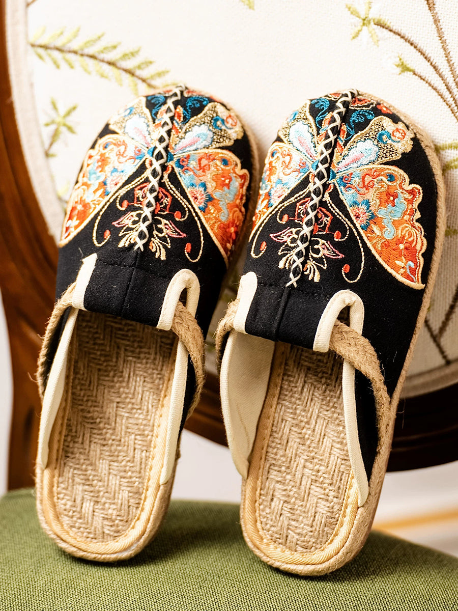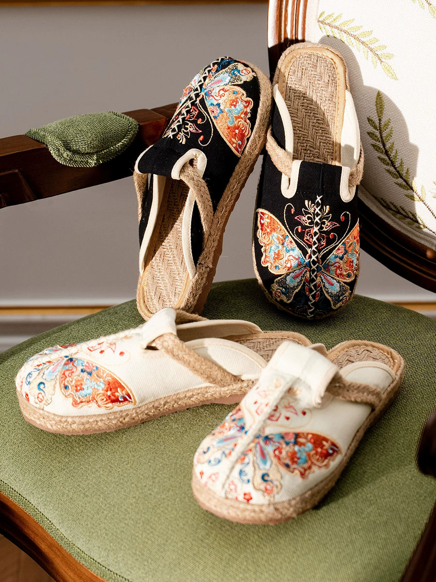 شباشب قماشية صيفية نسائية مطرزة بالفراشات