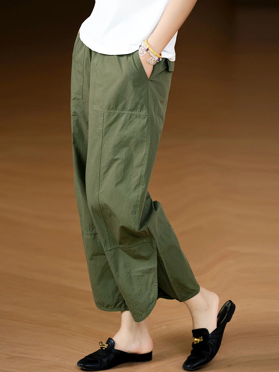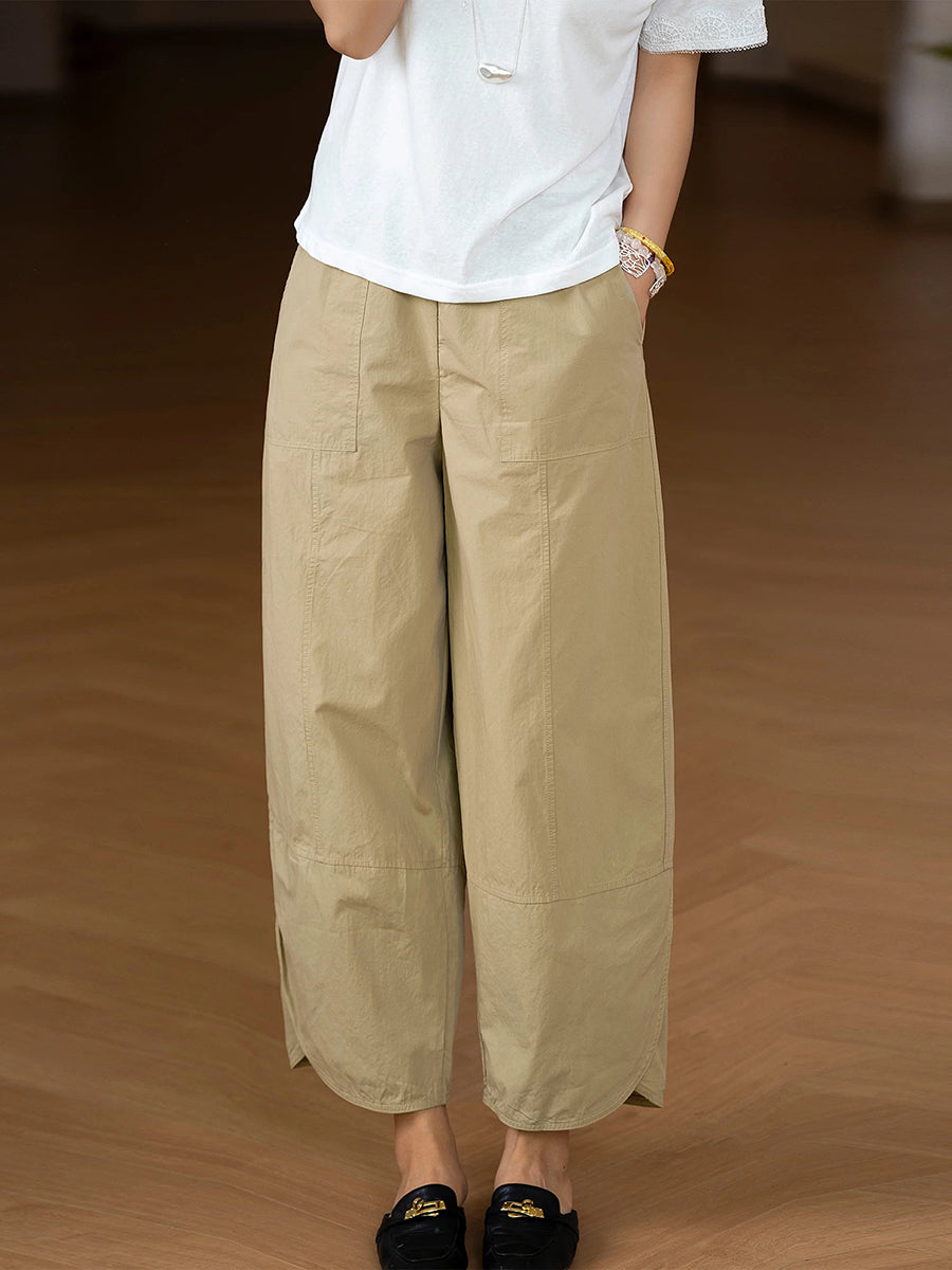 بنطلون نسائي صيفي كاجوال بقصة مستقيمة مصنوع من القطن بنسبة 100%