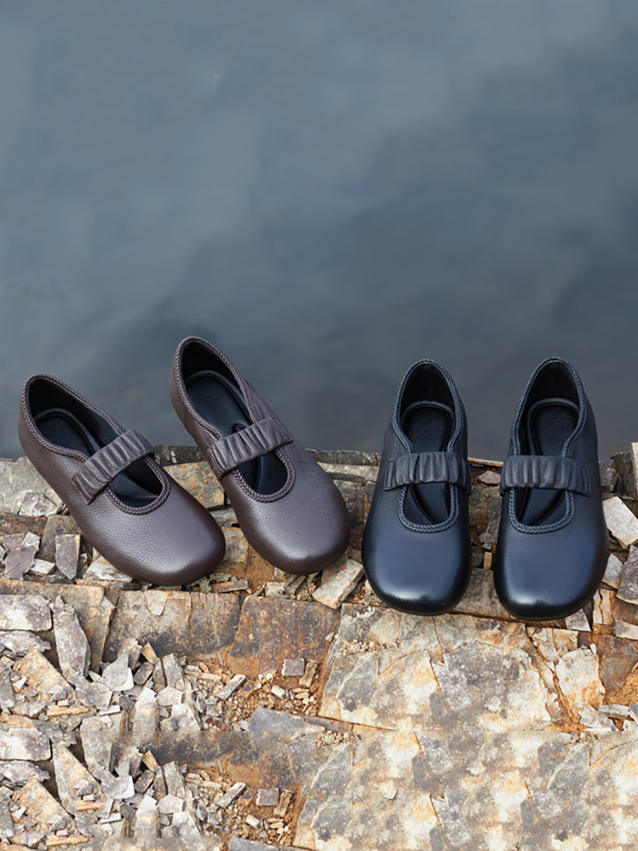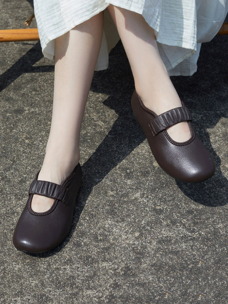 أحذية نسائية صيفية كاجوال مسطحة من الجلد الطبيعي