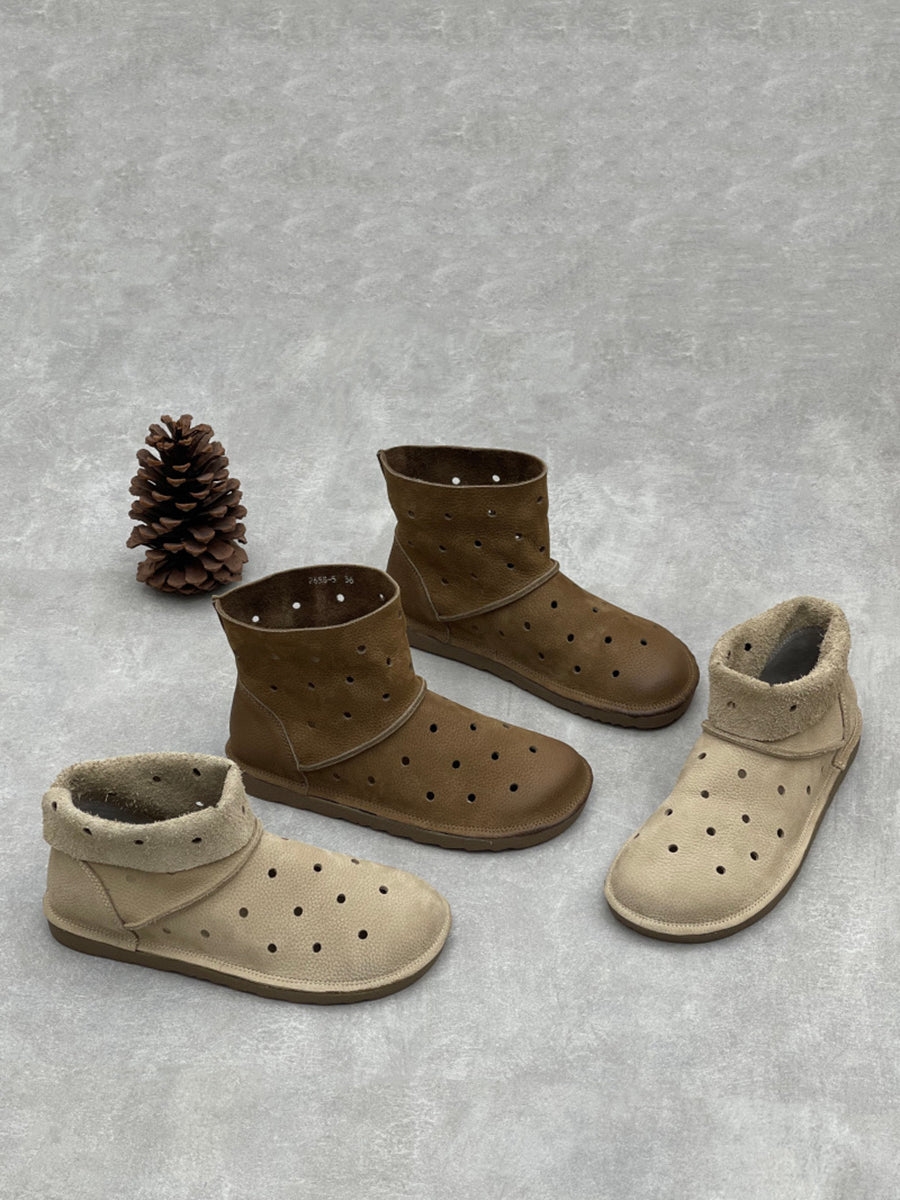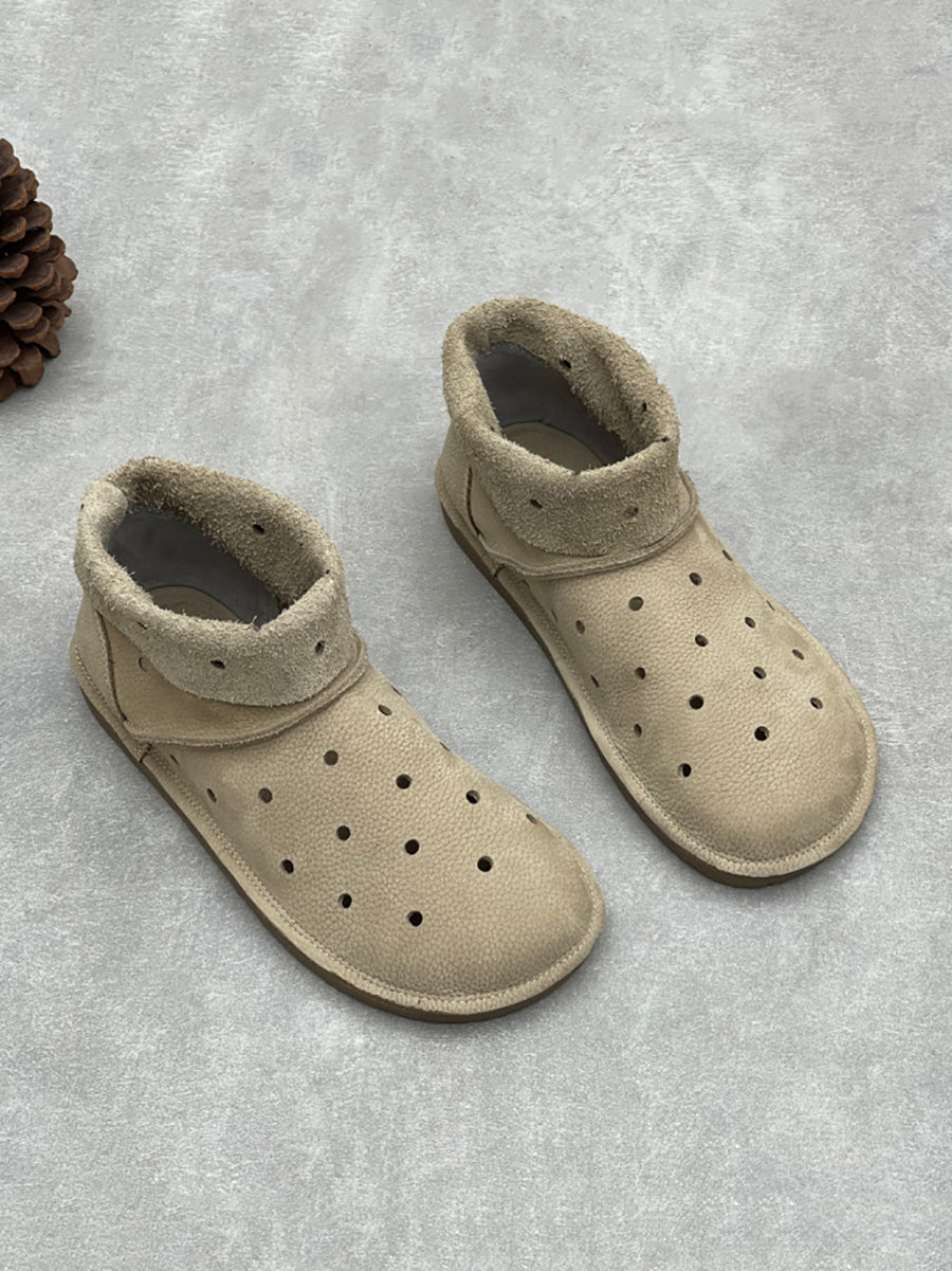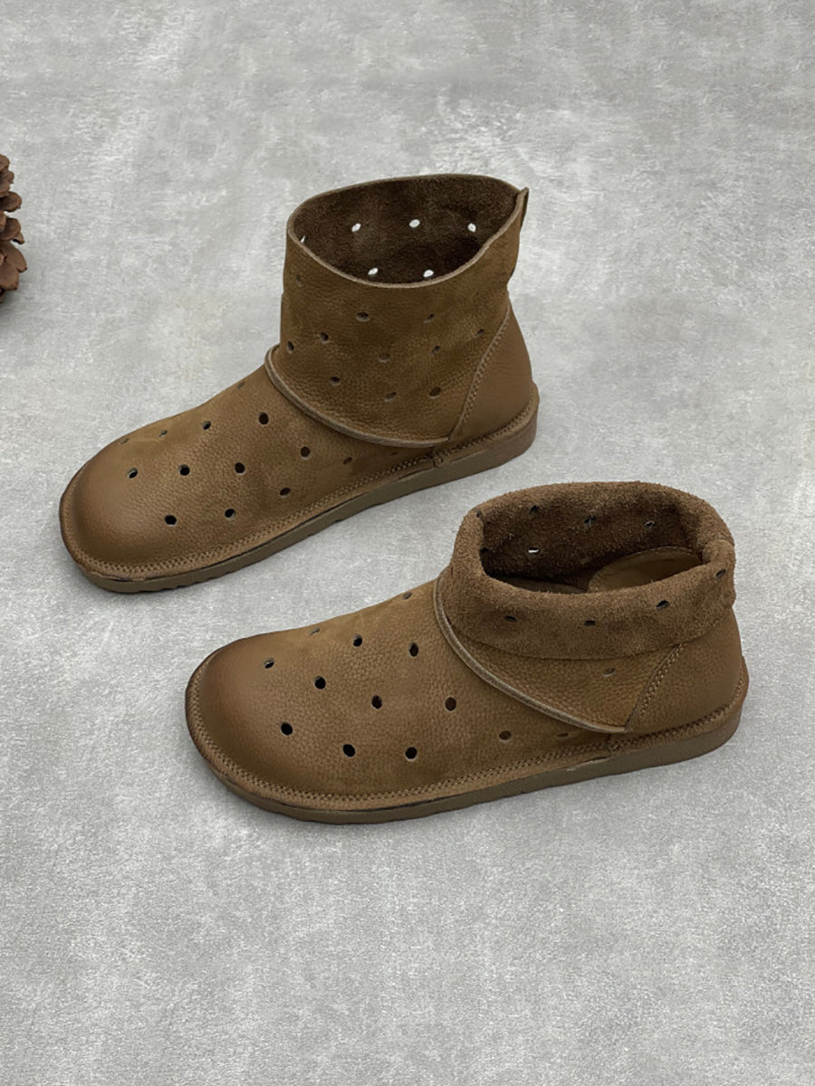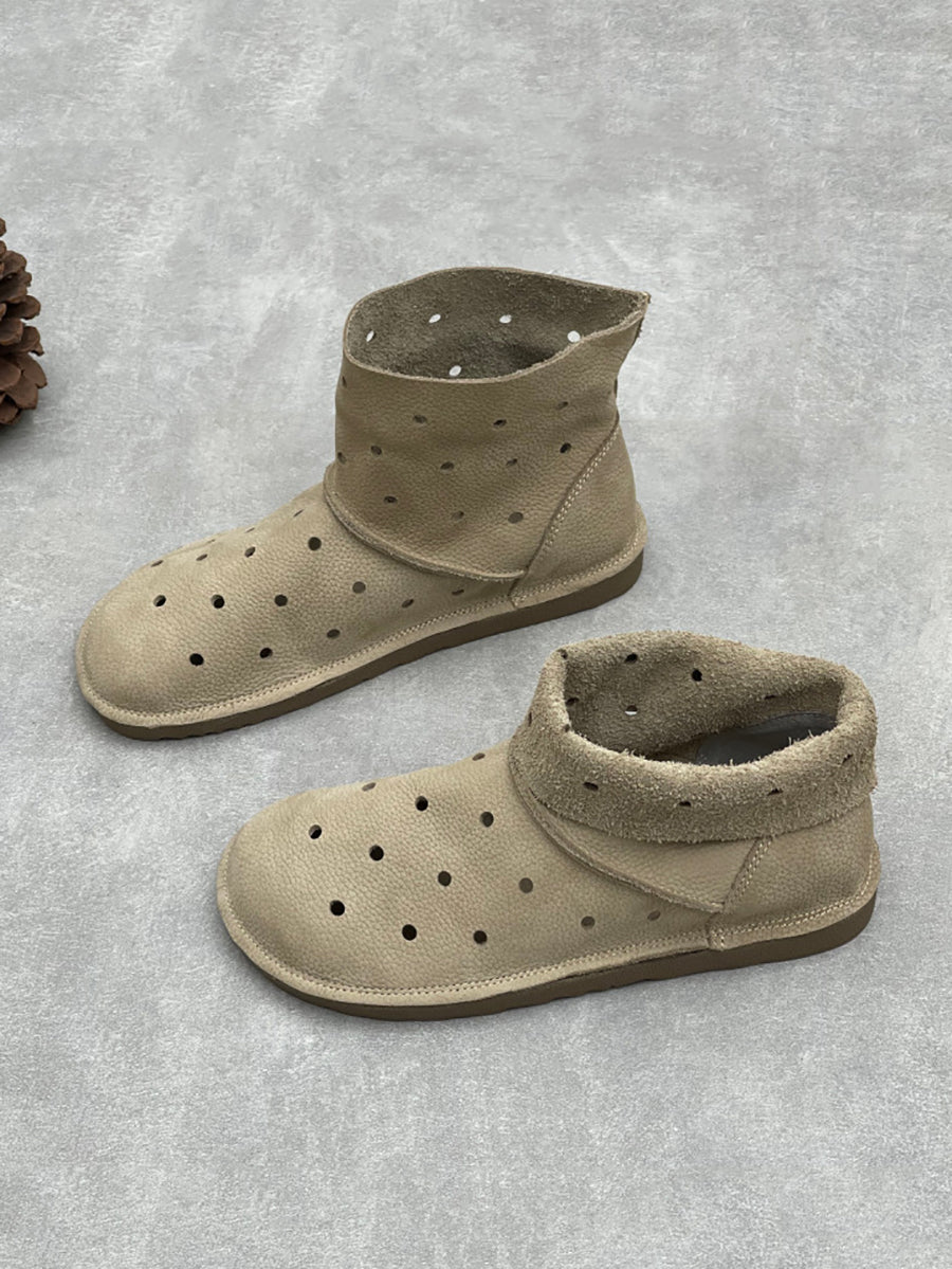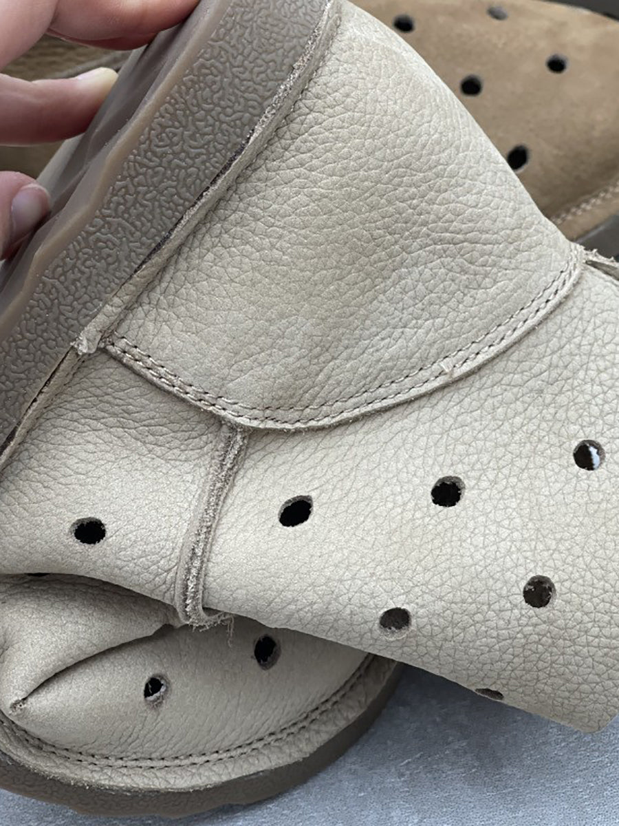صنادل نسائية صيفية كاجوال من الجلد الطبيعي بفتحات