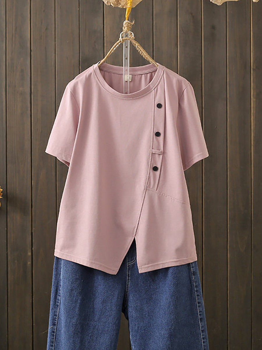 تيشيرت قطني صيفي نسائي كاجوال بفتحة جانبية