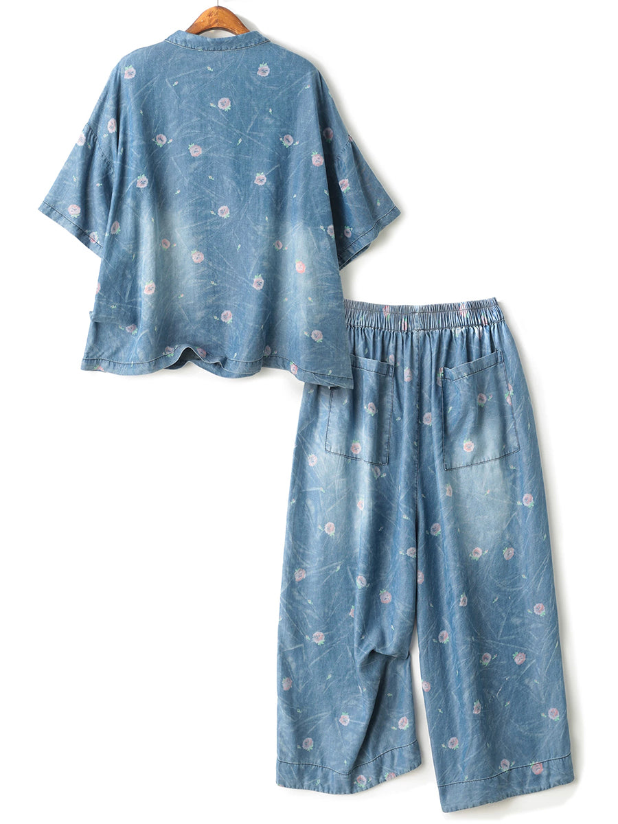 بدلات جينز صيفية نسائية مزينة بنقوش زهور عرقية