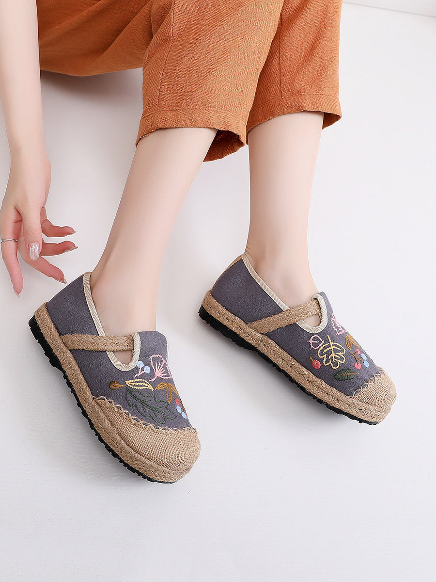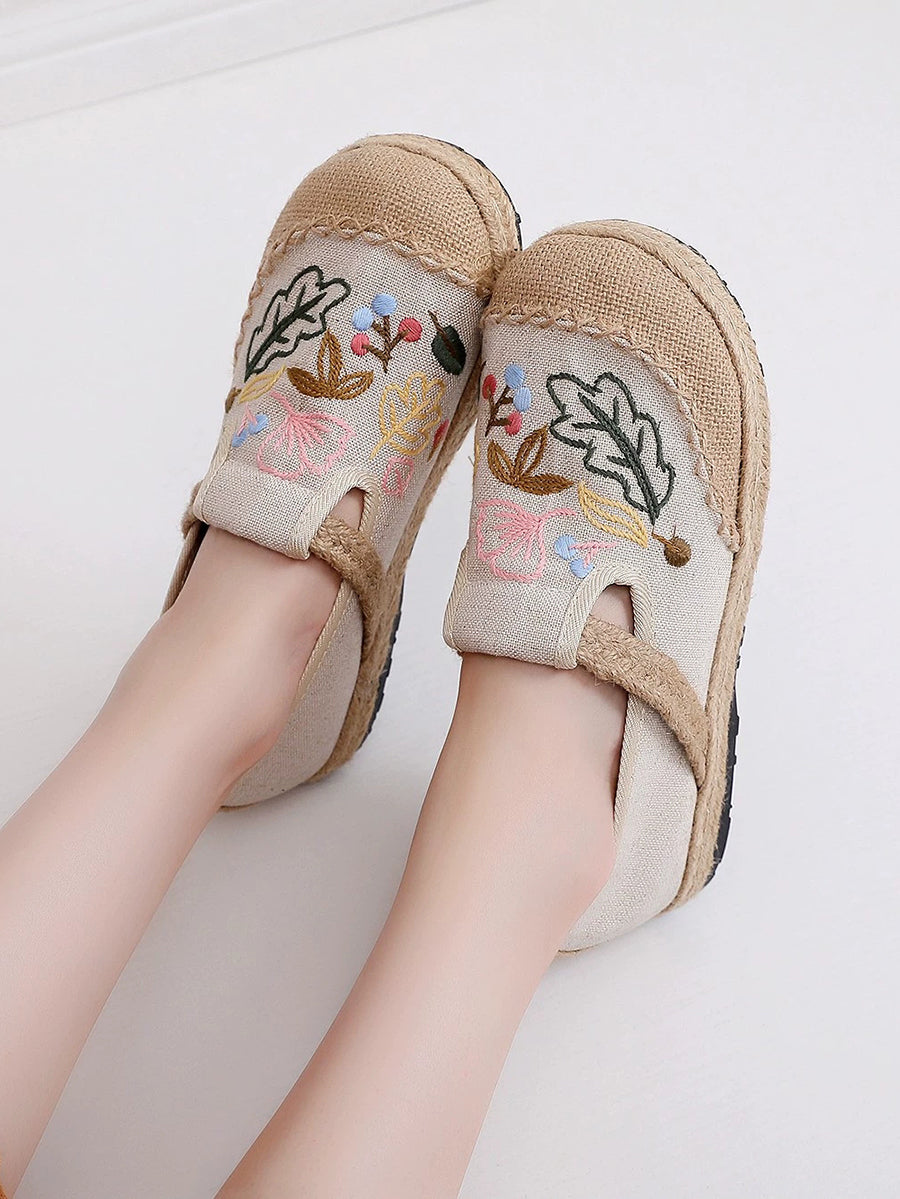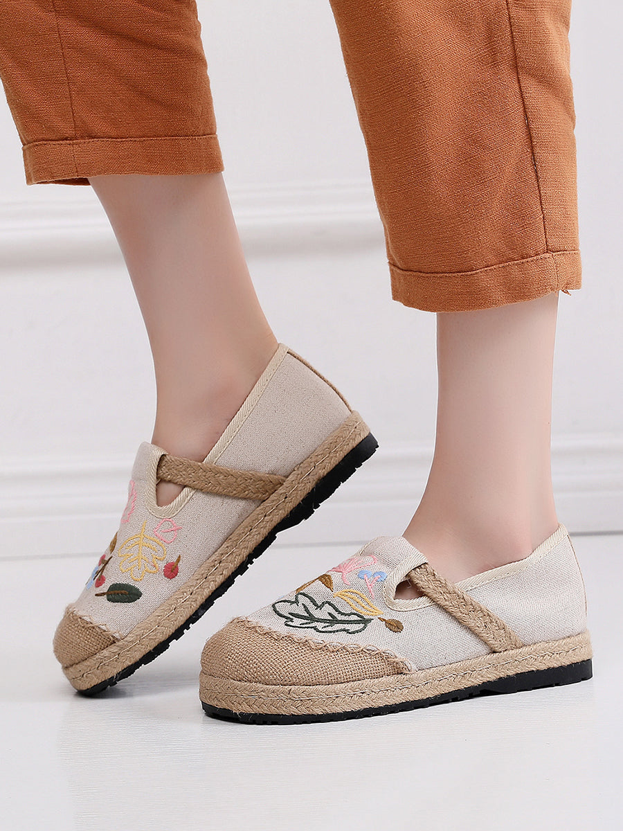 أحذية نسائية صيفية من الكتان مطرزة بالزهور