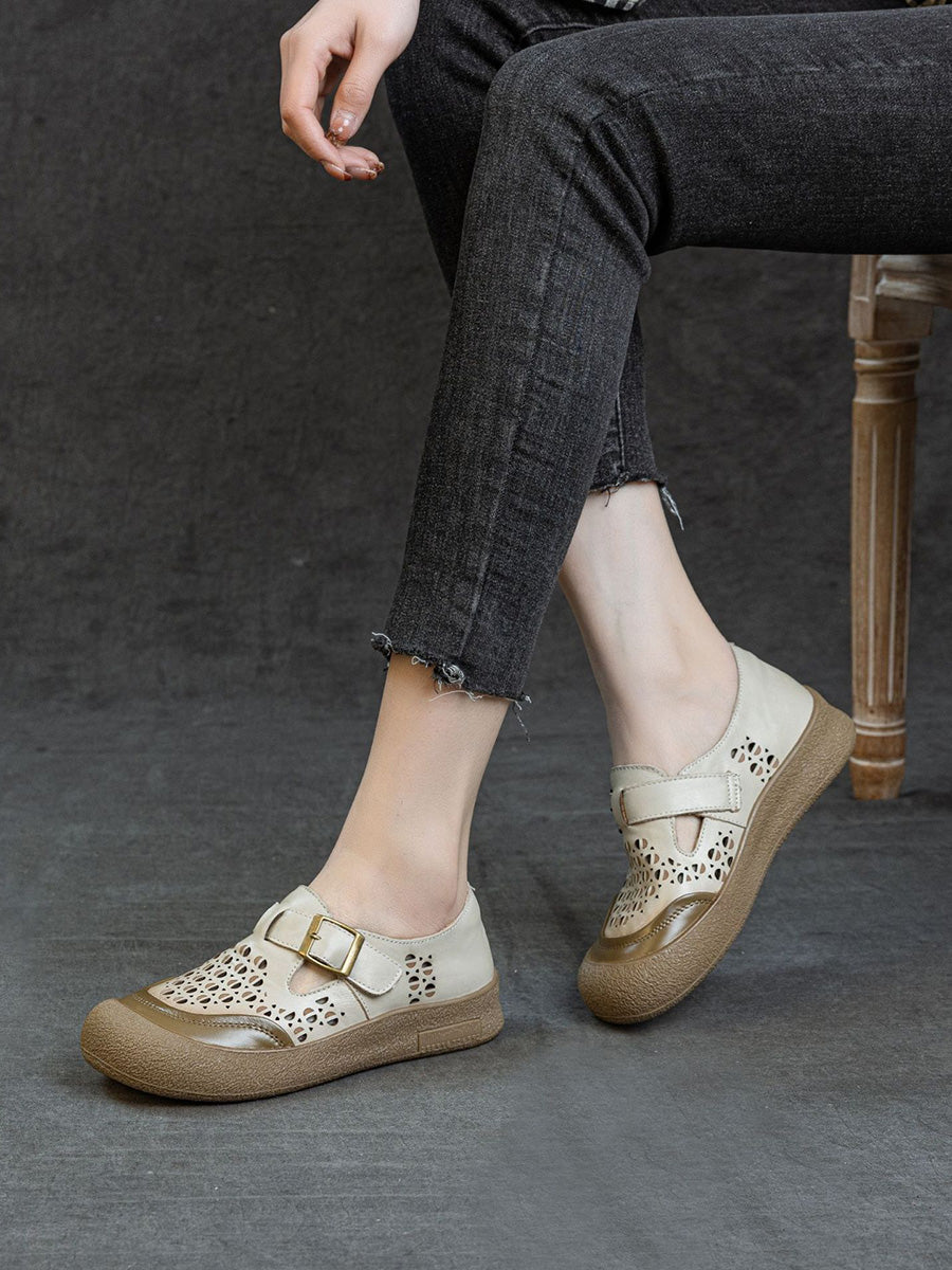 أحذية نسائية صيفية مسطحة من الجلد الطبيعي