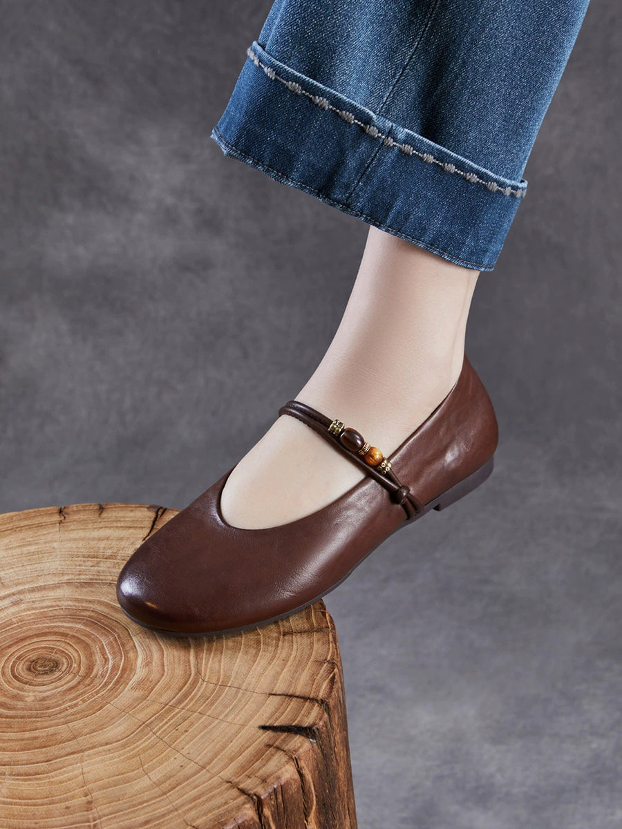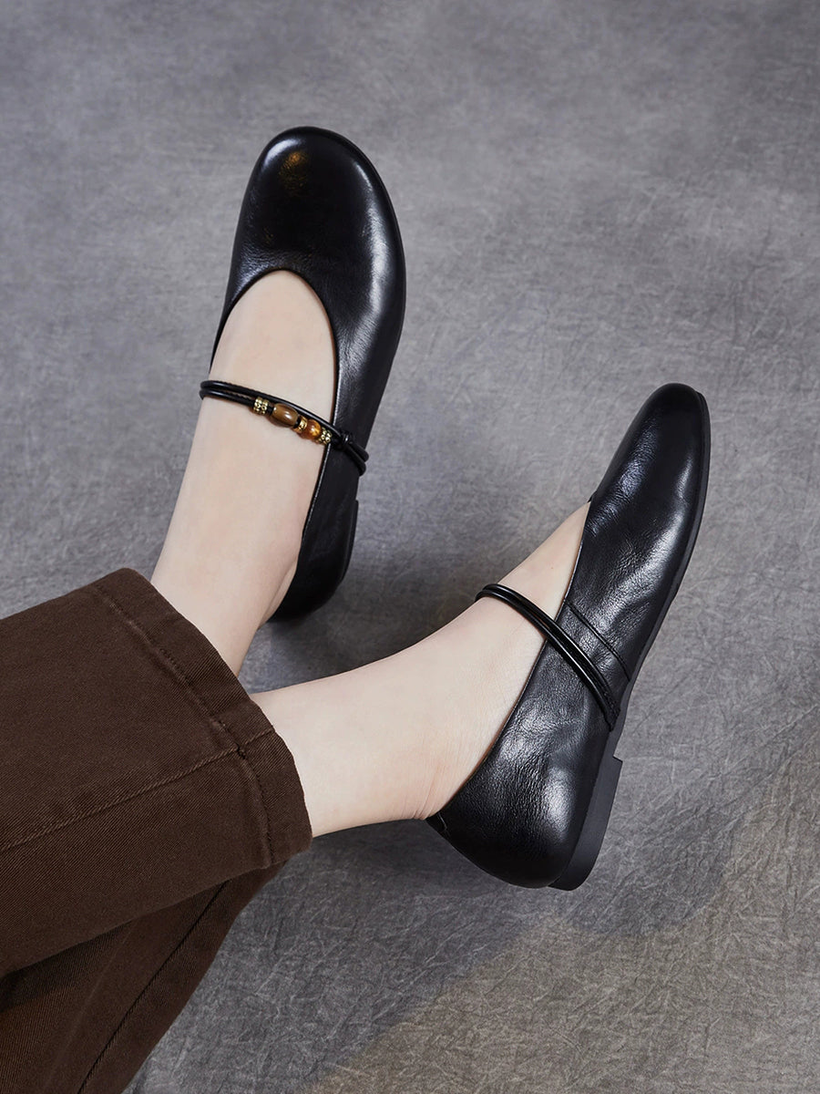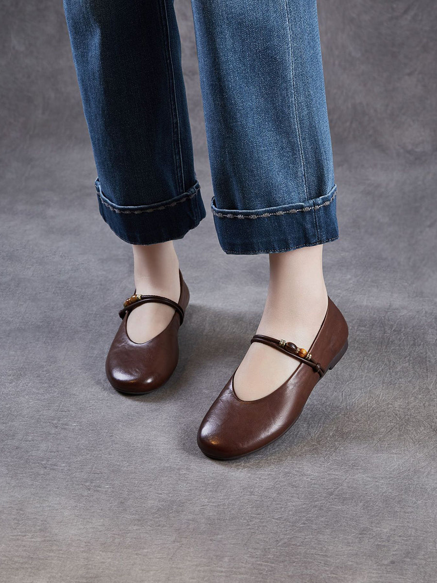 أحذية نسائية صيفية مسطحة من الجلد الطبيعي