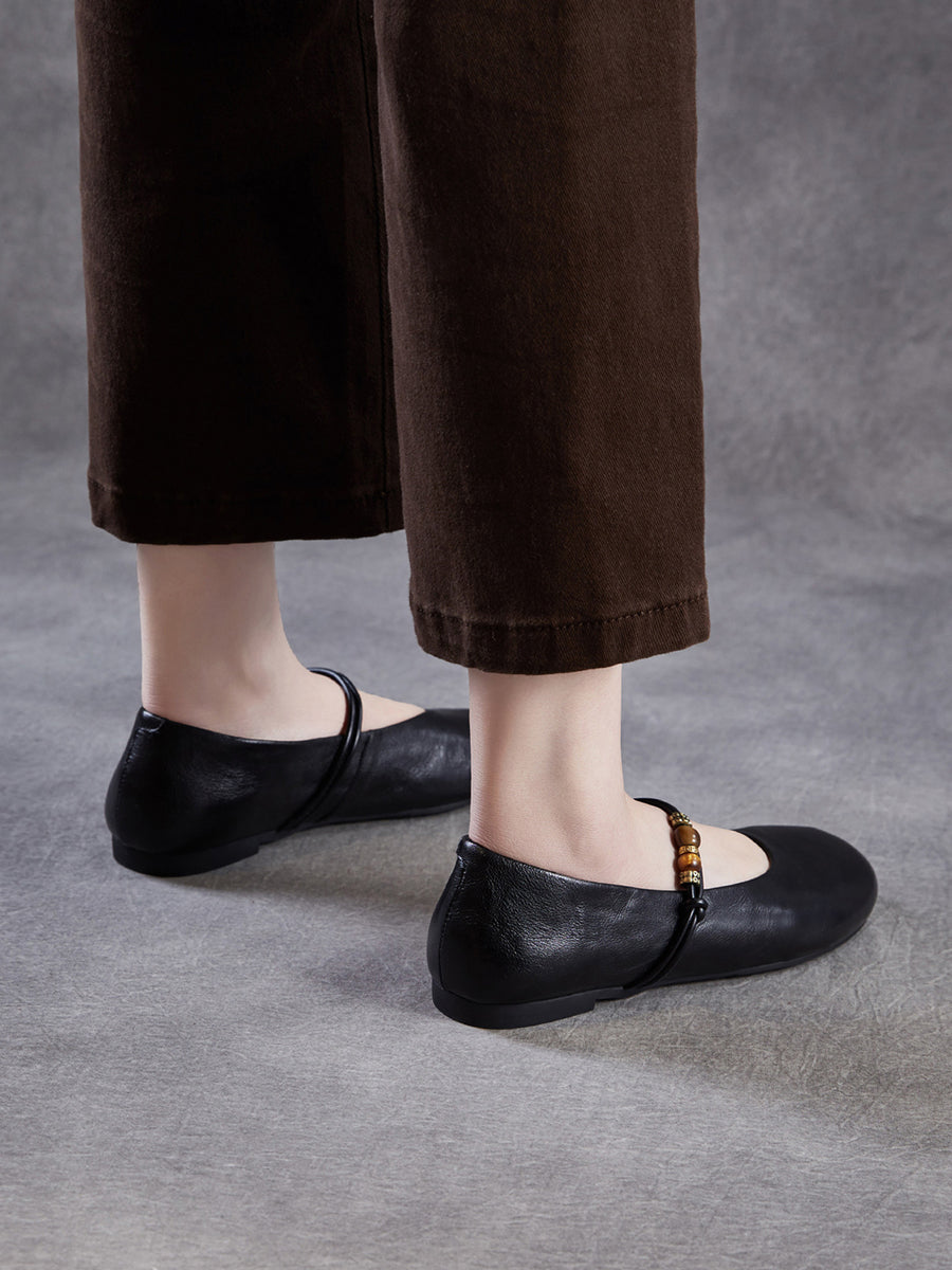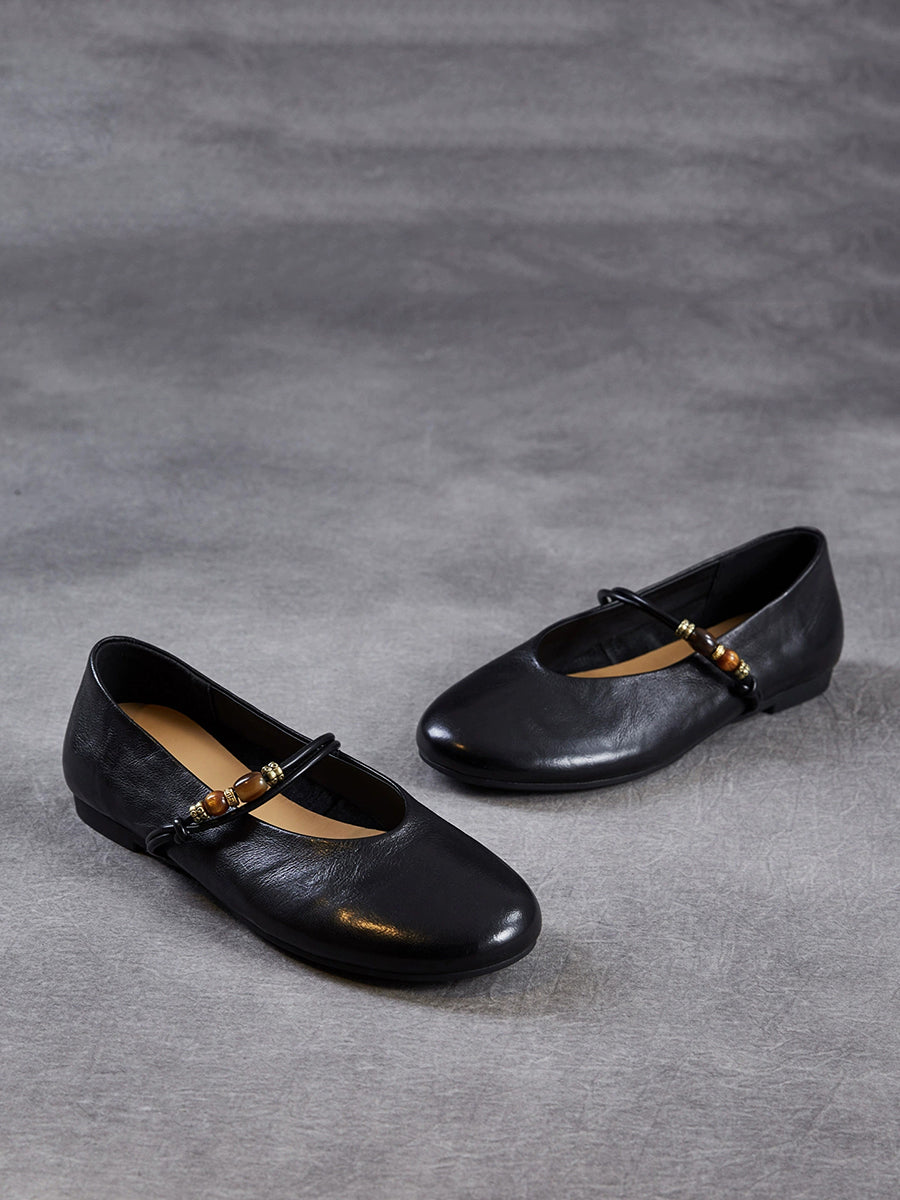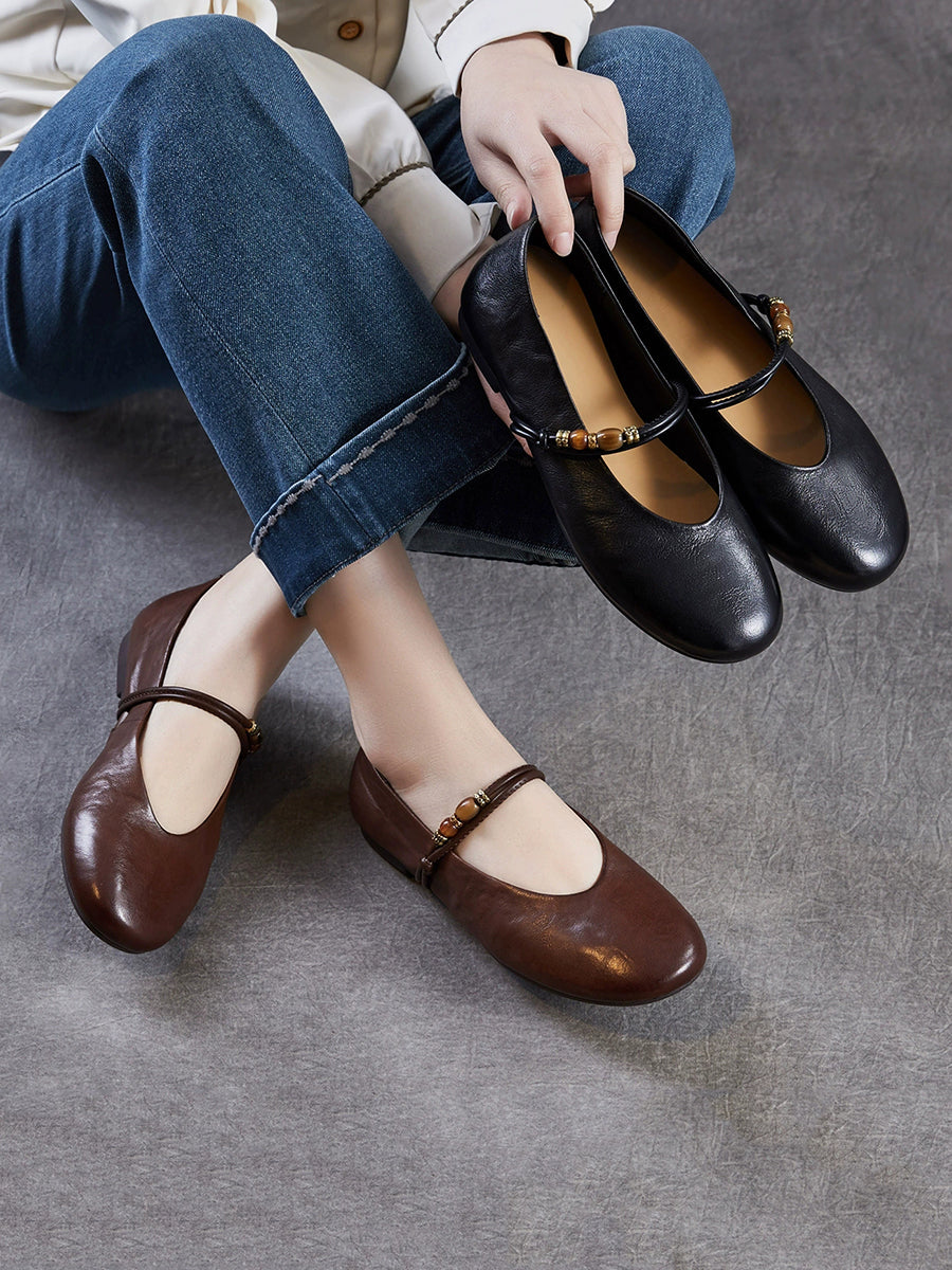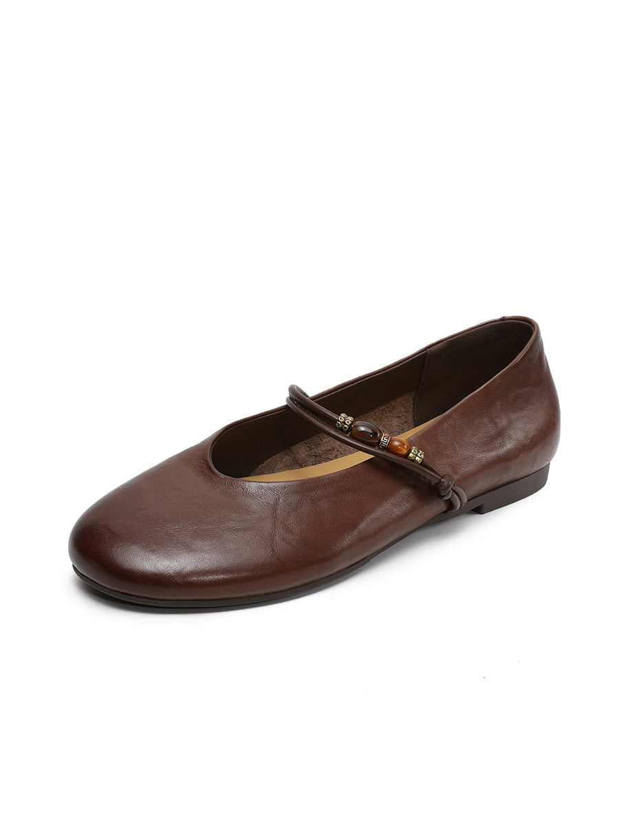 أحذية نسائية صيفية مسطحة من الجلد الطبيعي
