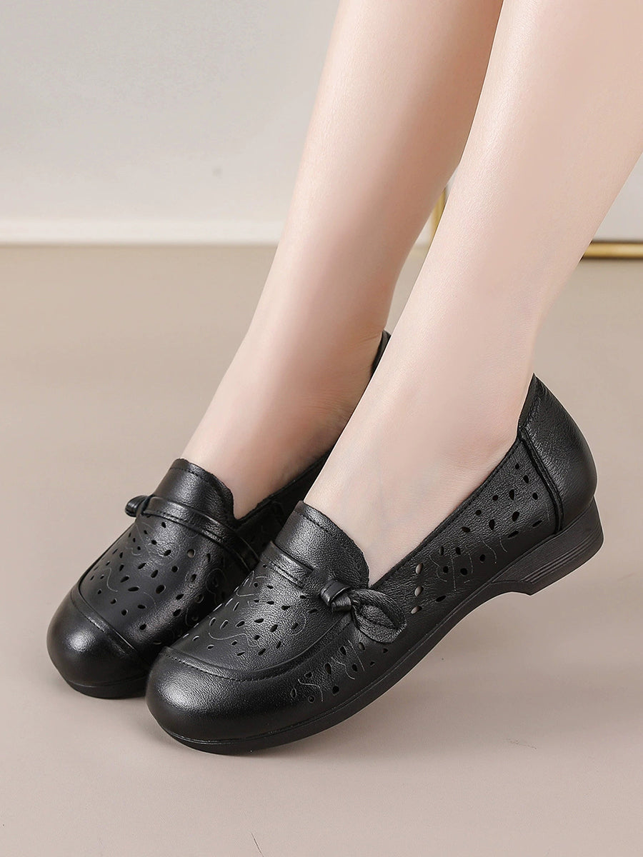 أحذية نسائية صيفية من الجلد الطبيعي بكعب منخفض