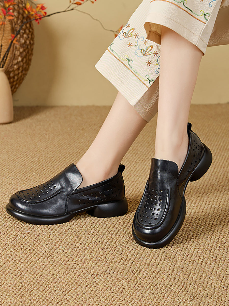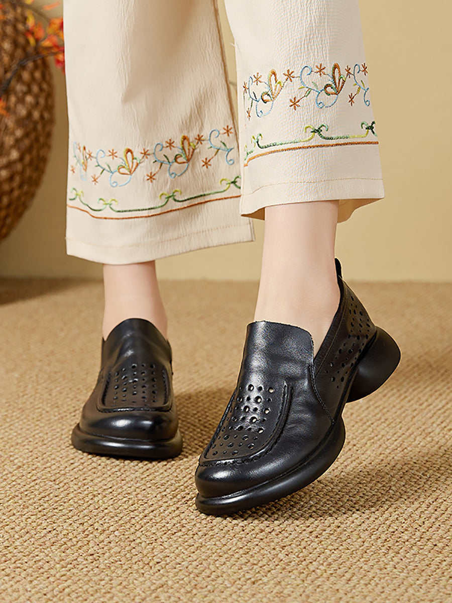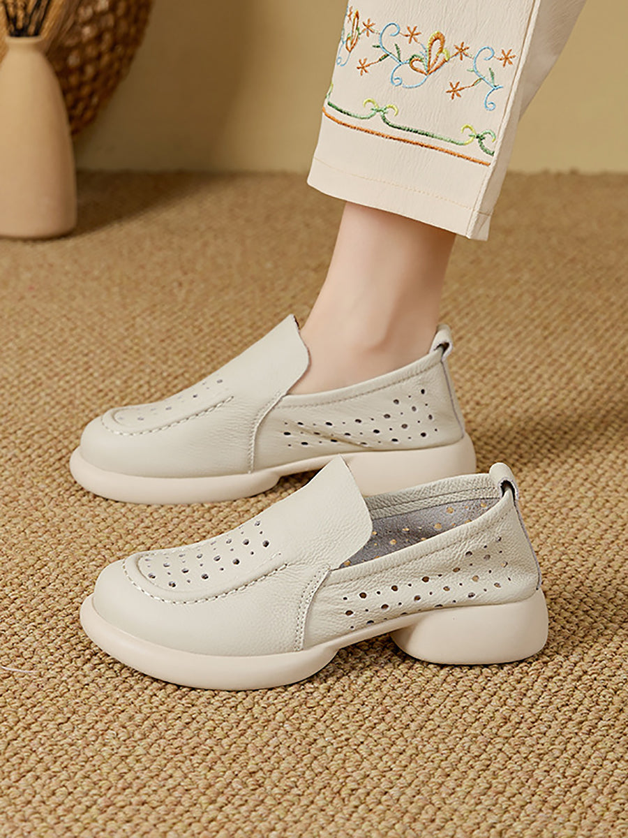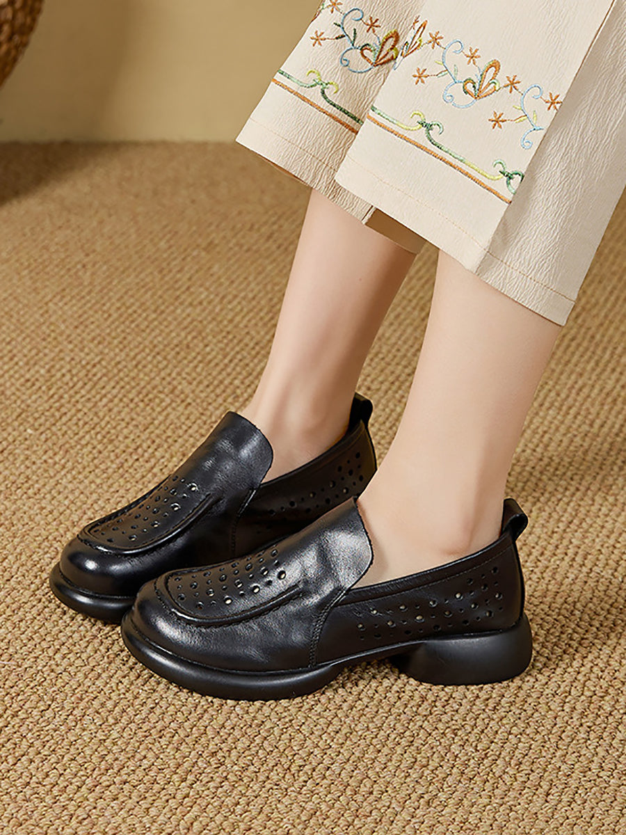 أحذية نسائية صيفية من الجلد الطبيعي بكعب منخفض