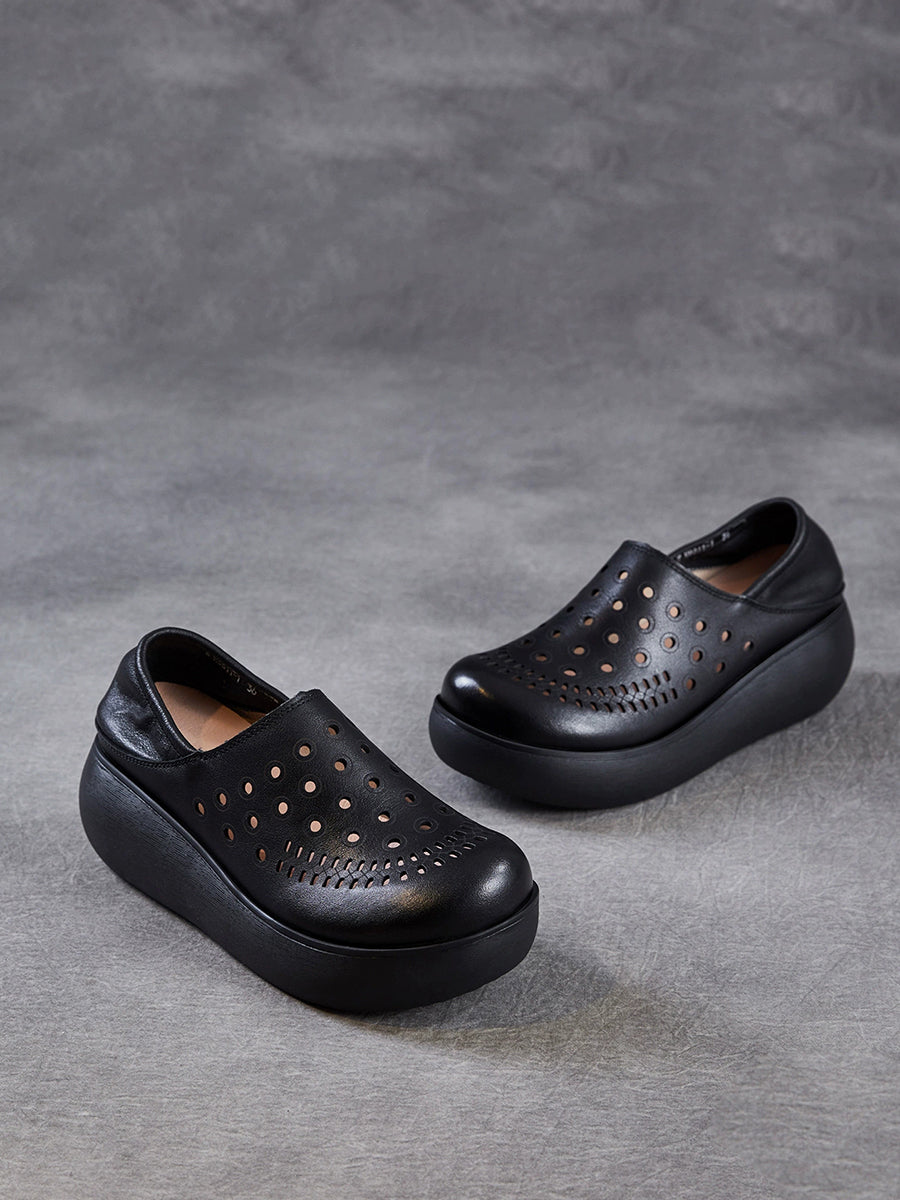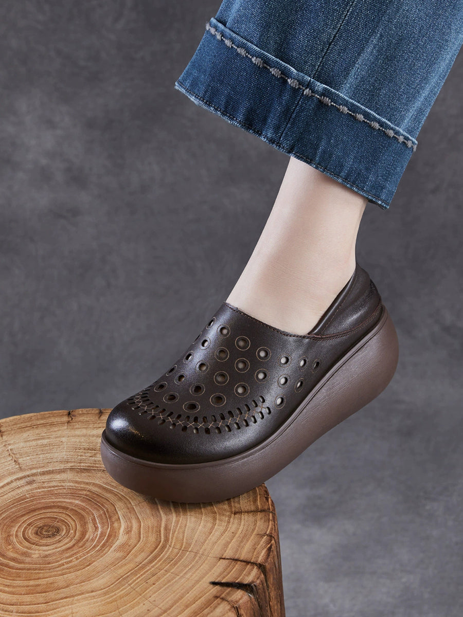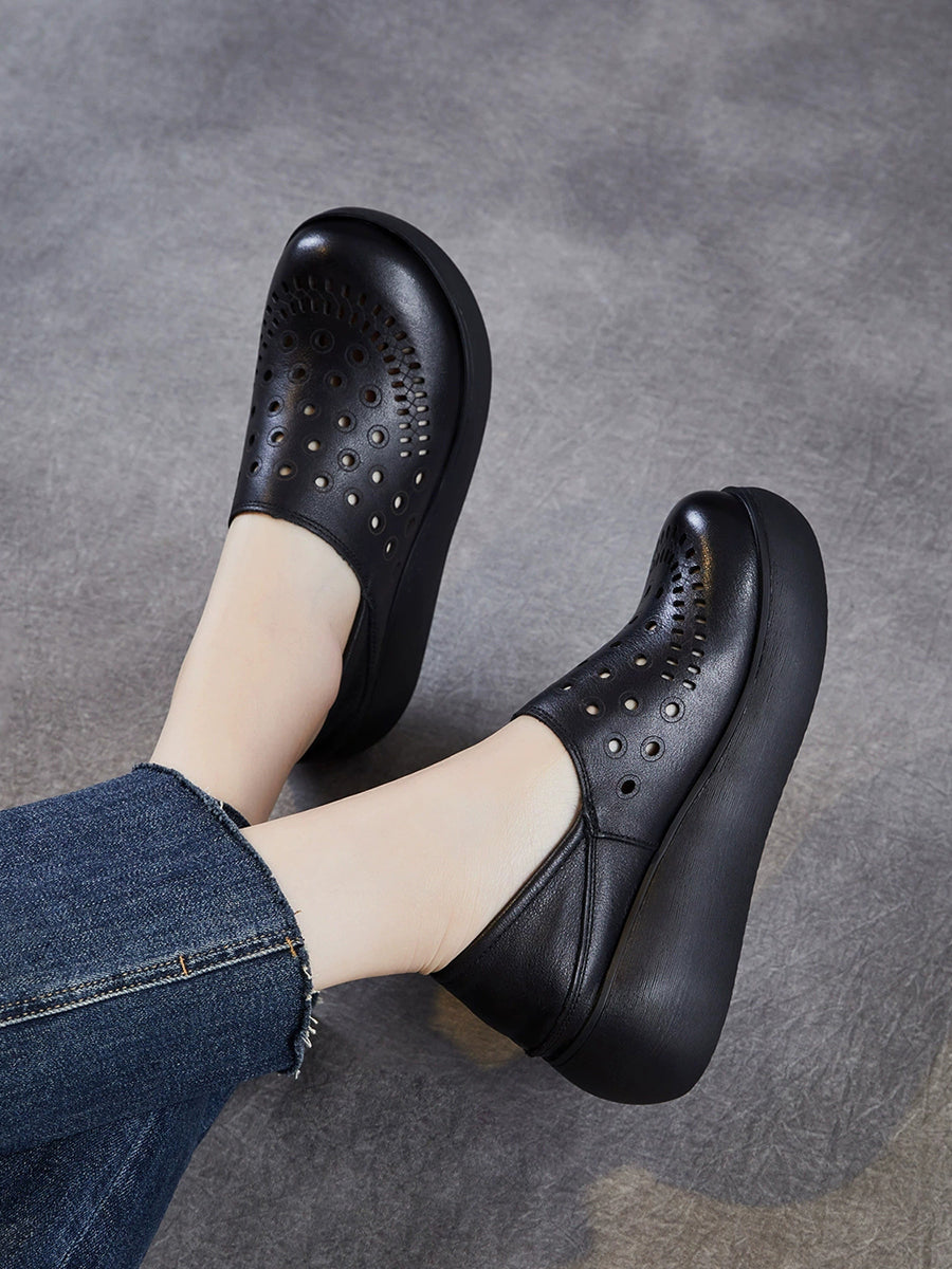 أحذية نسائية صيفية من الجلد الطبيعي ذات نعل سميك