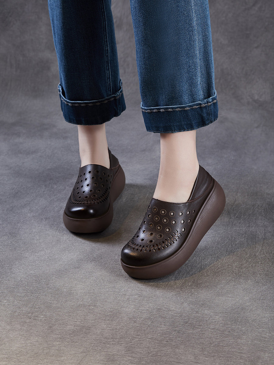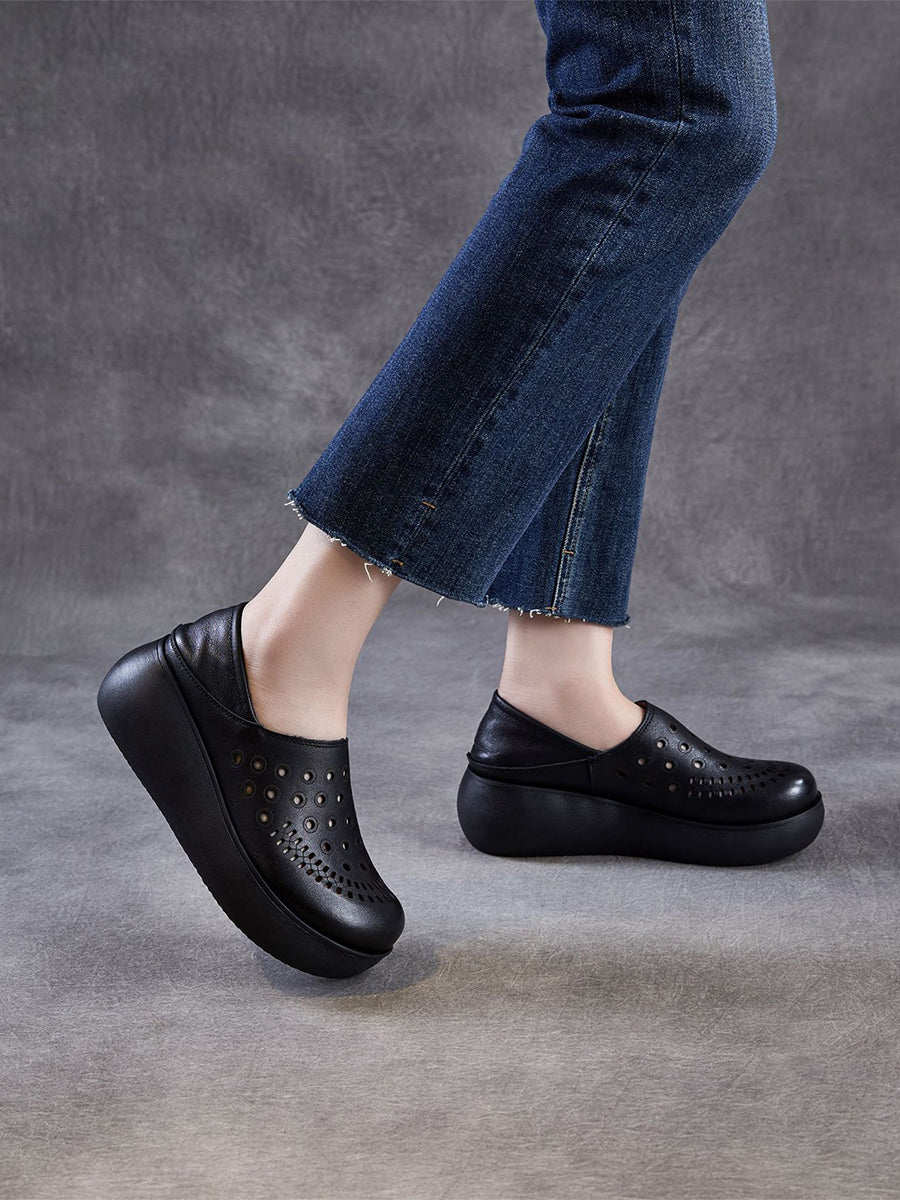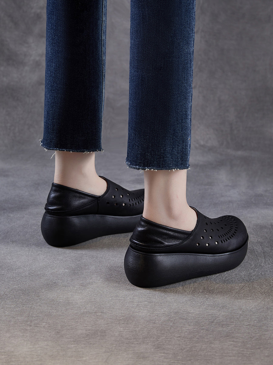 أحذية نسائية صيفية من الجلد الطبيعي ذات نعل سميك