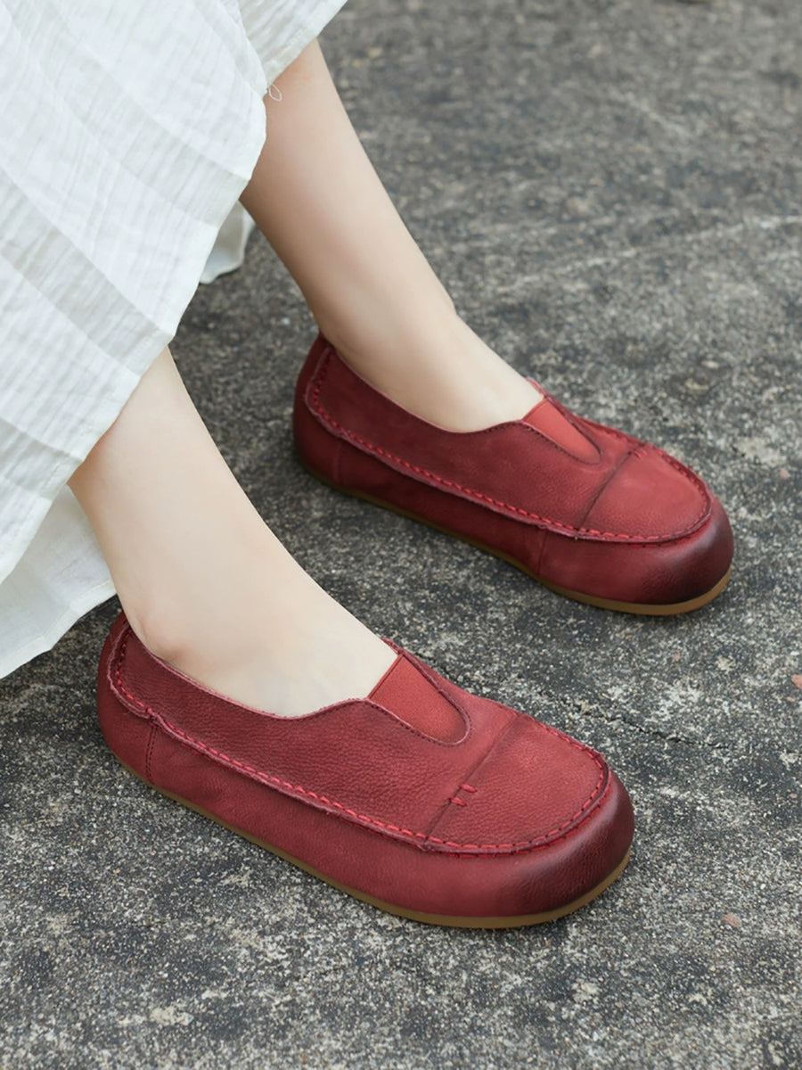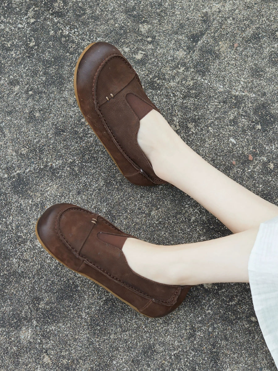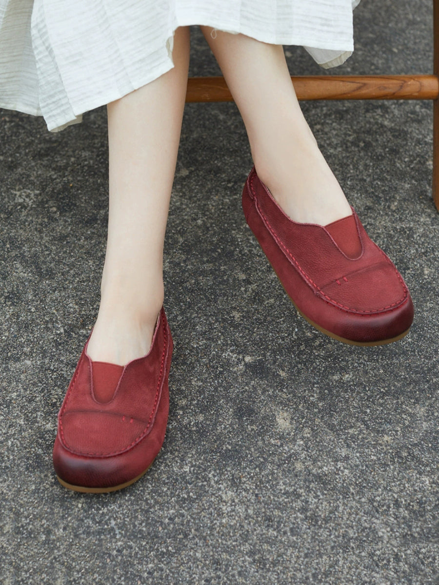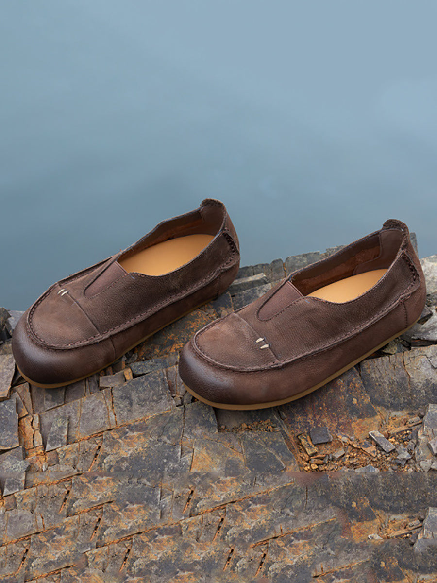 أحذية نسائية صيفية مسطحة من الجلد الطبيعي بتصميم متداخل