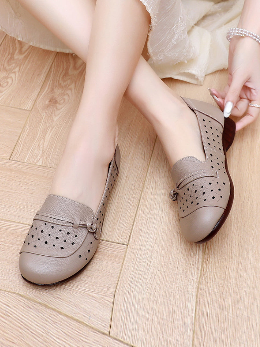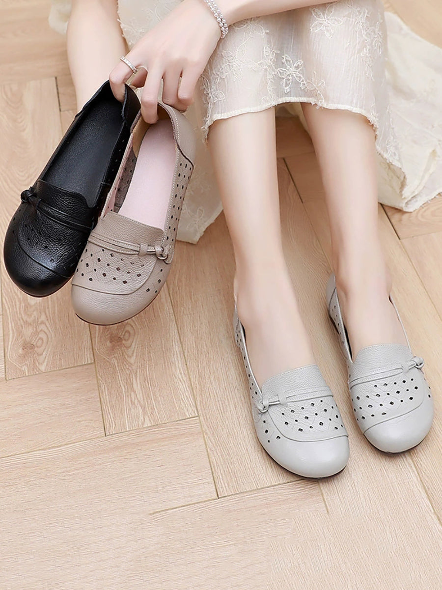 أحذية نسائية صيفية بكعب منخفض من الجلد الطبيعي
