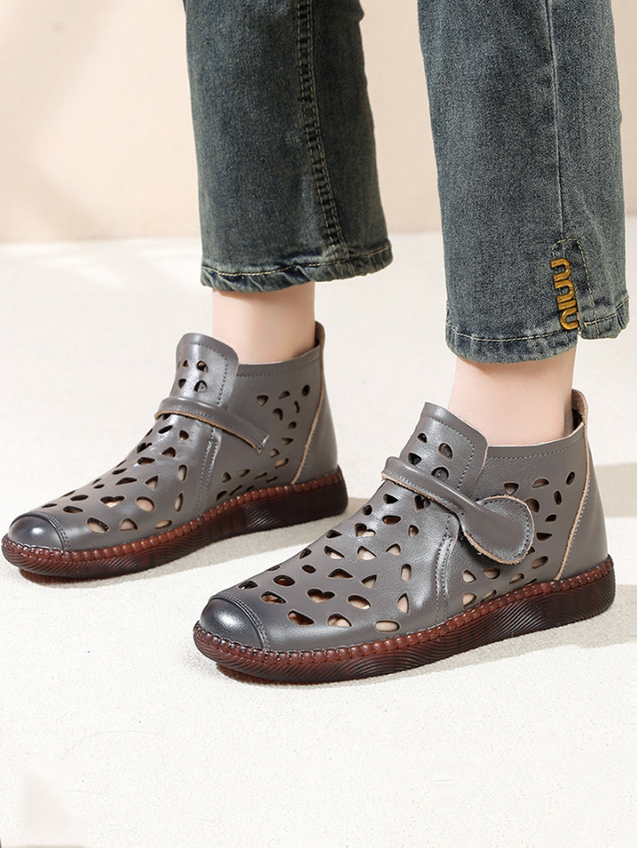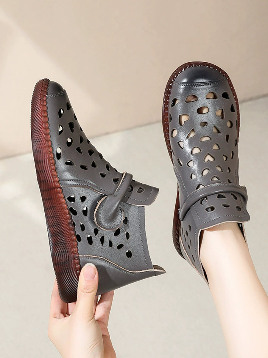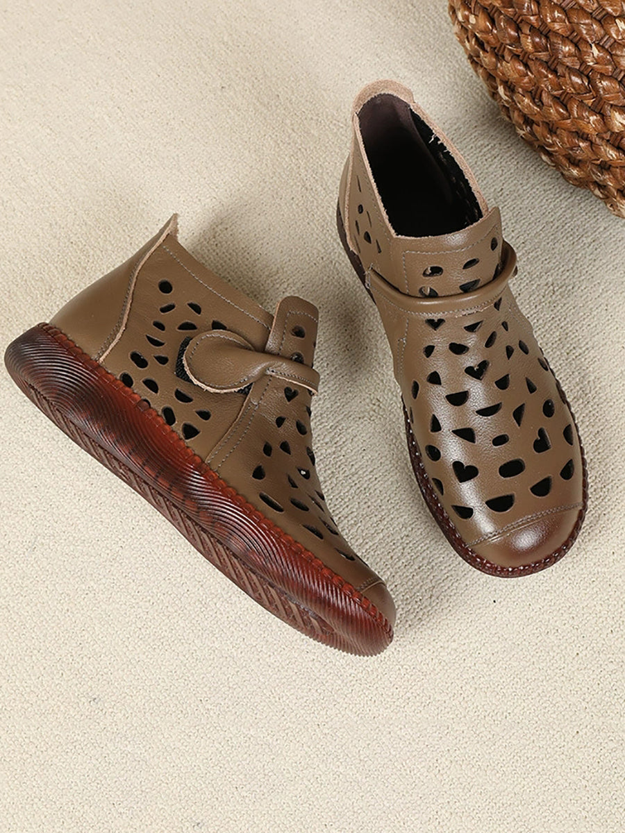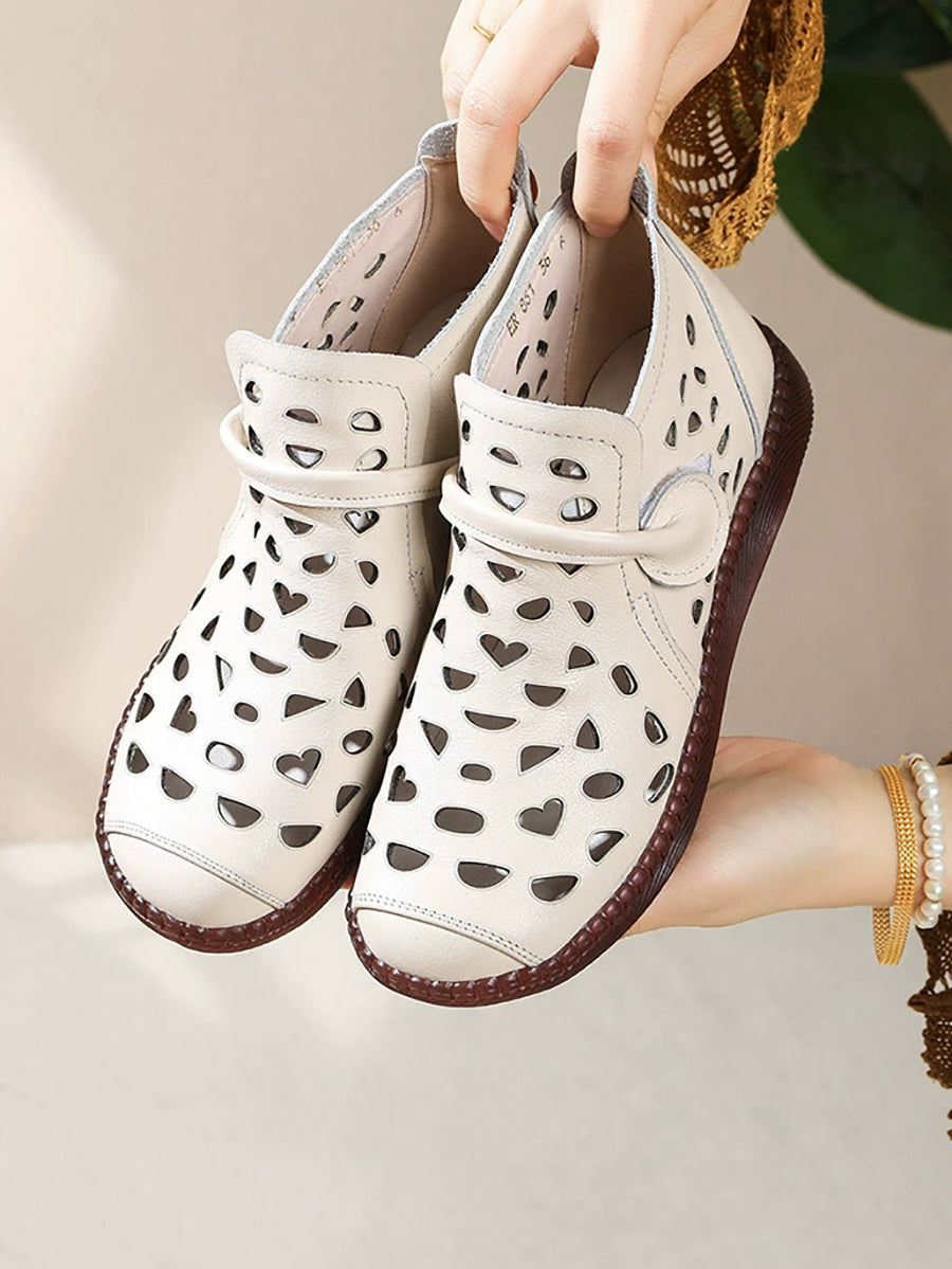 صندل نسائي صيفي مسطح من الجلد بفتحات