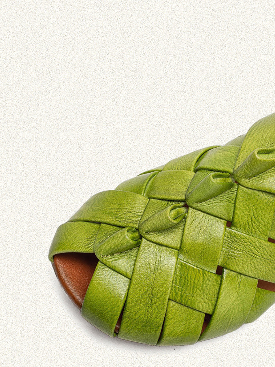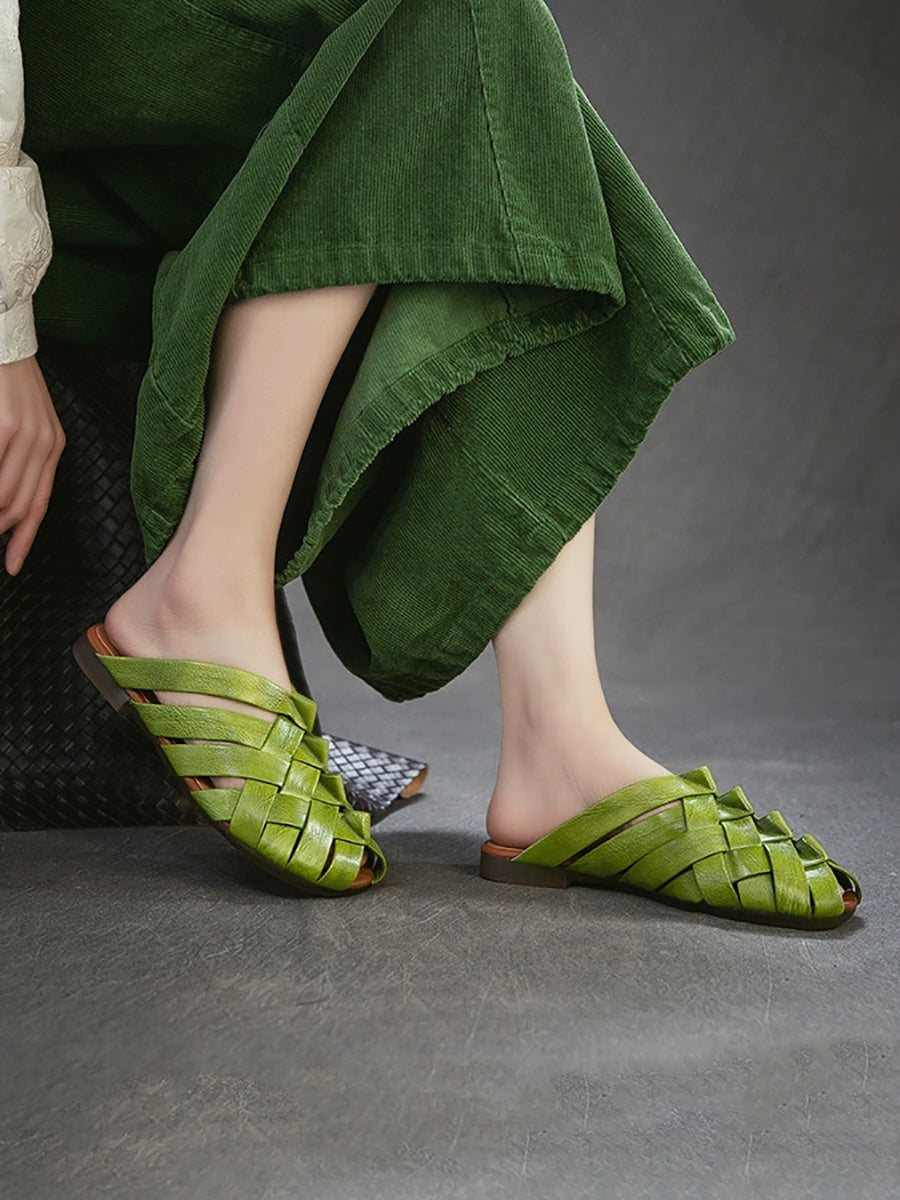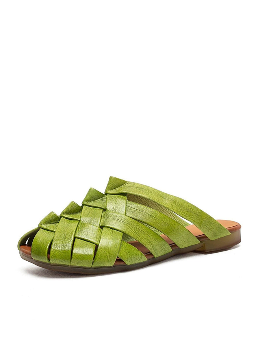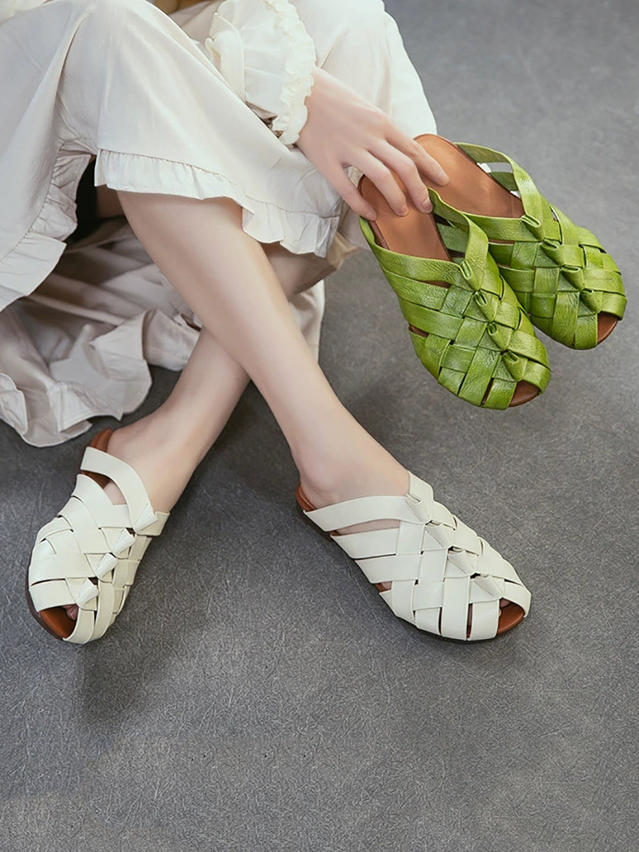 شباشب نسائية صيفية من الجلد المنسوج